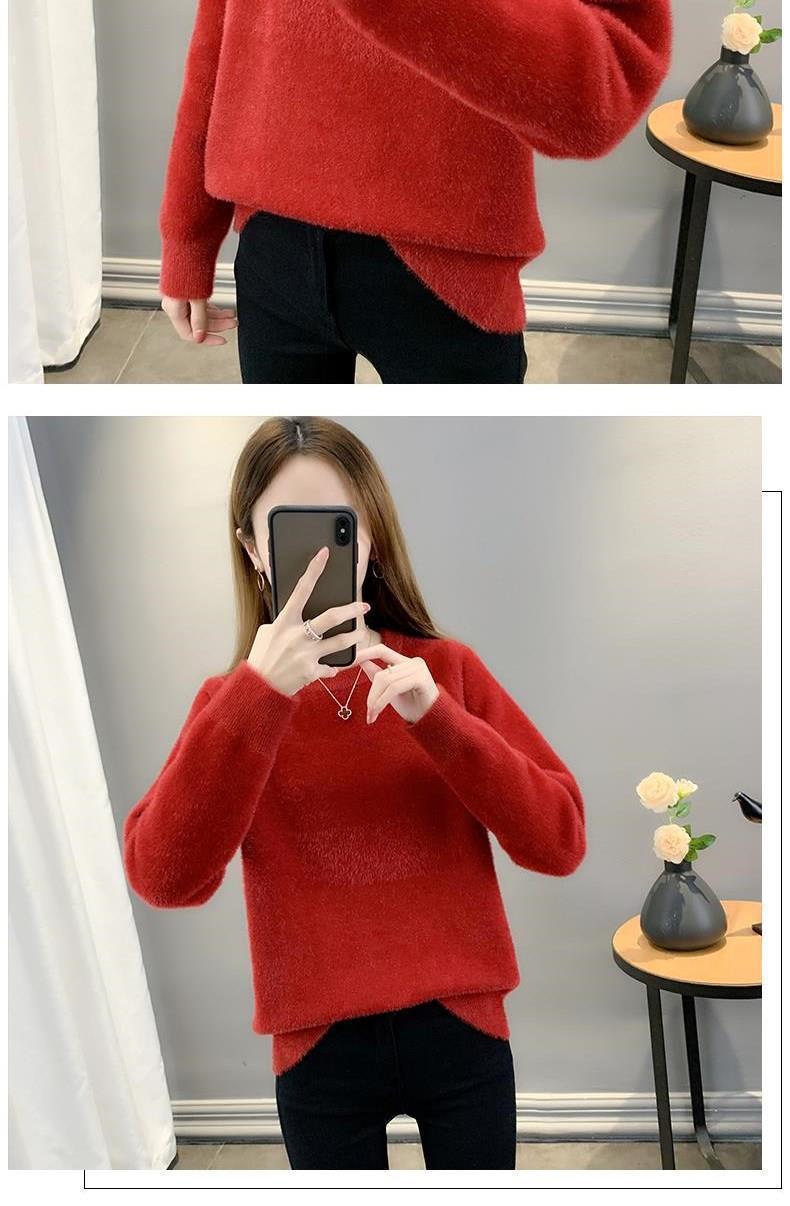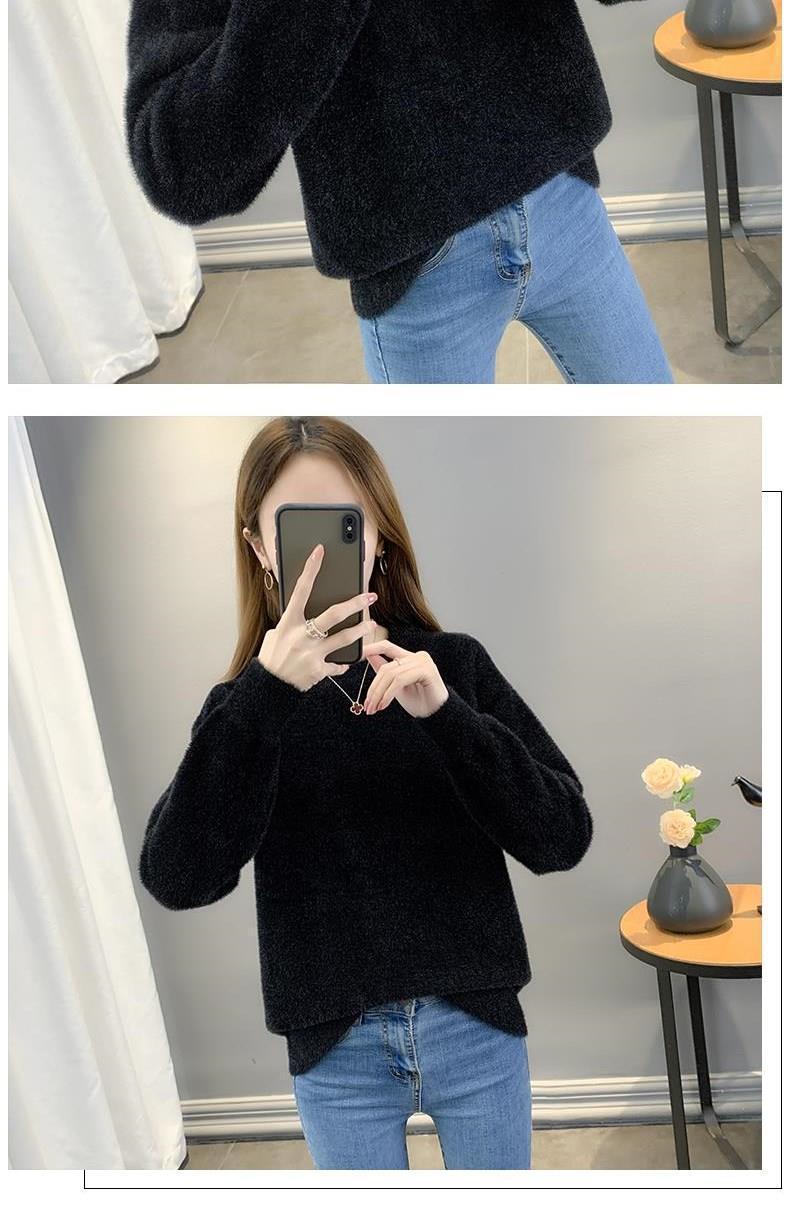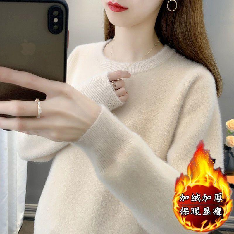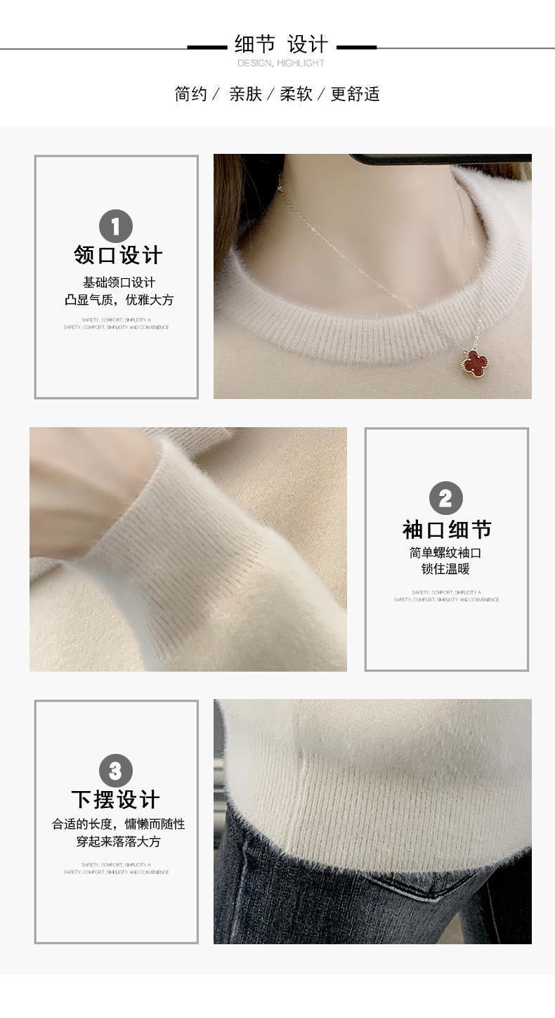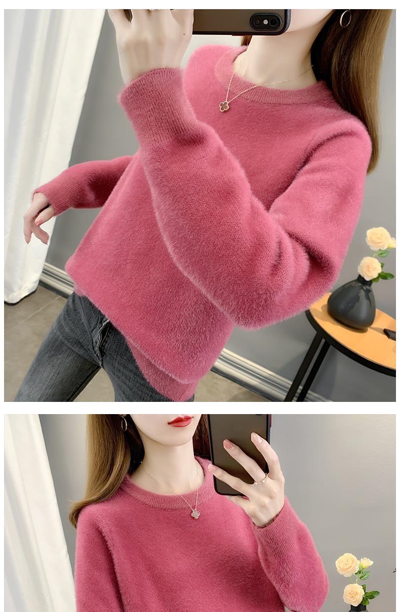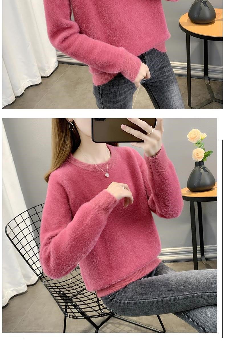 Suéter de cuello redondo de lana de visón para mujer, jersey de otoño e invierno 2025, interior cálido, grueso, informal, de punto, base, camiseta para mujer