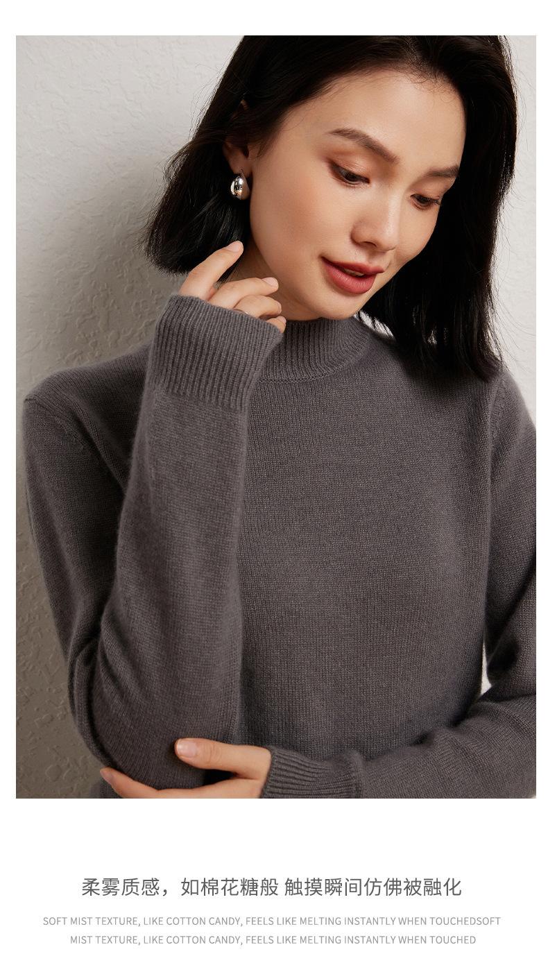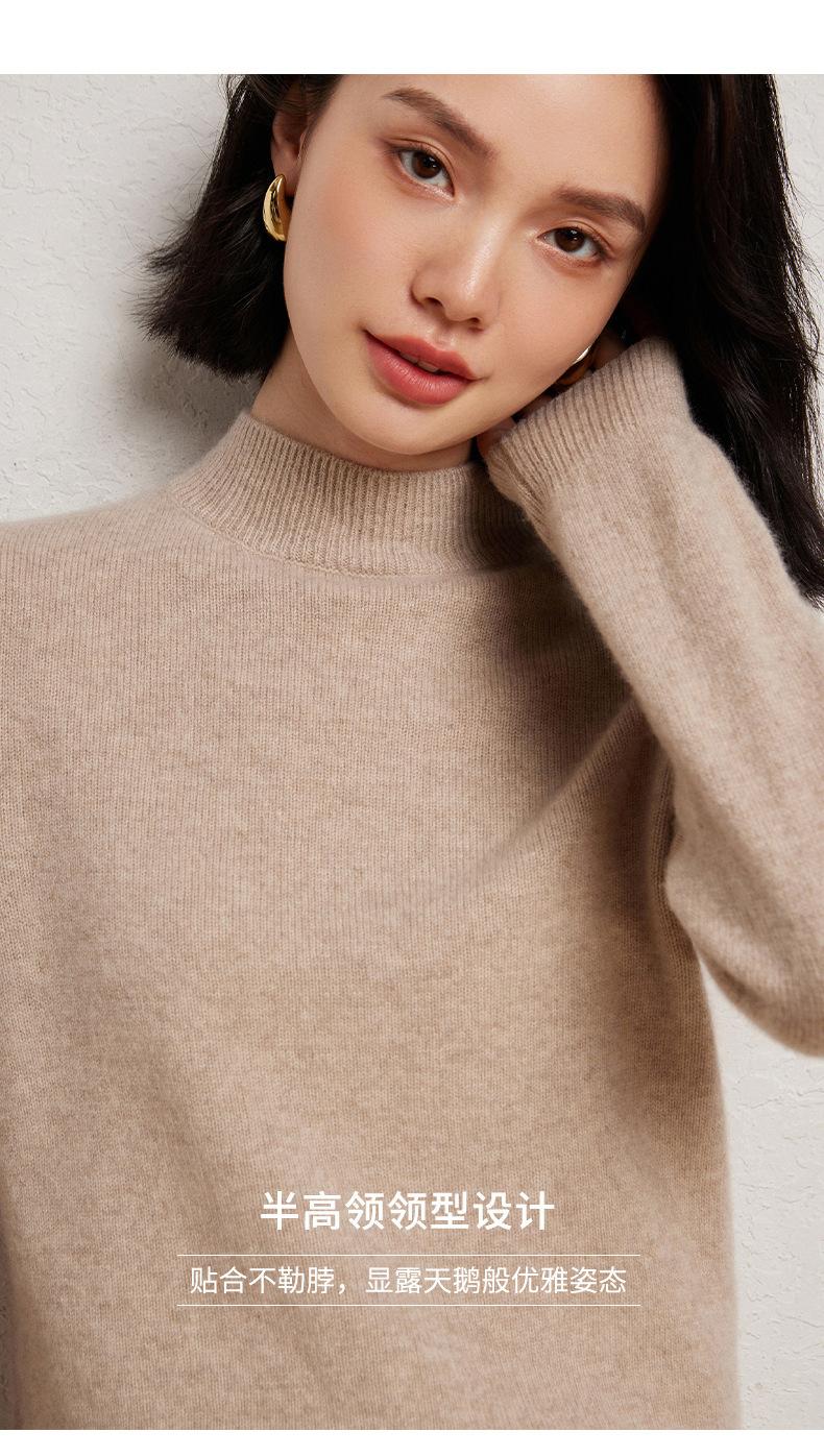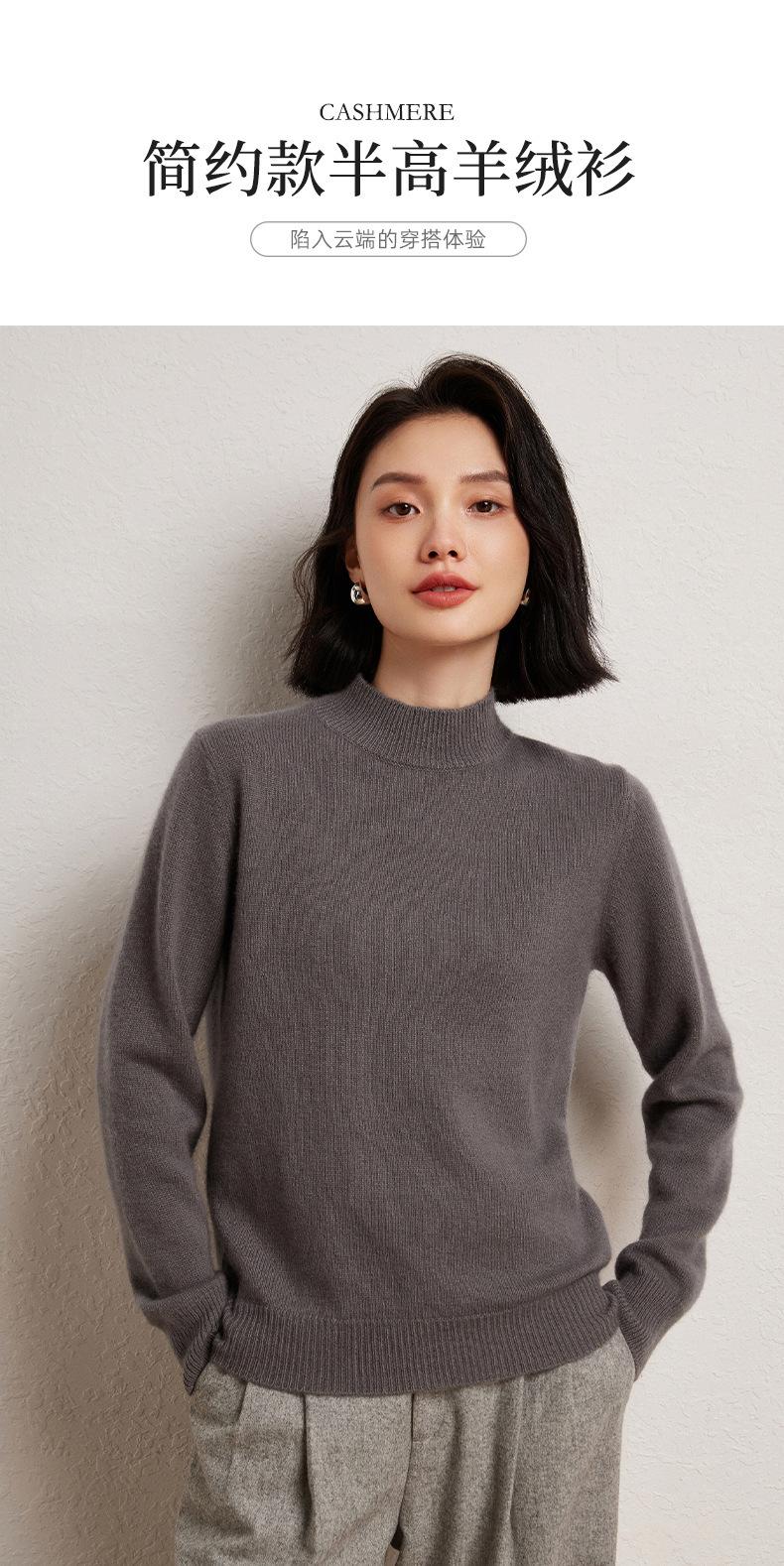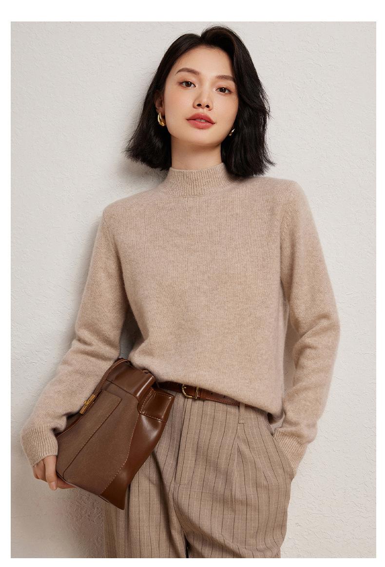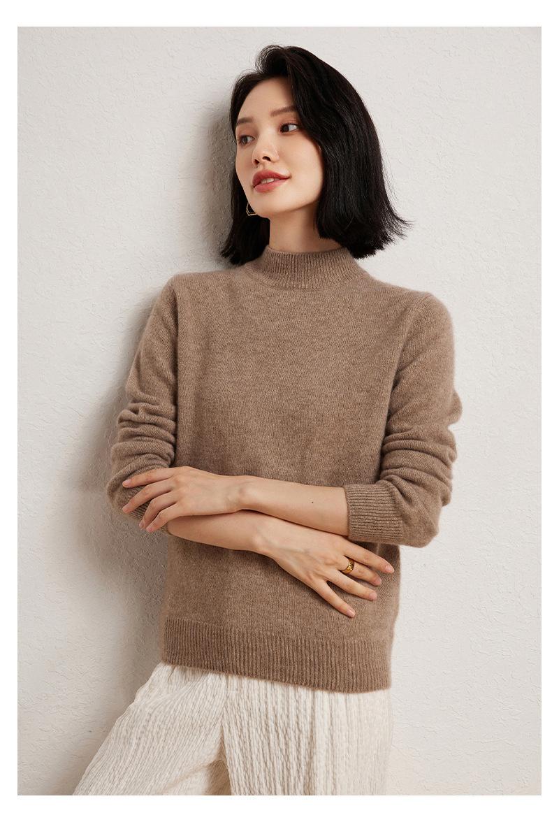Suéter de Cachemira de Color Sólido Nuevo Otoño/Invierno Cuello Medio Alto Sencillo para Mujer Suéter Tejido para Ir al Trabajo Manga Larga Capa Base