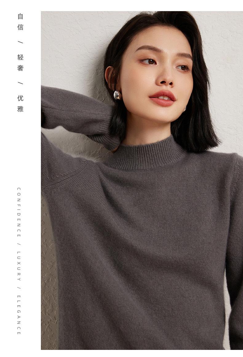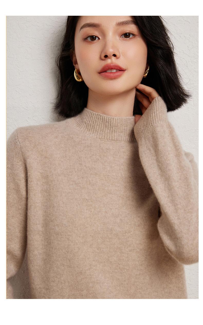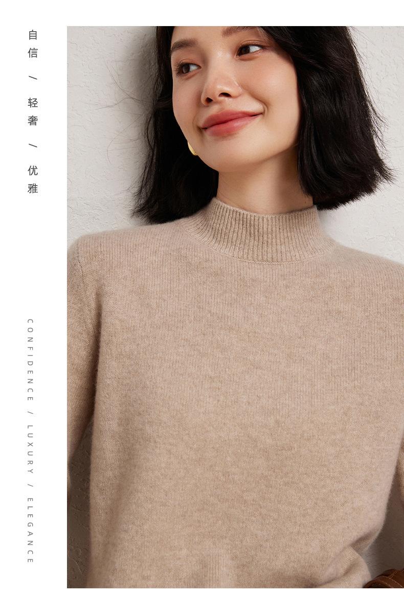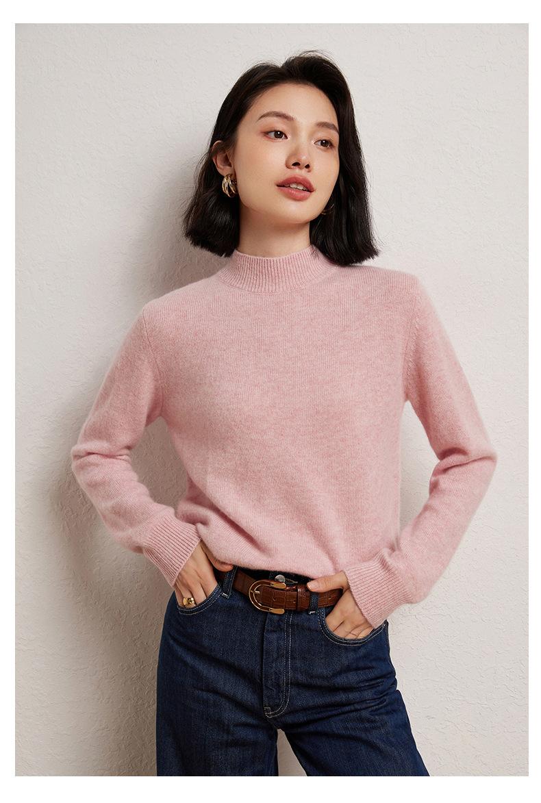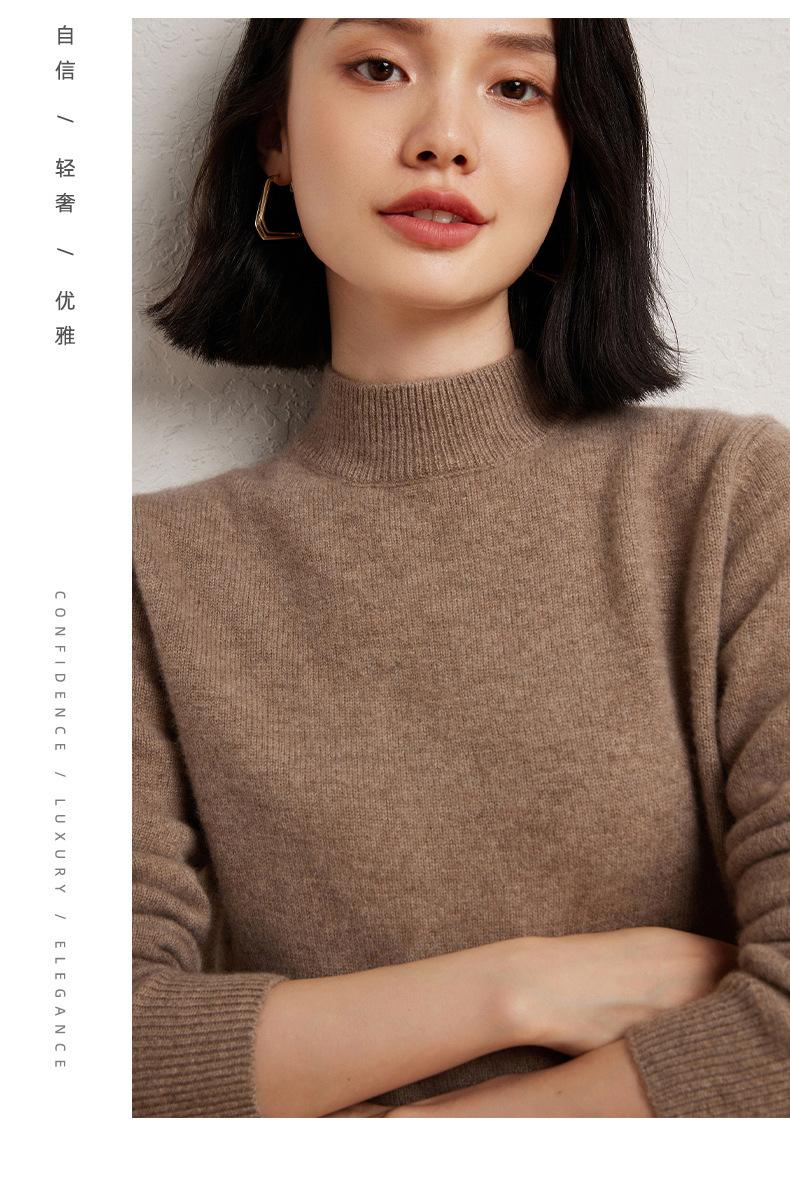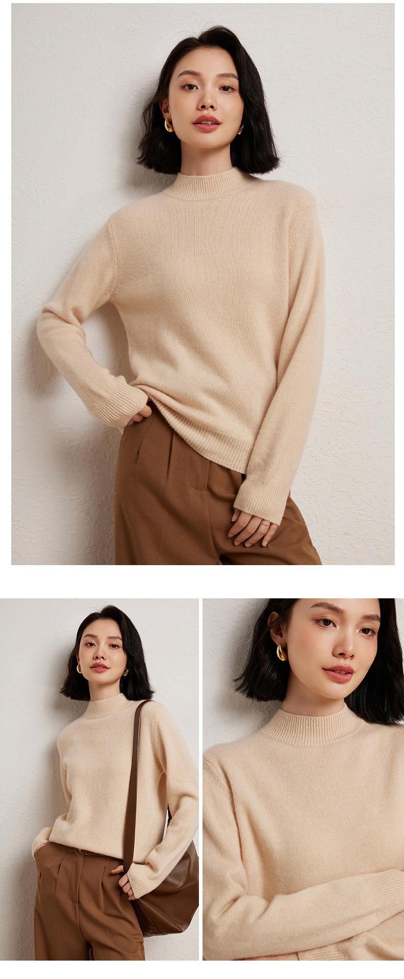 Suéter de Cachemira de Color Sólido Nuevo Otoño/Invierno Cuello Medio Alto Sencillo para Mujer Suéter Tejido para Ir al Trabajo Manga Larga Capa Base