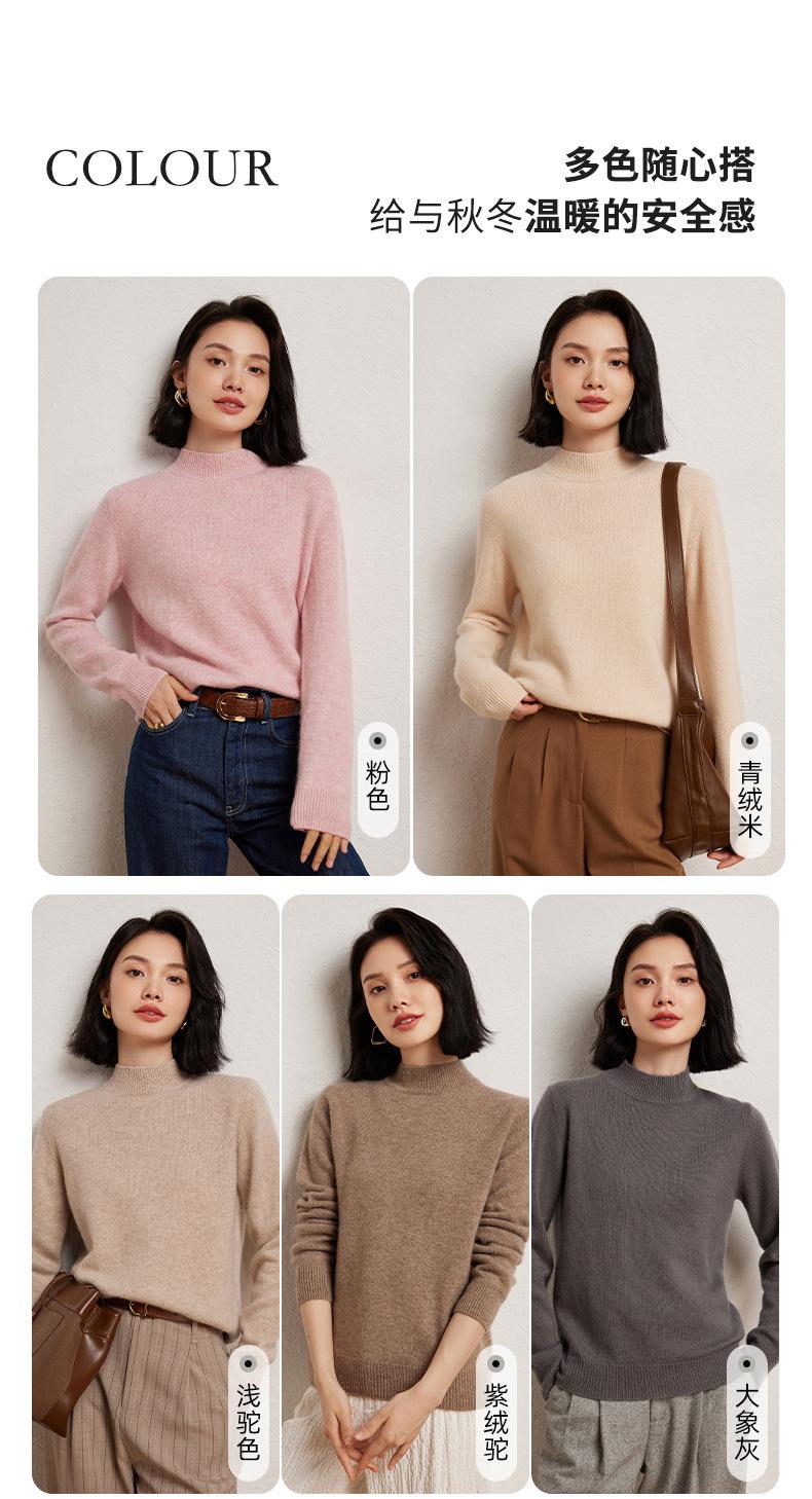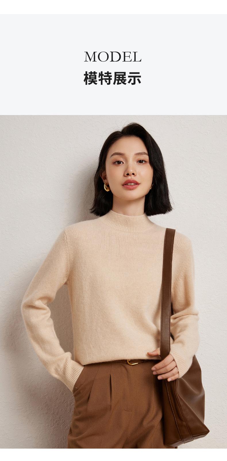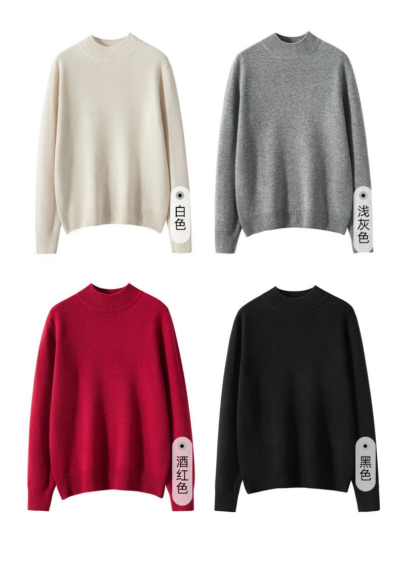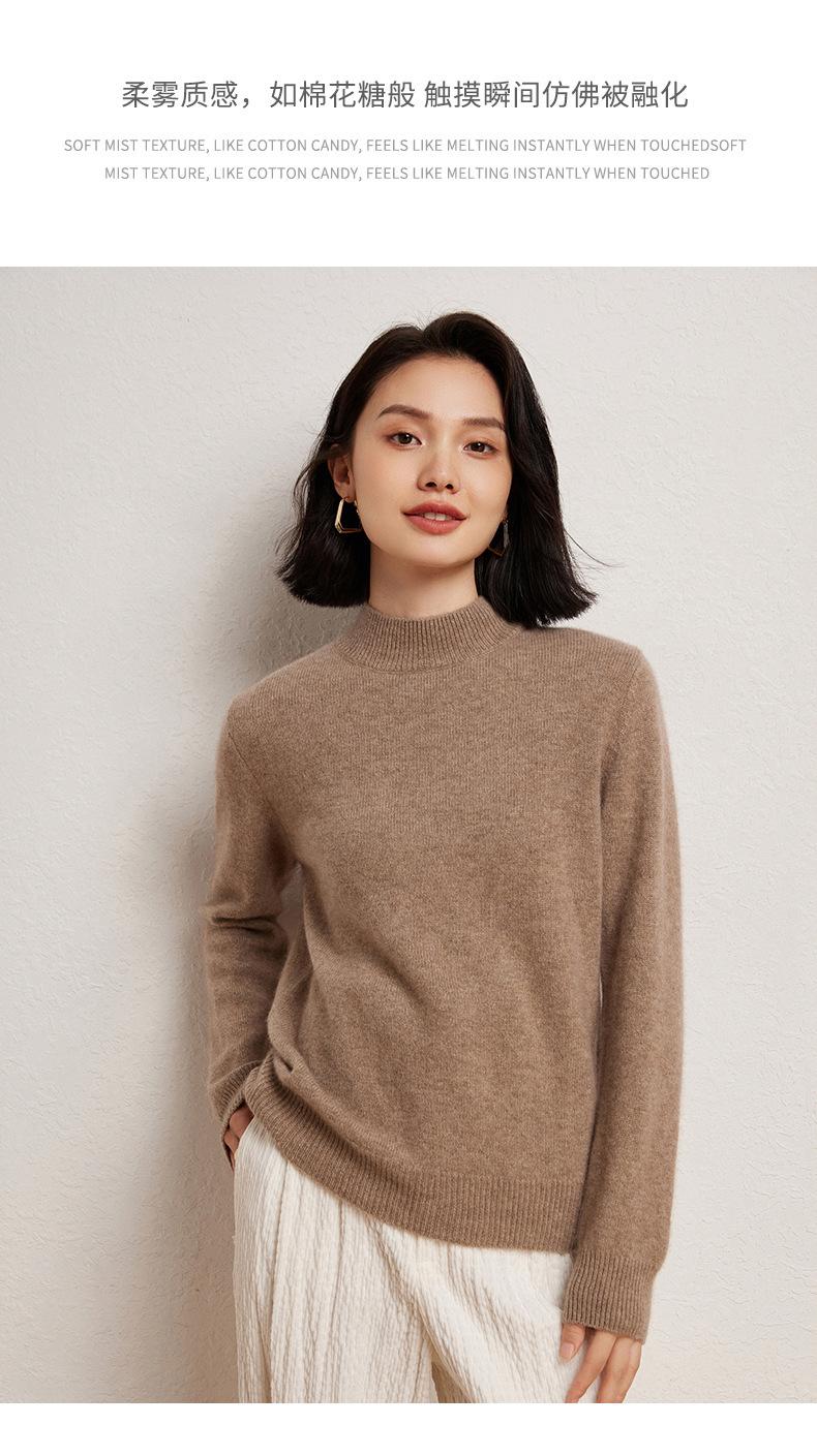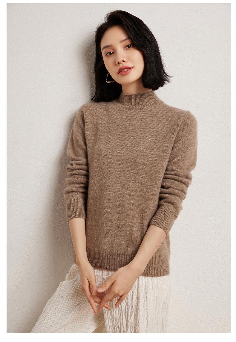 Suéter de Cachemira de Color Sólido Nuevo Otoño/Invierno Cuello Medio Alto Sencillo para Mujer Suéter Tejido para Ir al Trabajo Manga Larga Capa Base