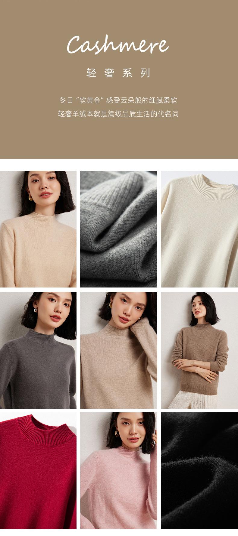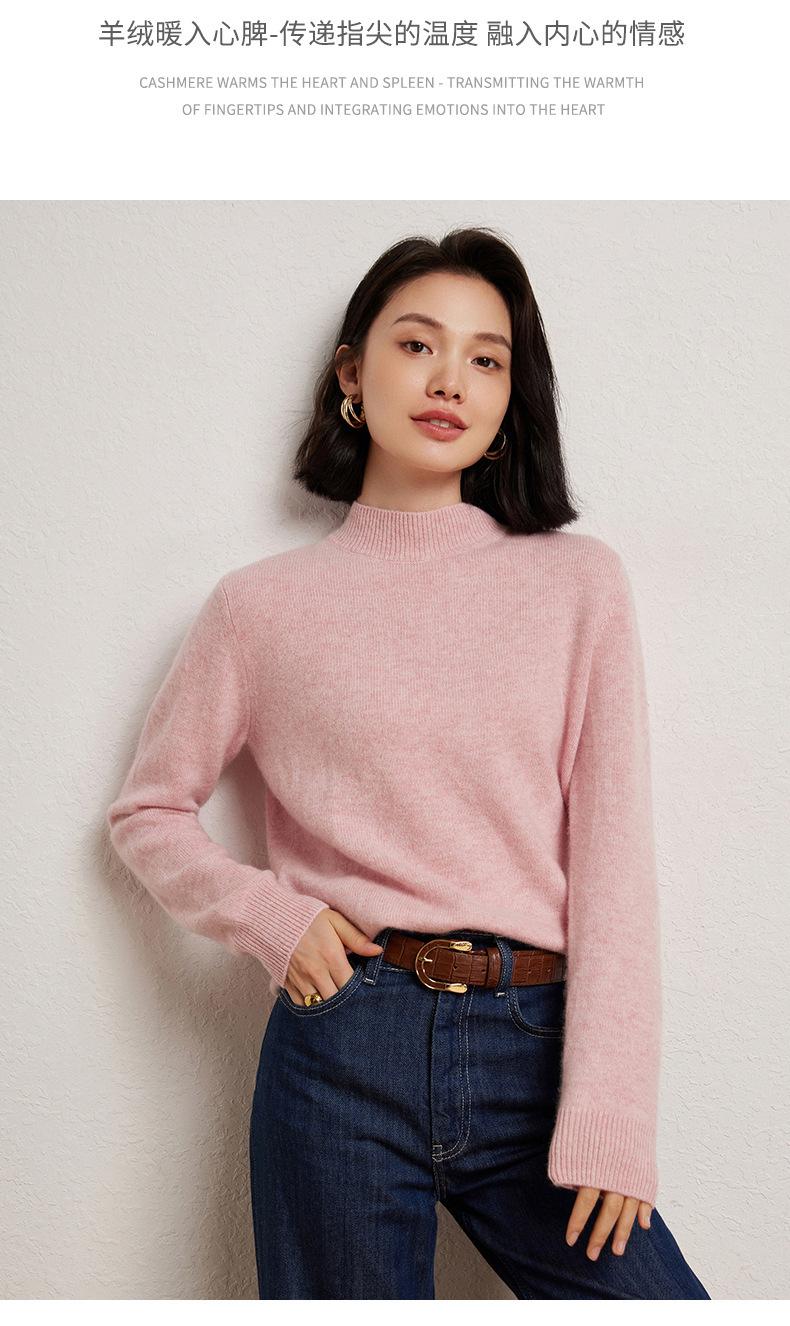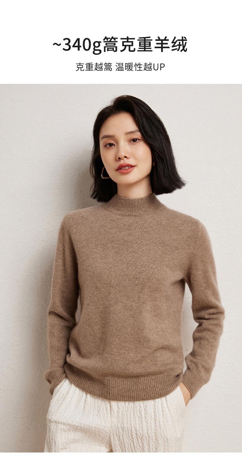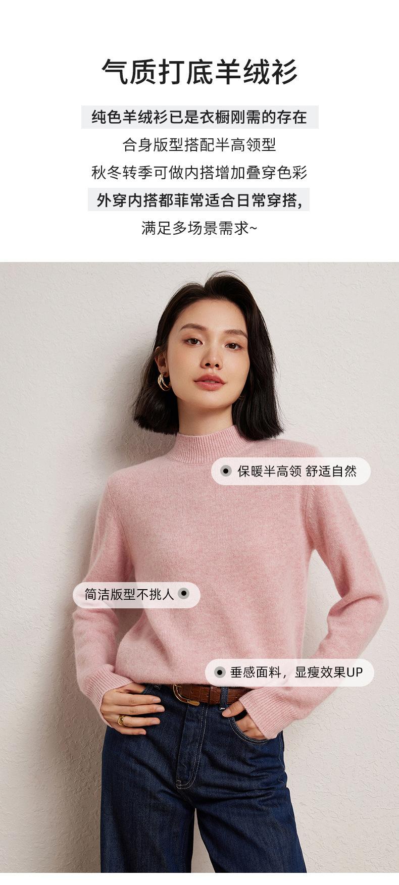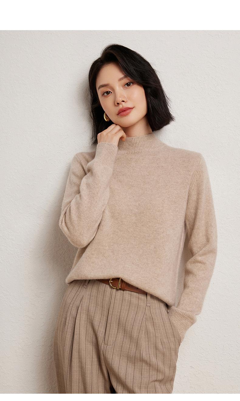 Suéter de Cachemira de Color Sólido Nuevo Otoño/Invierno Cuello Medio Alto Sencillo para Mujer Suéter Tejido para Ir al Trabajo Manga Larga Capa Base