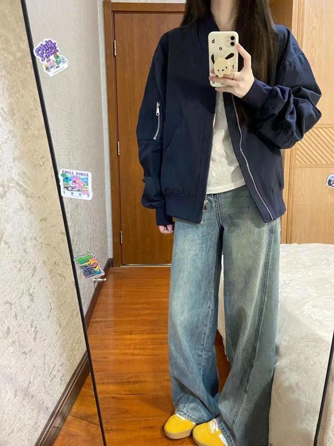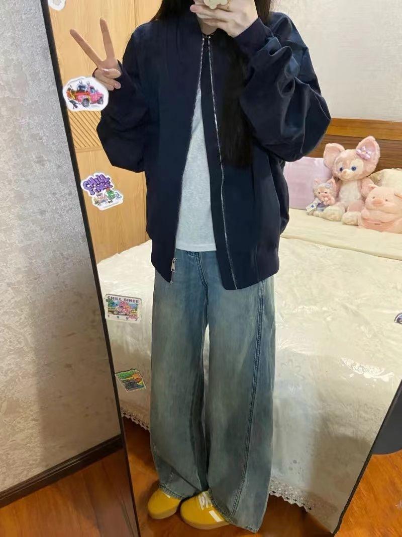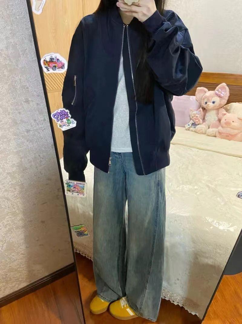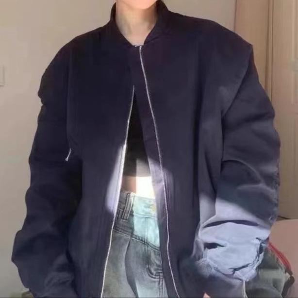 Traje de Vuelo Primavera Otoño Béisbol Negro Chaqueta Americana Retro Nuevo Suelto Nuevo Casual Chaqueta Top Chenilla