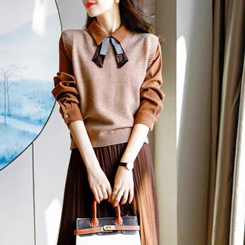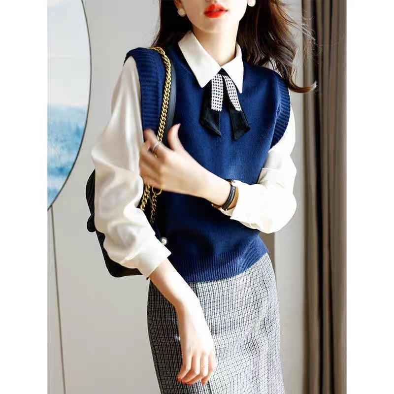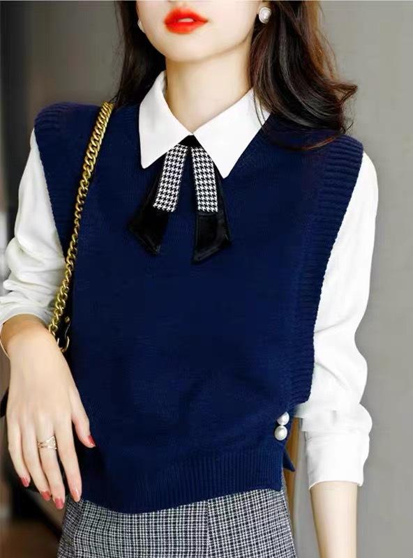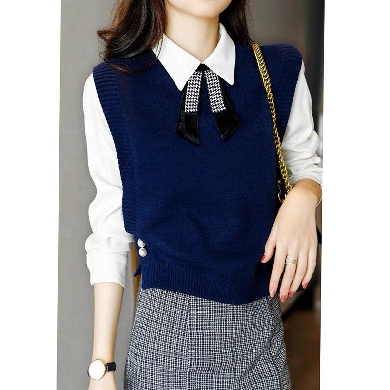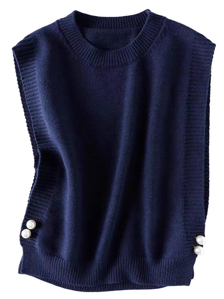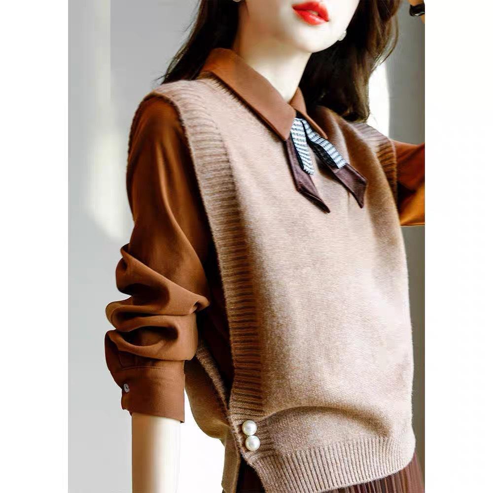 Chaleco de punto para mujer 2025 otoño nuevo diseño coreano nicho capa interior camisa suéter sin mangas hombrera
