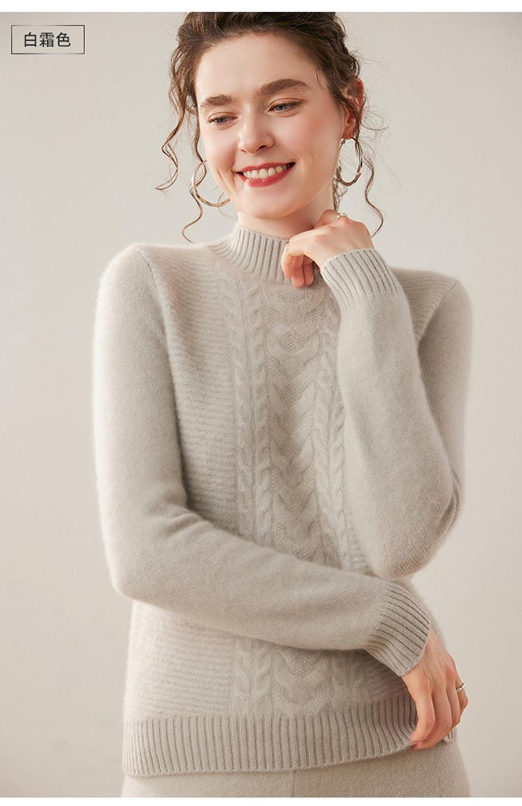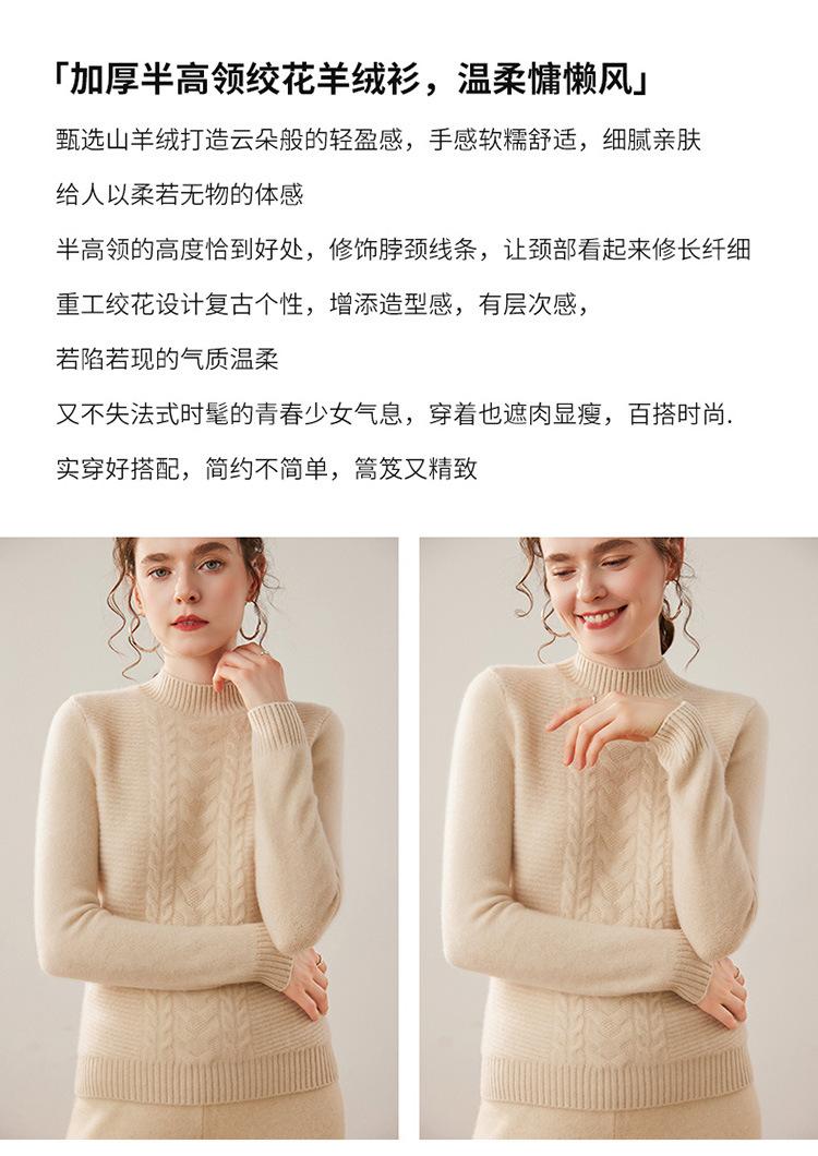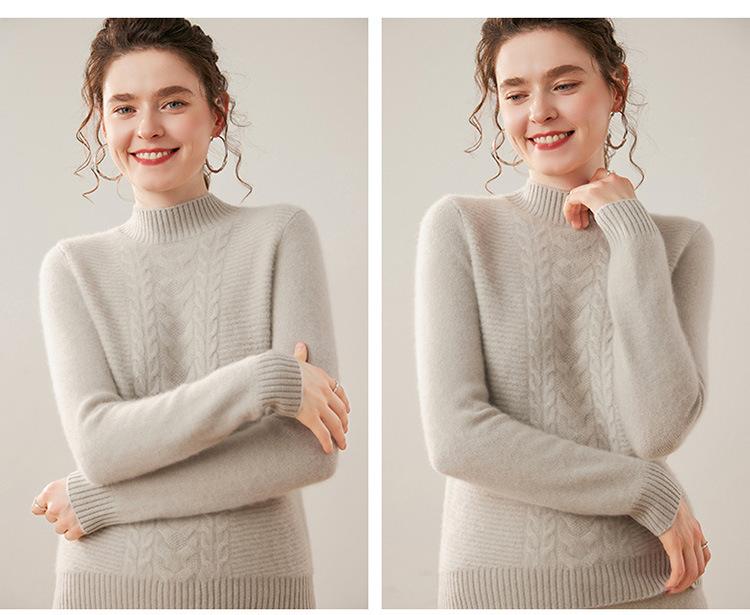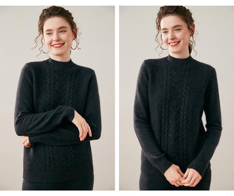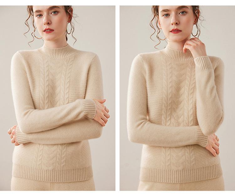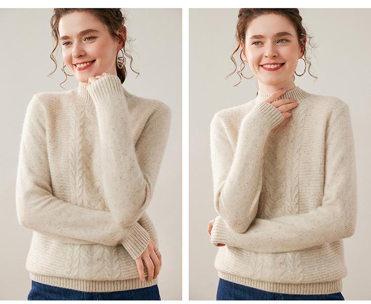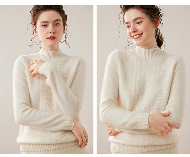 Suéter Jersey de Cachemira Grueso de Siete Agujas de Cuello Medio Alto para Mujer Otoño e Invierno Nuevo Cómodo Suave Diseño Jacquard Camisa