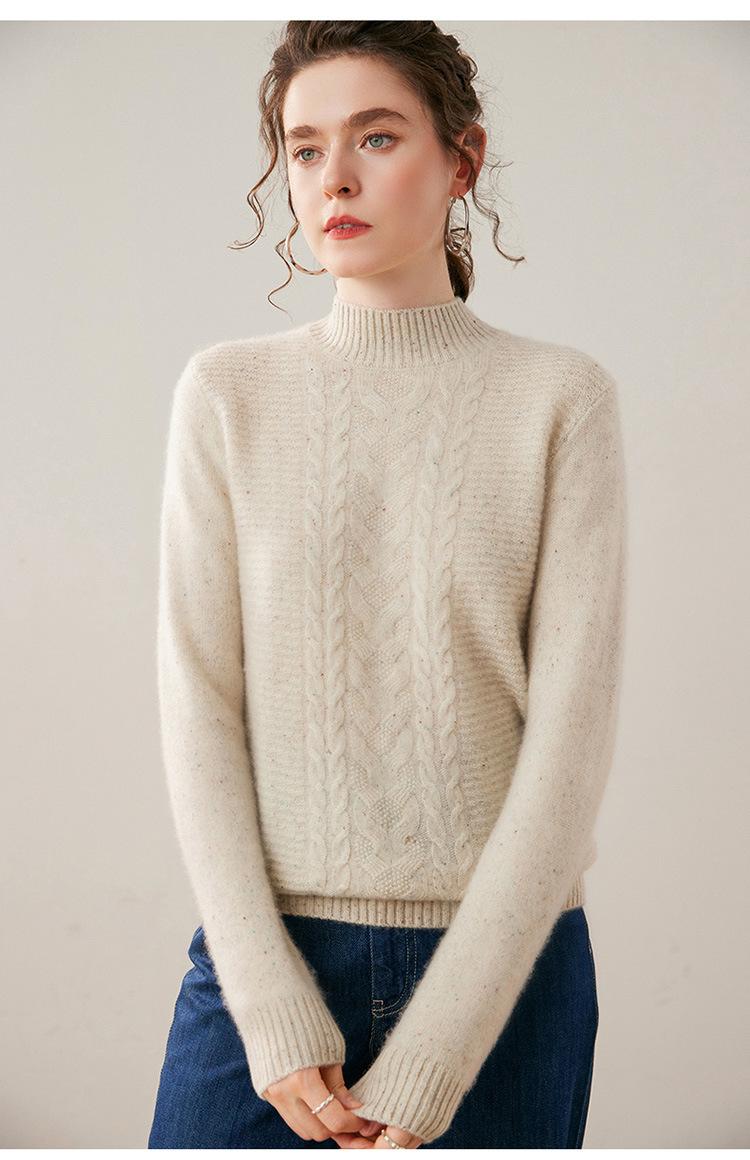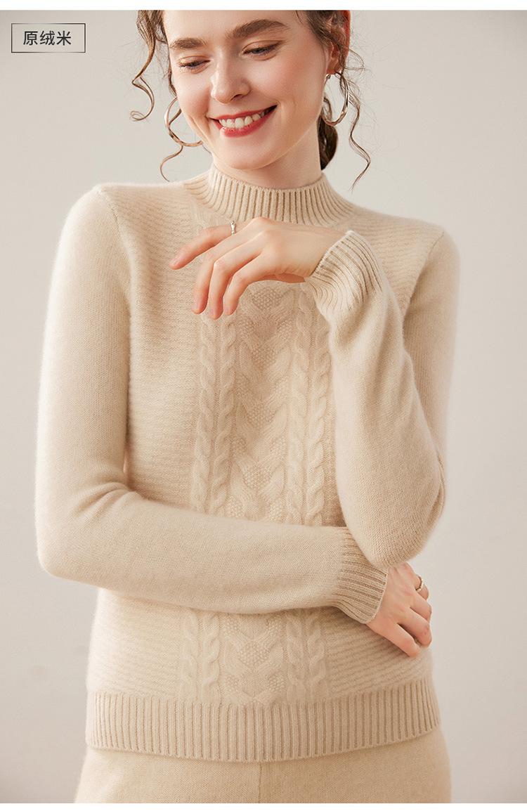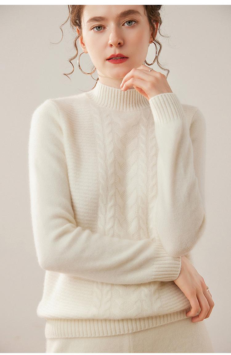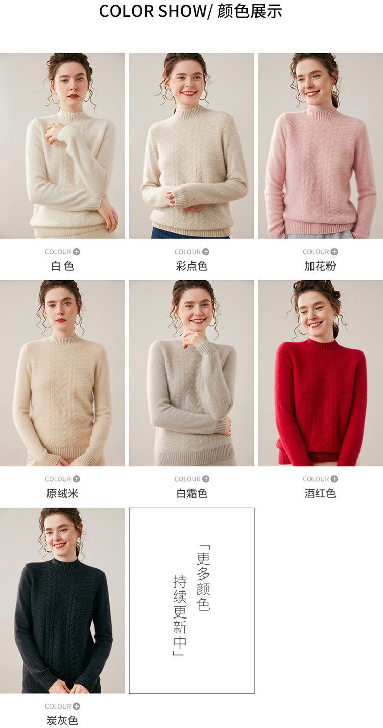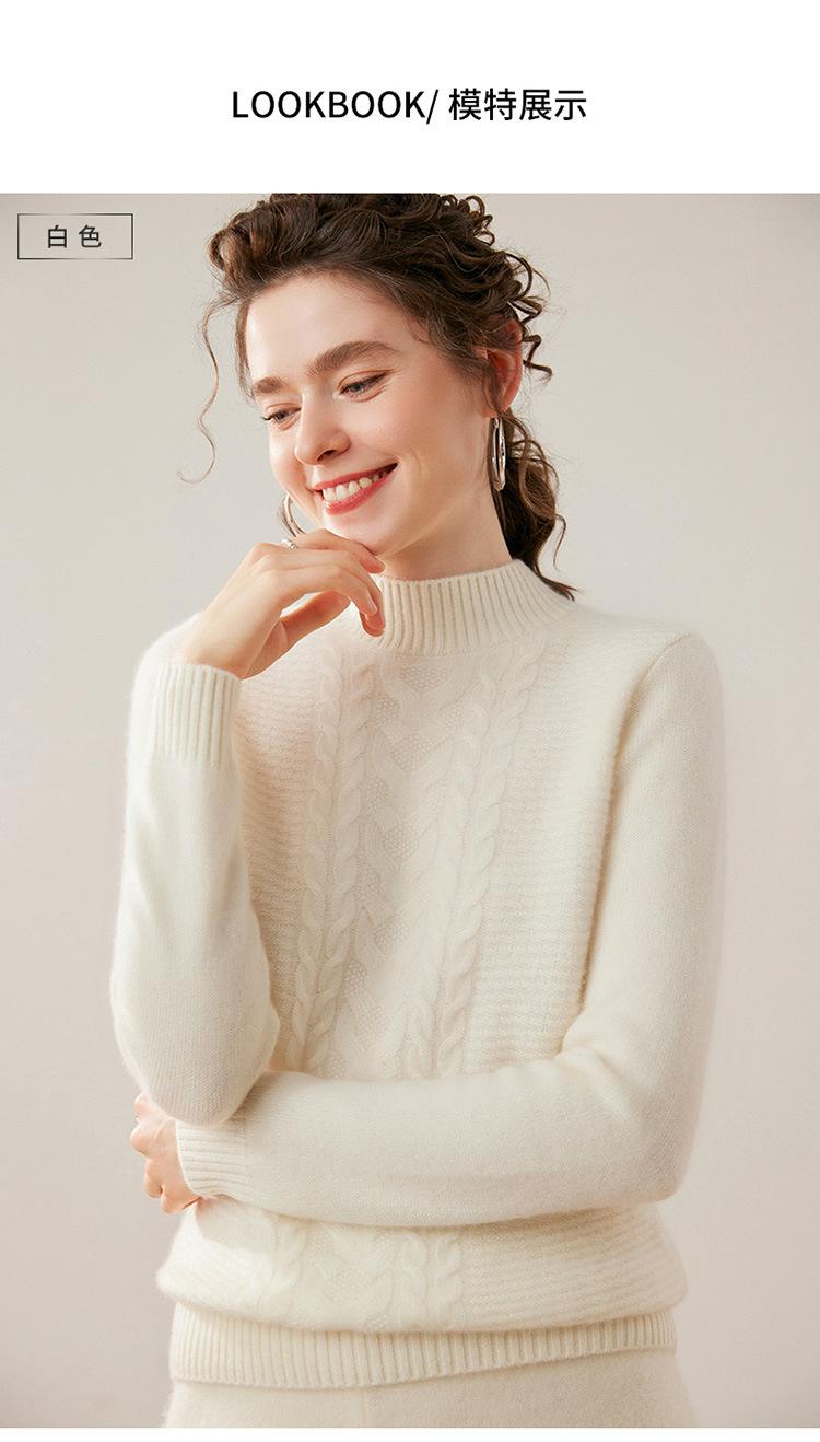 Suéter Jersey de Cachemira Grueso de Siete Agujas de Cuello Medio Alto para Mujer Otoño e Invierno Nuevo Cómodo Suave Diseño Jacquard Camisa