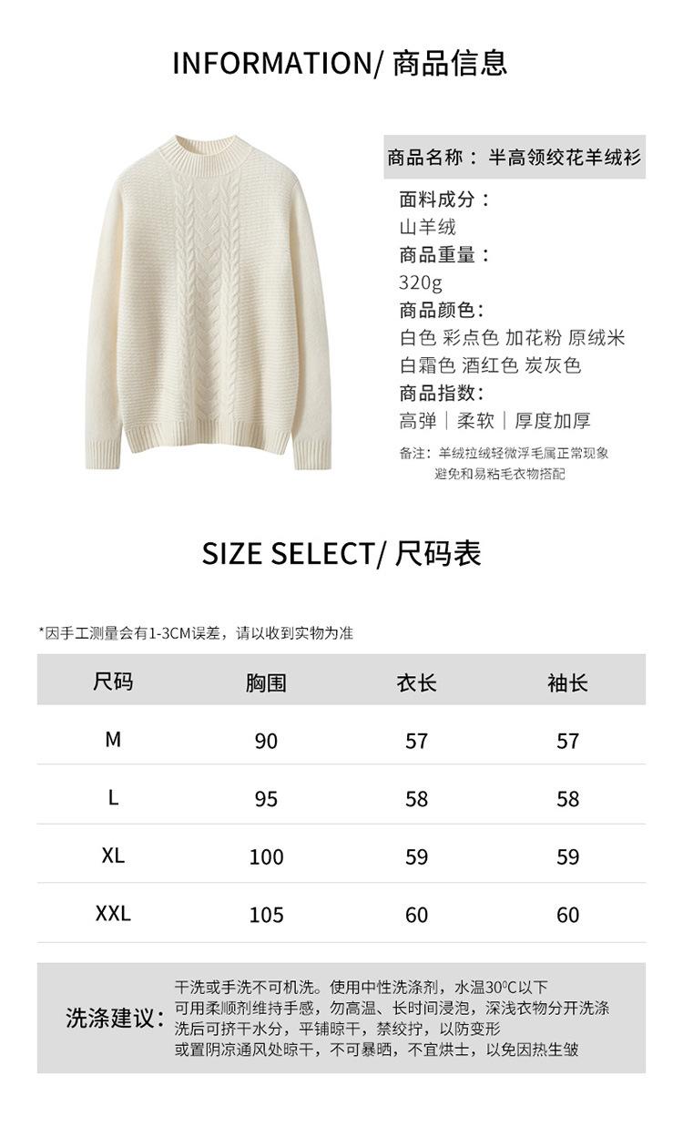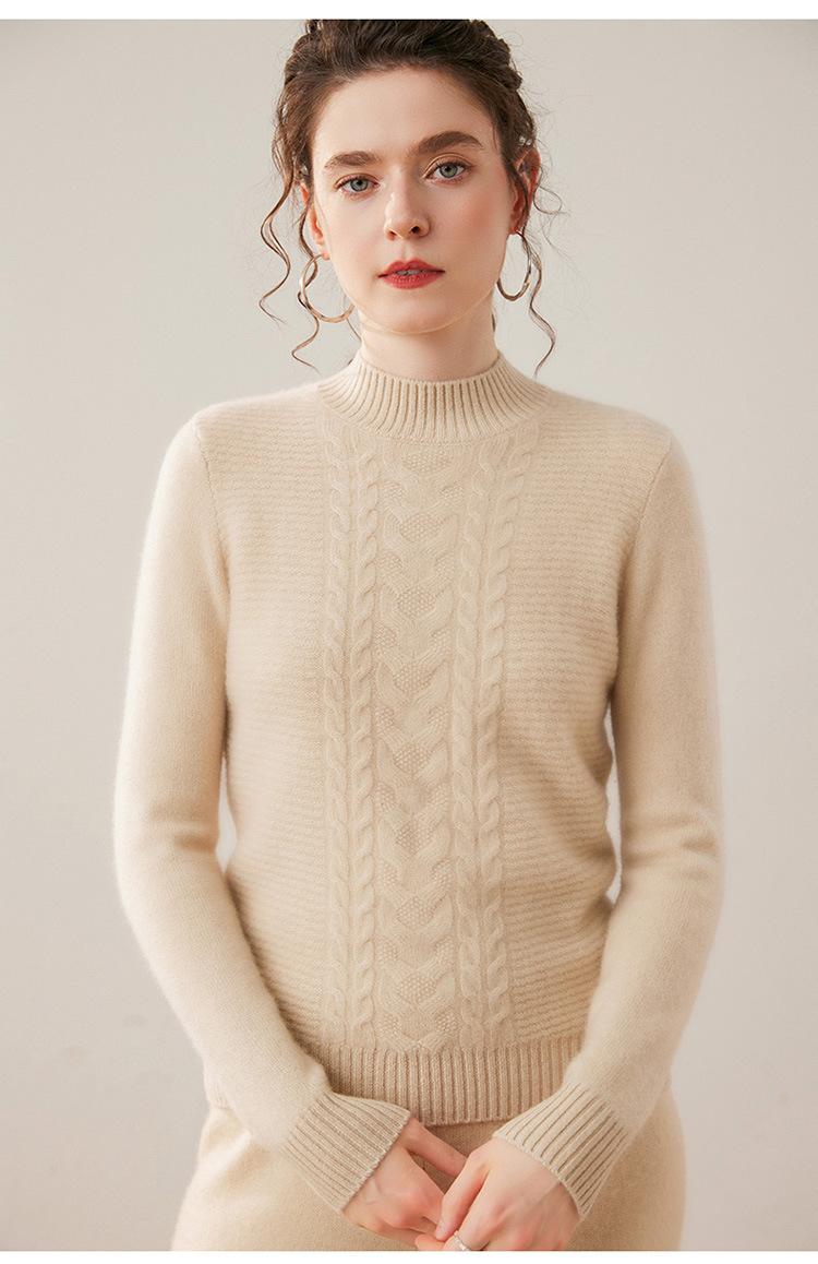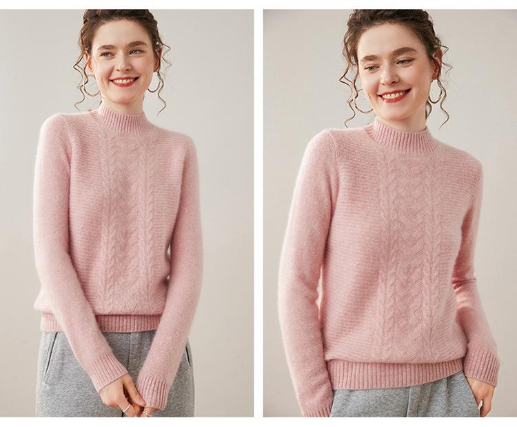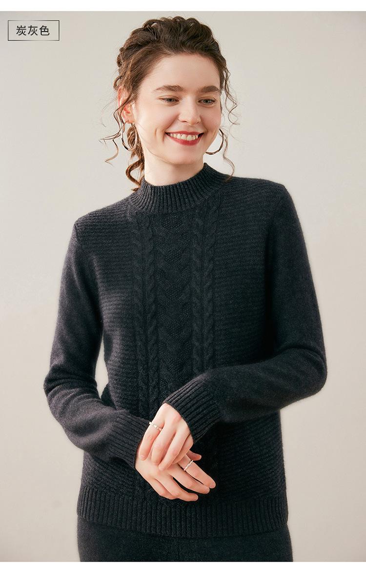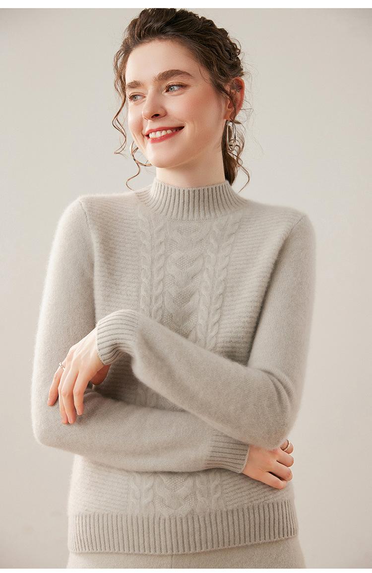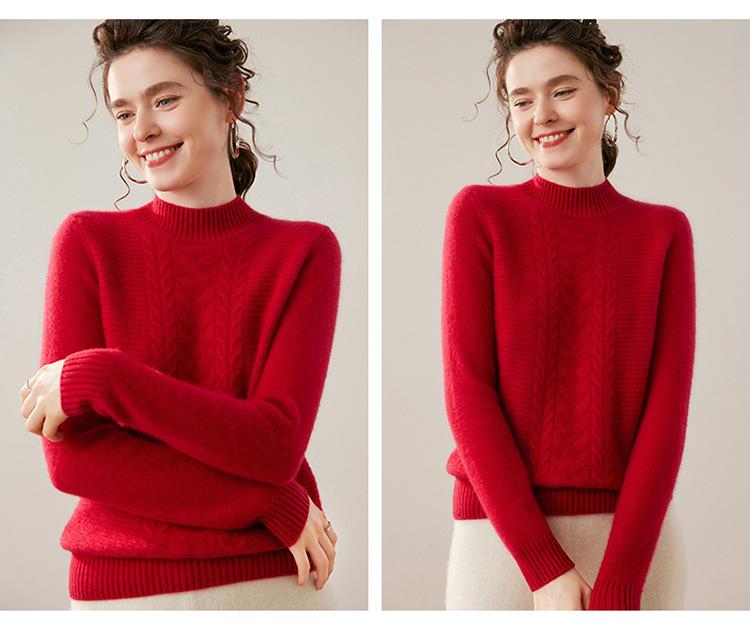 Suéter Jersey de Cachemira Grueso de Siete Agujas de Cuello Medio Alto para Mujer Otoño e Invierno Nuevo Cómodo Suave Diseño Jacquard Camisa