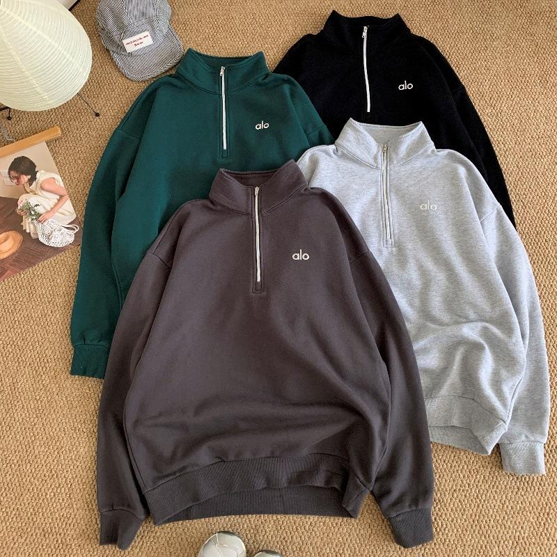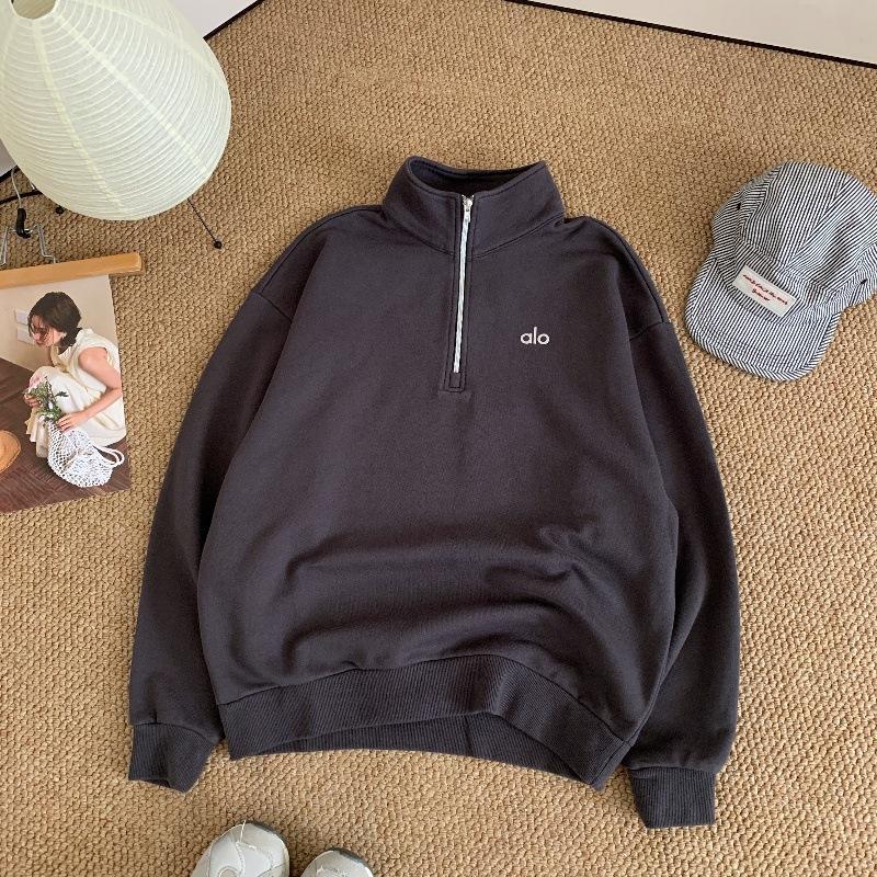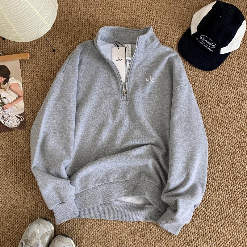 En stock alo Kim Jisoo mismo estilo nuevo cuello redondo cremallera pareja cuarto de cremallera holgado top deportivo marea