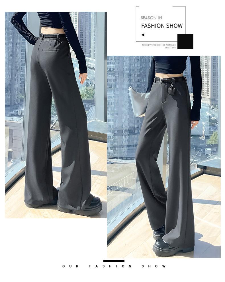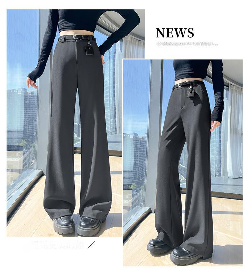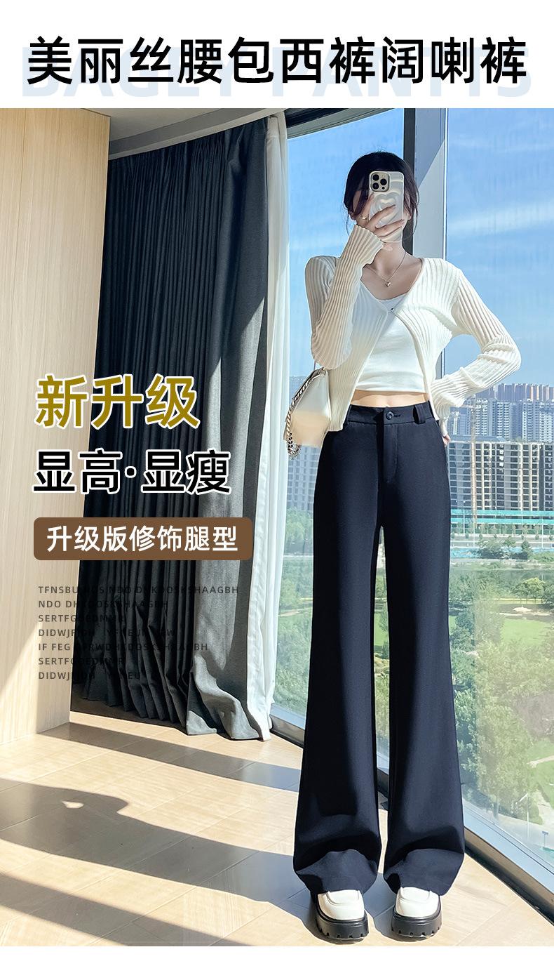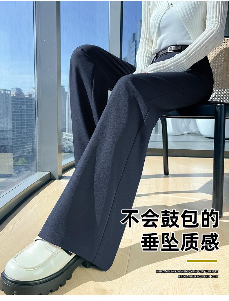 Pantalones de traje negros para mujer 2025 otoño e invierno nuevos de cintura alta adelgazantes de pierna estrecha casual acampanados microacampanados largos A6188
