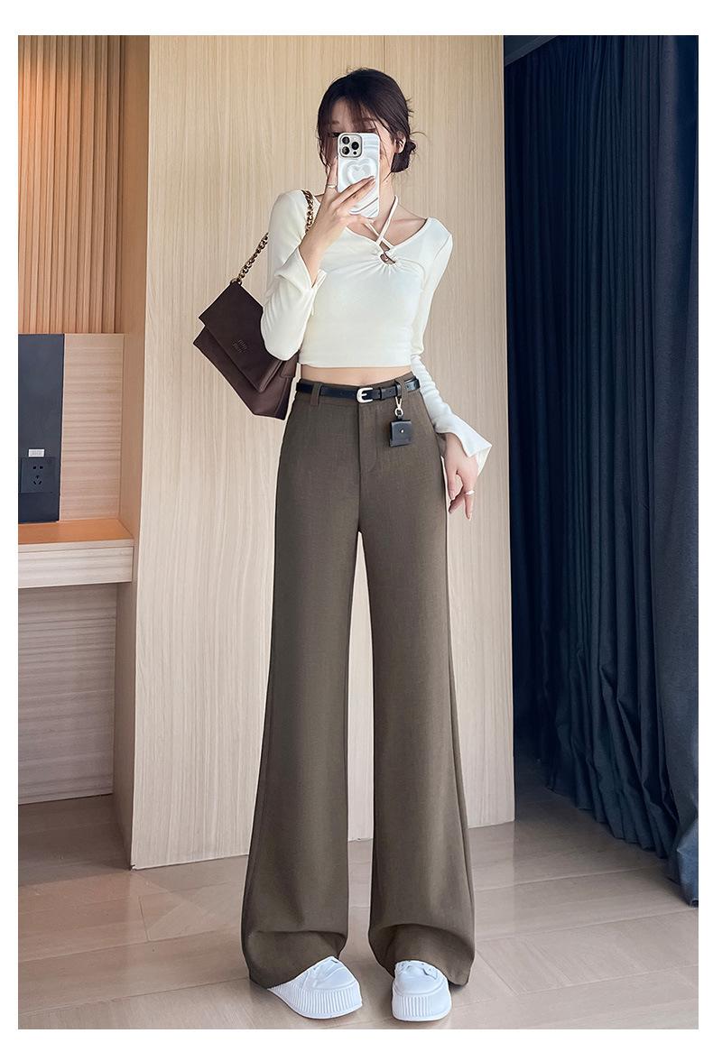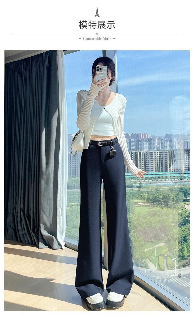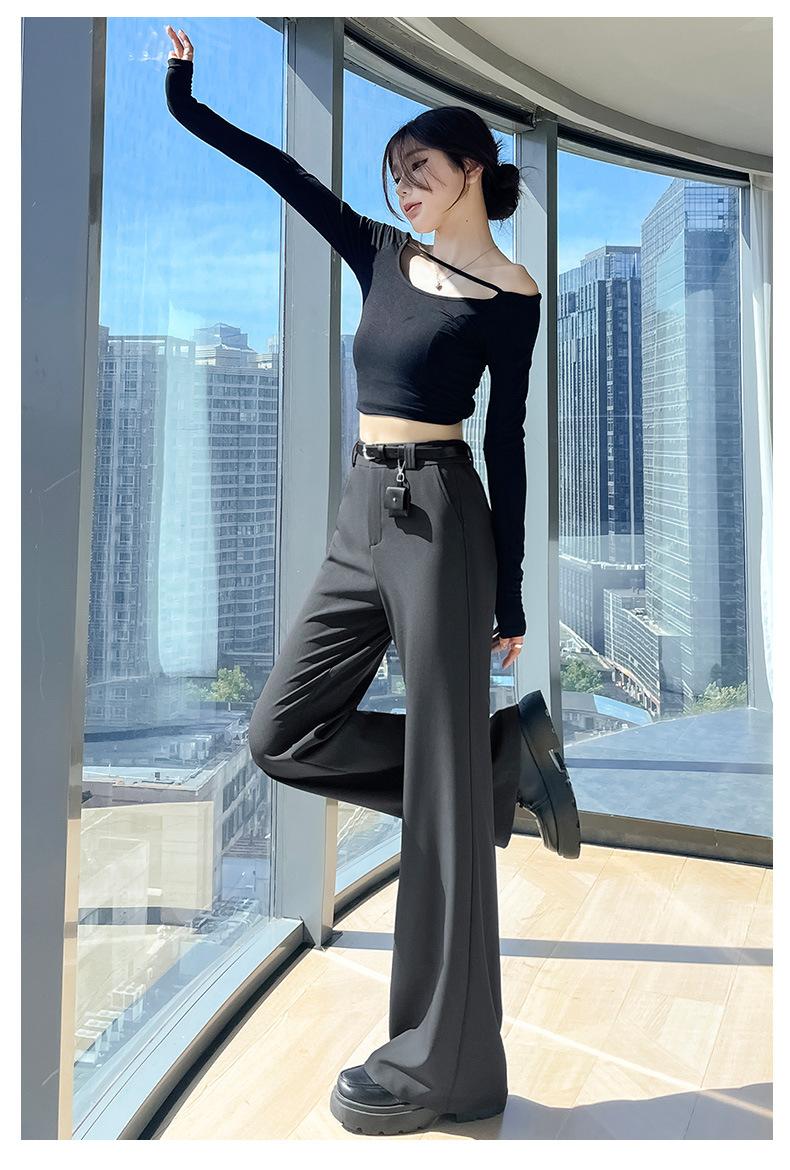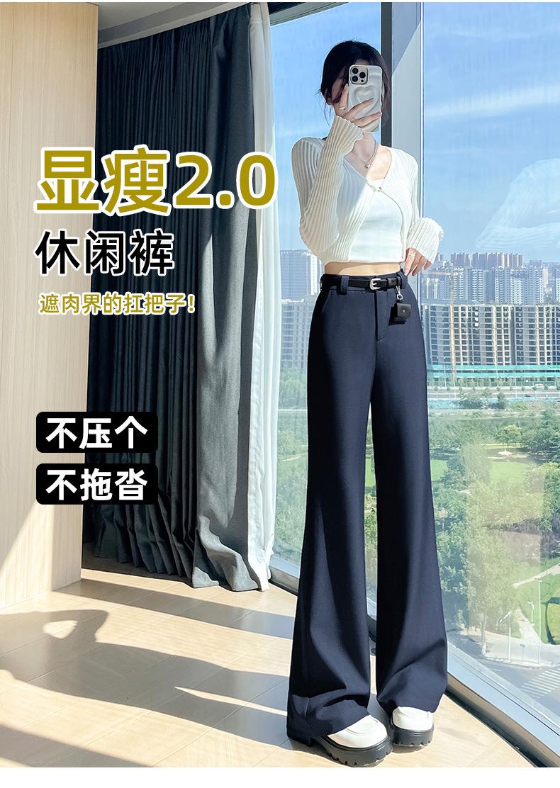 Pantalones de traje negros para mujer 2025 otoño e invierno nuevos de cintura alta adelgazantes de pierna estrecha casual acampanados microacampanados largos A6188