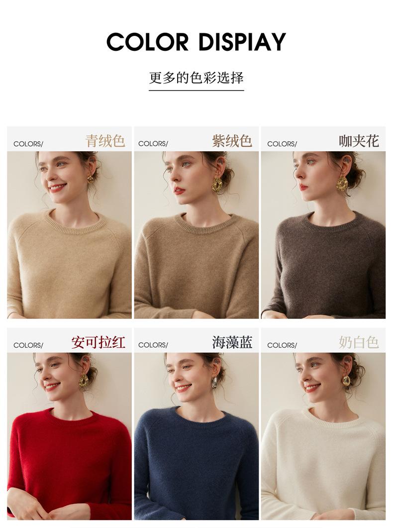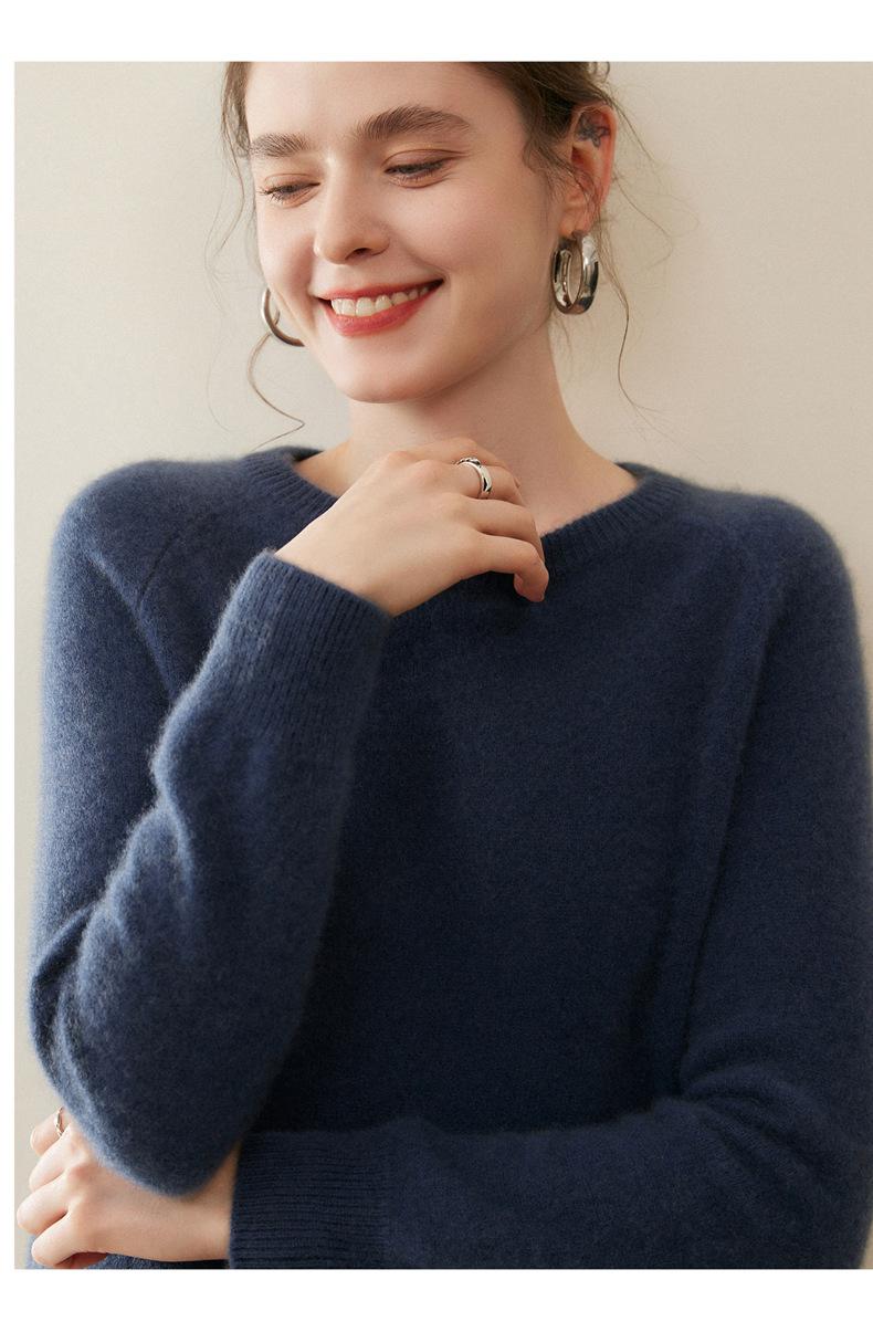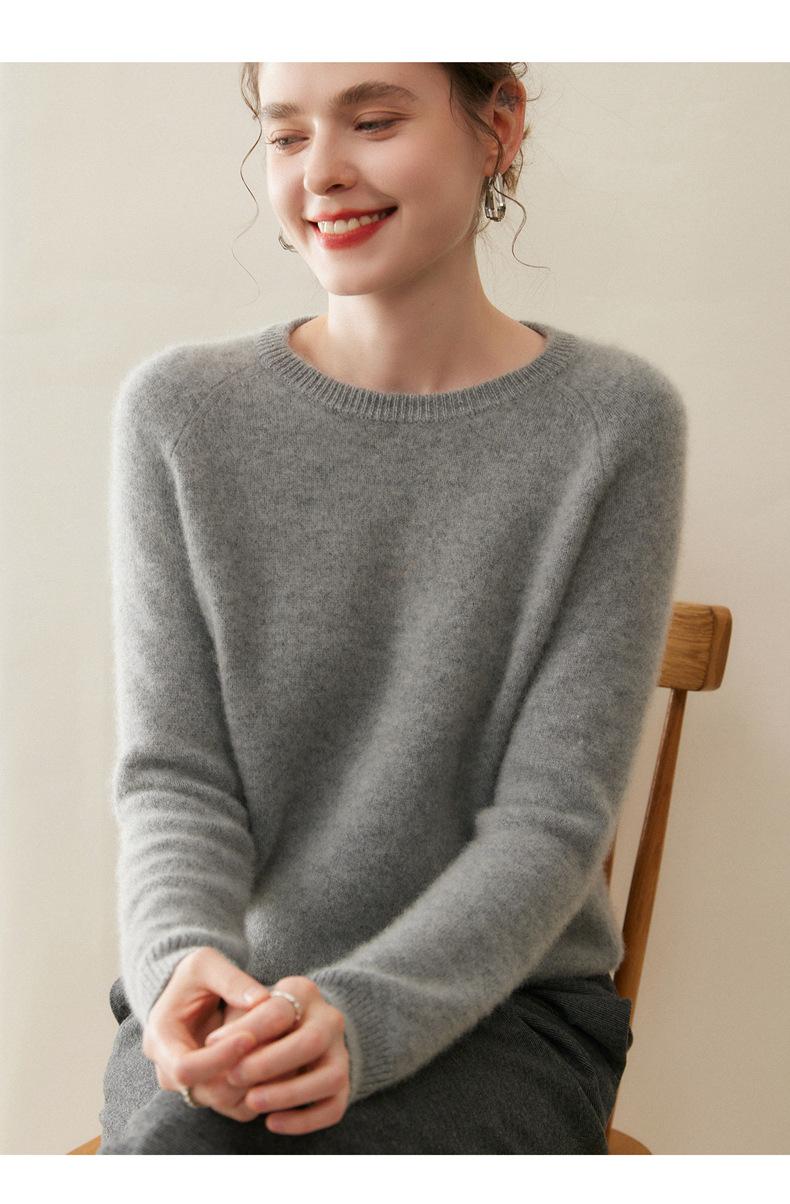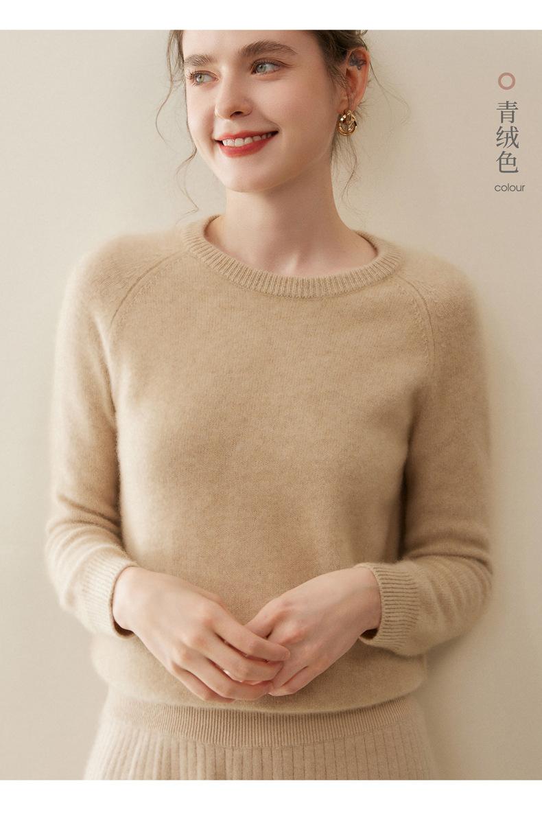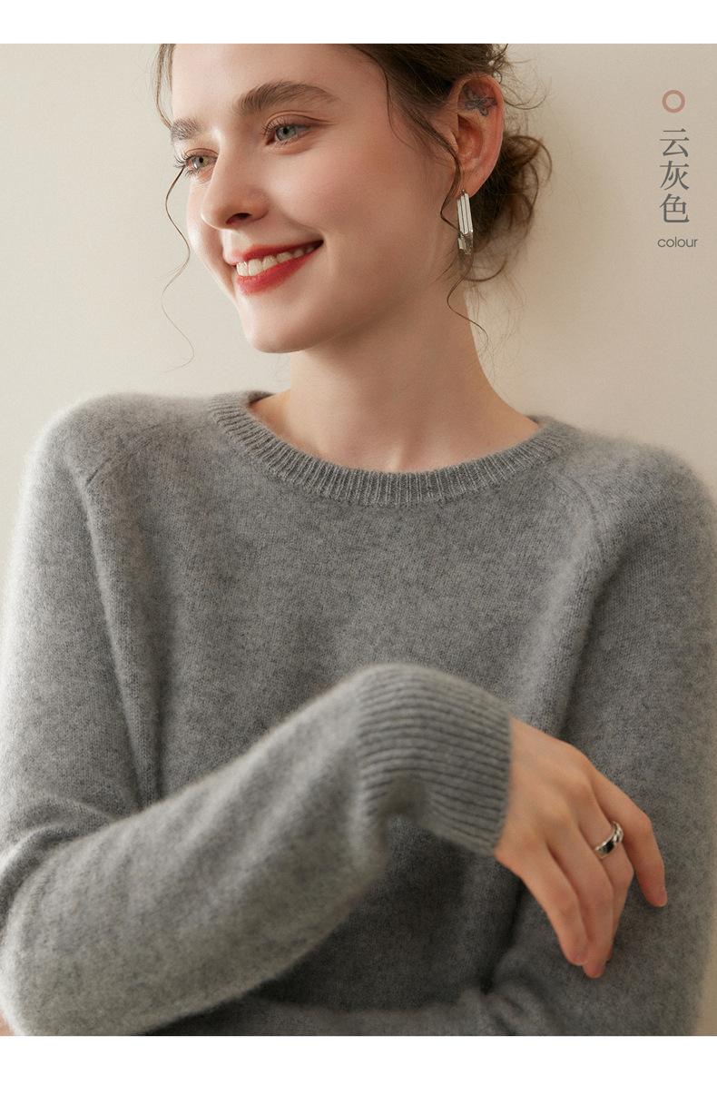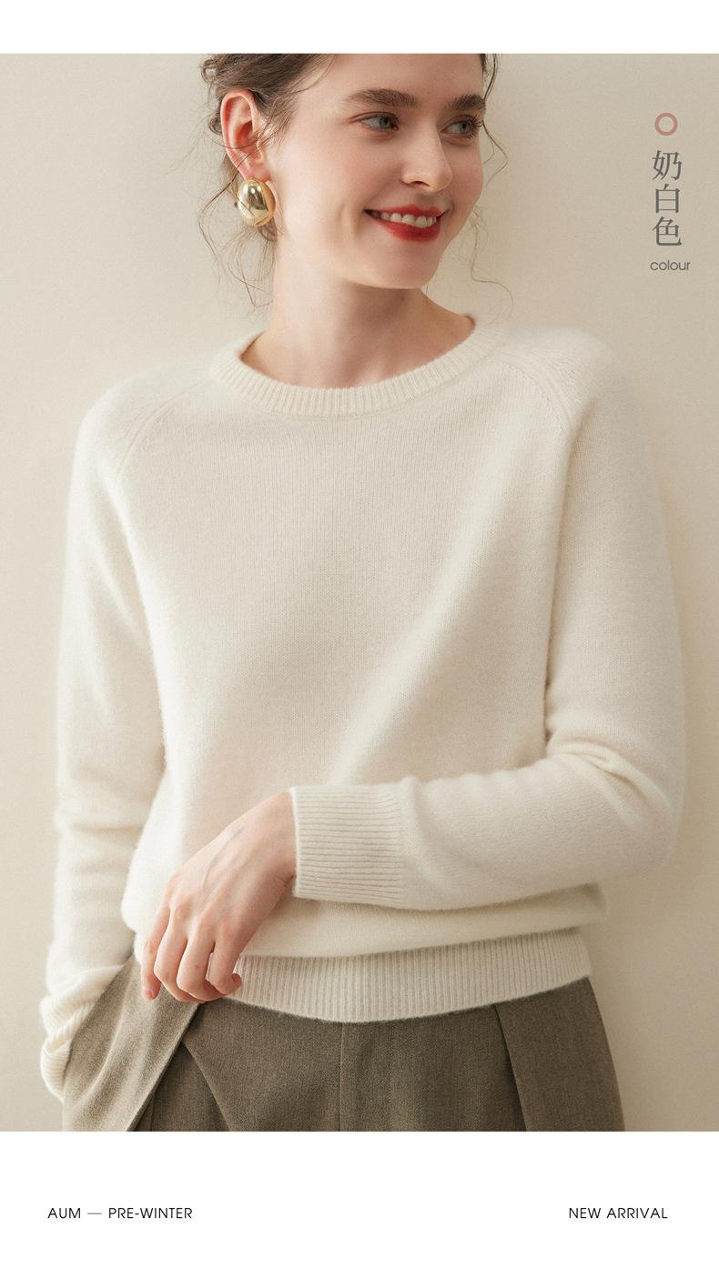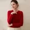 Suéter de Cachemira 100% Pura Otoño e Invierno Nuevo Cuello Redondo Suéter de Cachemira Mujer Suéter Color Sólido Versátil Adelgazante Tejido Manga Larga Camiseta Base