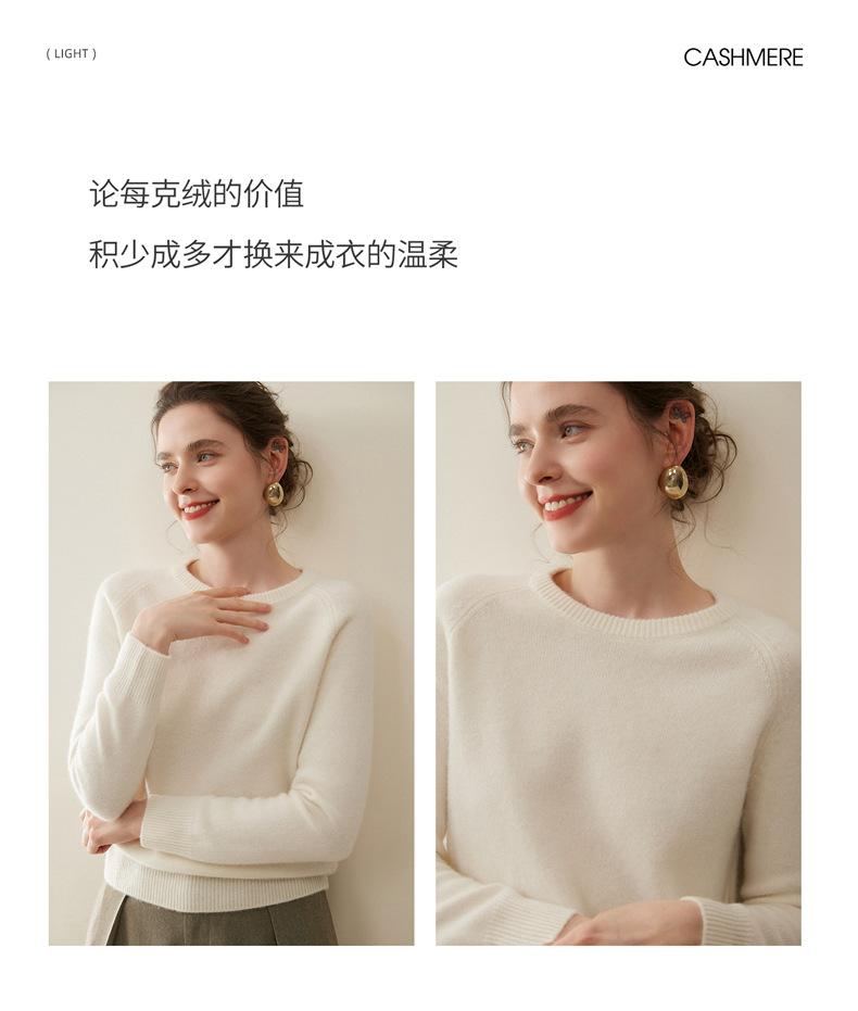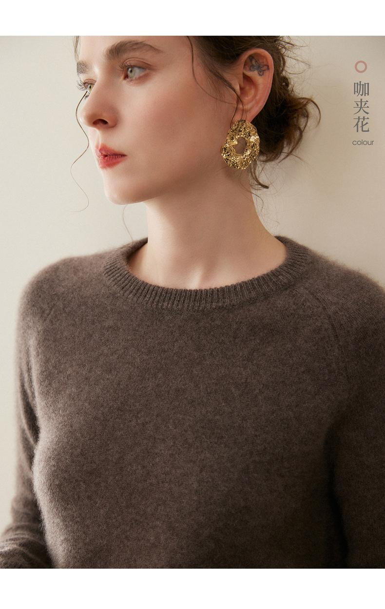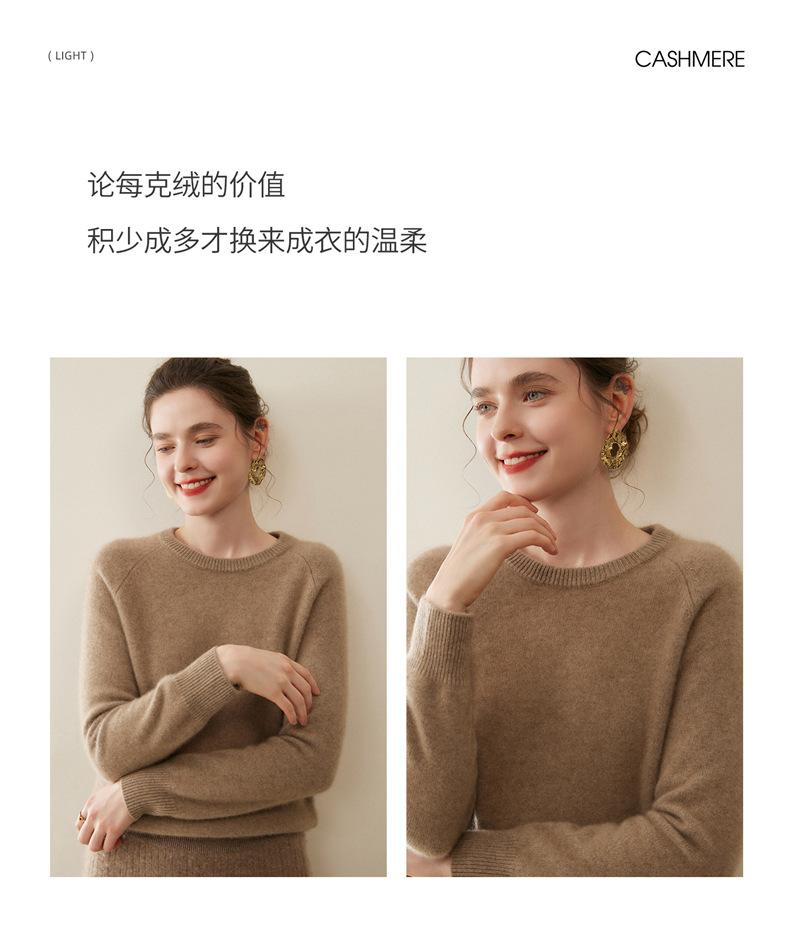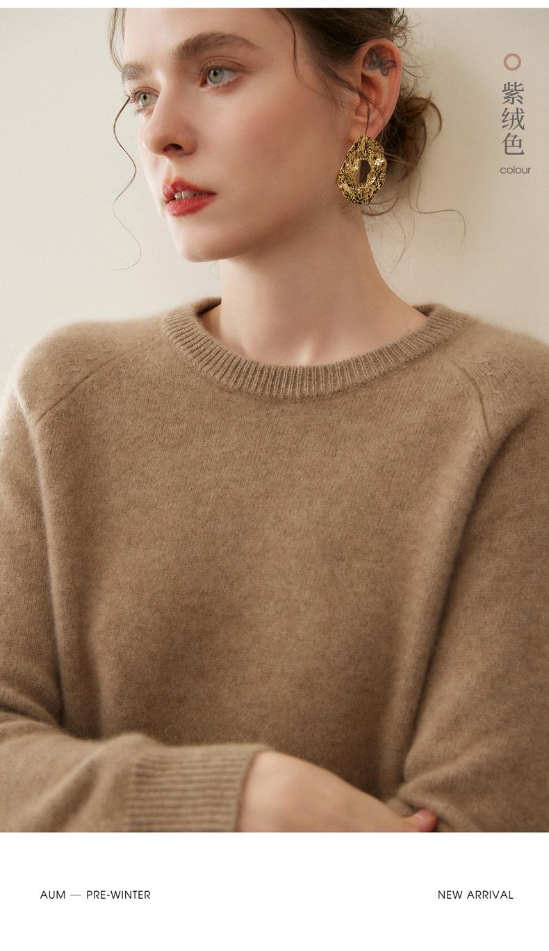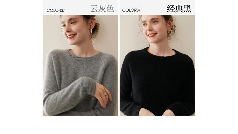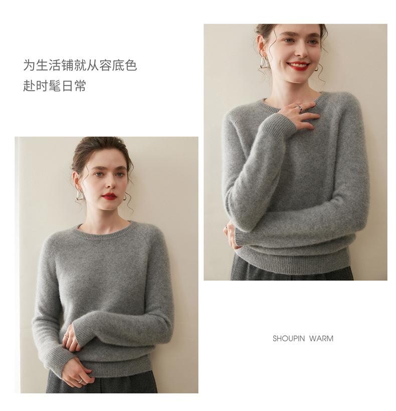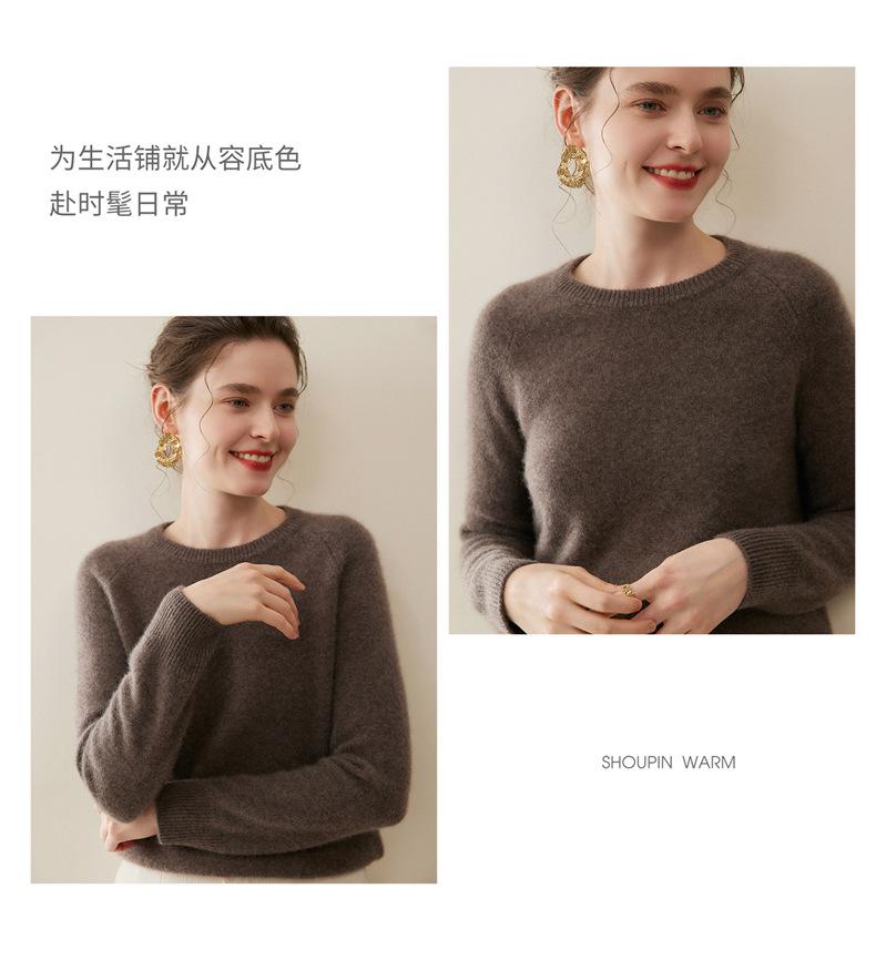 Suéter de Cachemira 100% Pura Otoño e Invierno Nuevo Cuello Redondo Suéter de Cachemira Mujer Suéter Color Sólido Versátil Adelgazante Tejido Manga Larga Camiseta Base