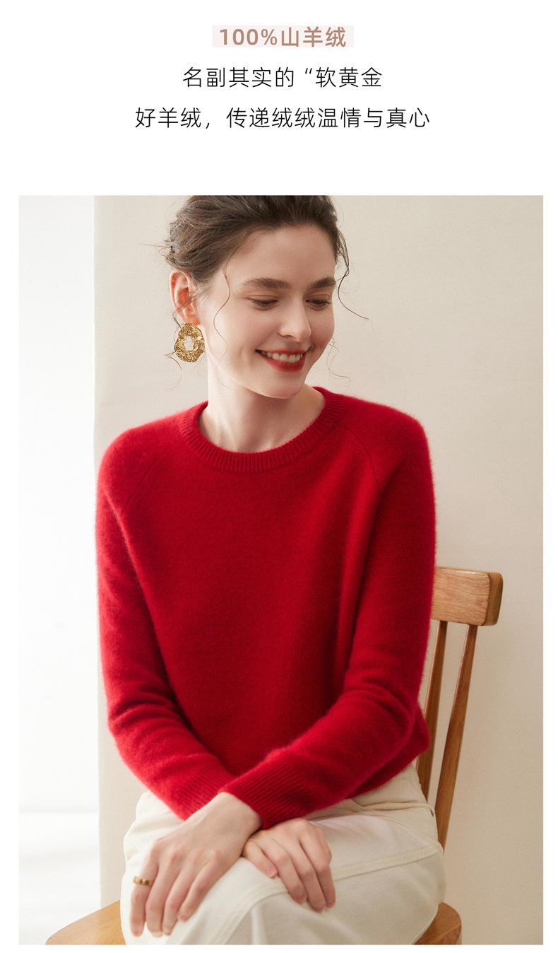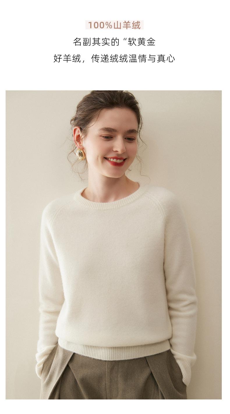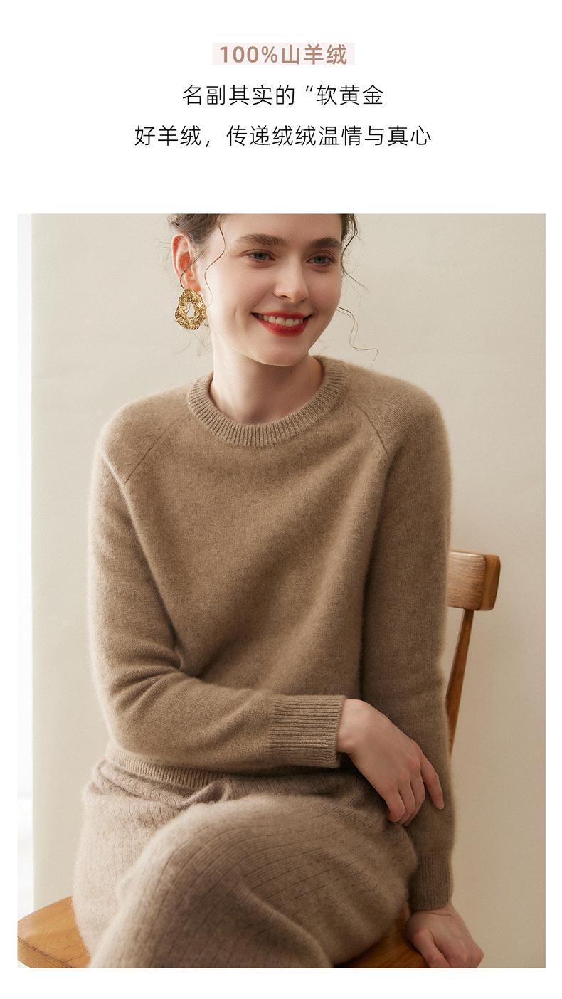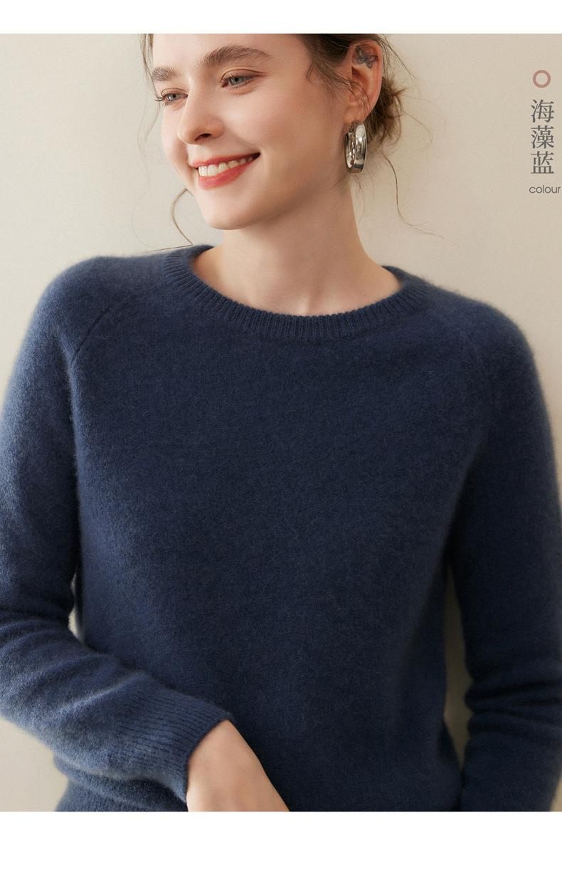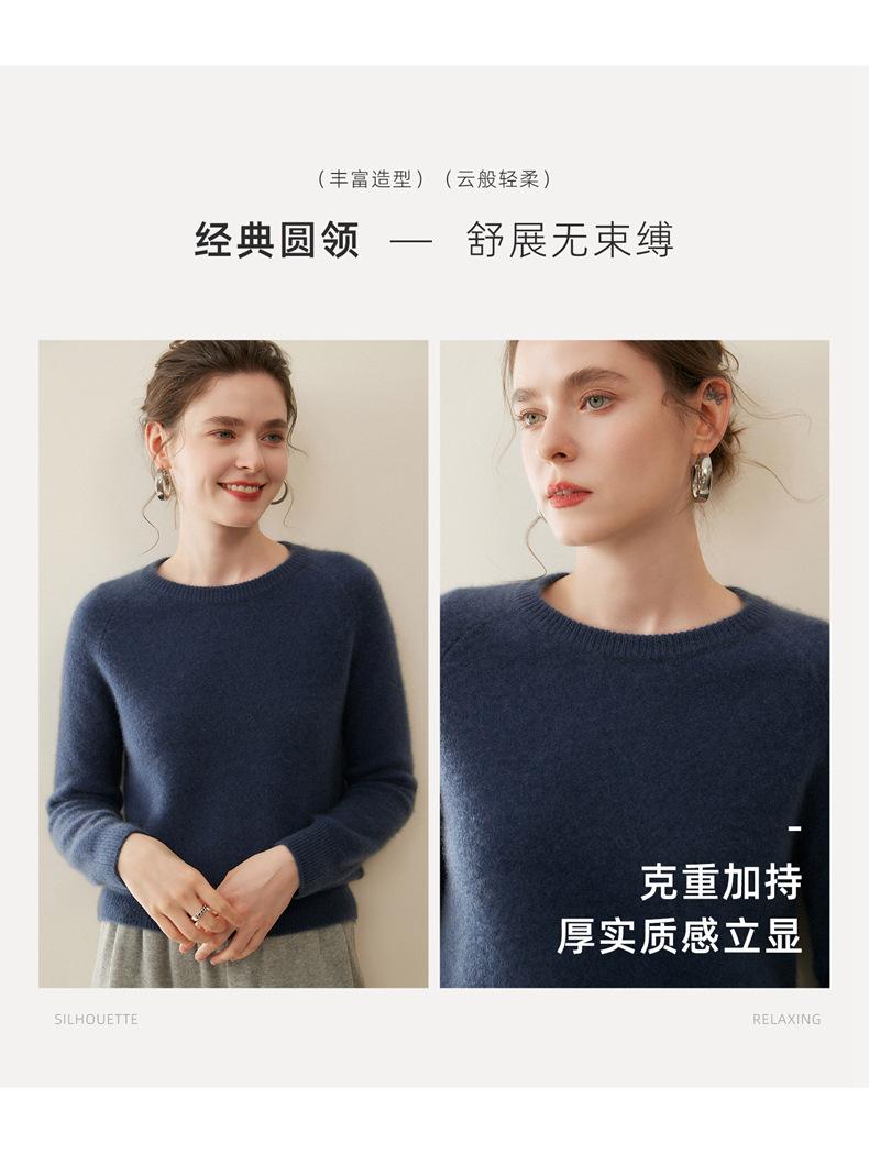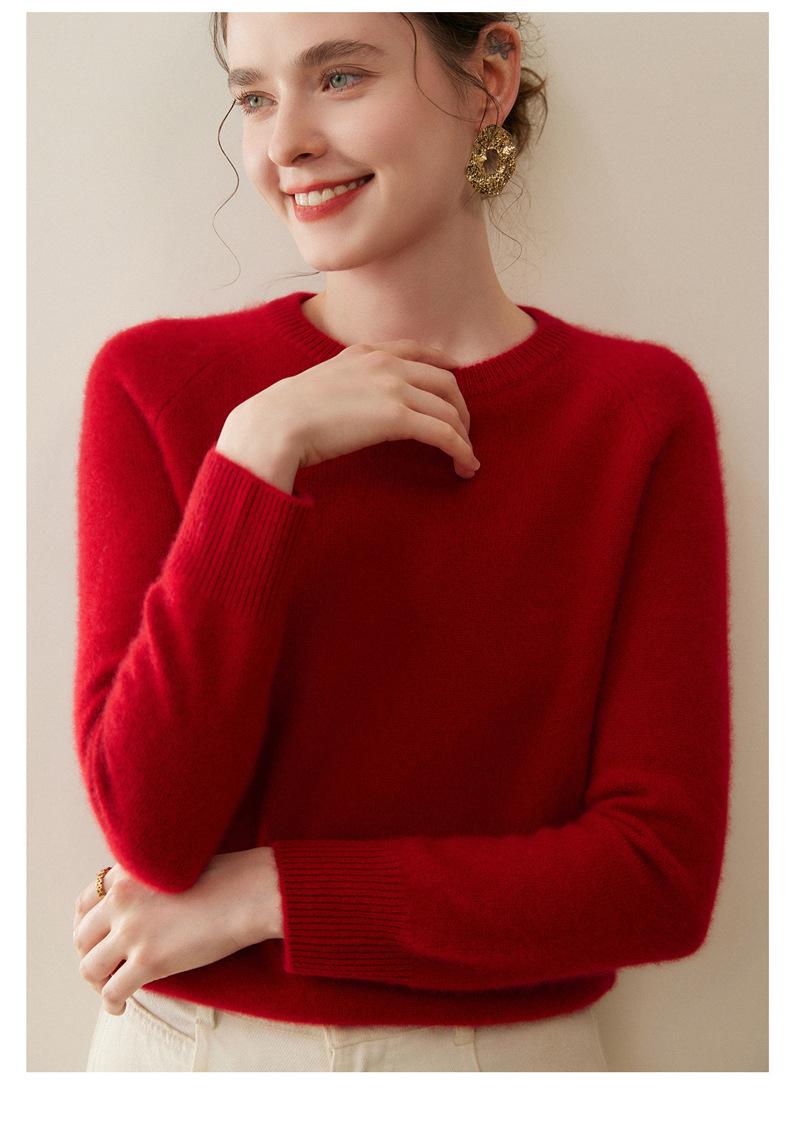 Suéter de Cachemira 100% Pura Otoño e Invierno Nuevo Cuello Redondo Suéter de Cachemira Mujer Suéter Color Sólido Versátil Adelgazante Tejido Manga Larga Camiseta Base