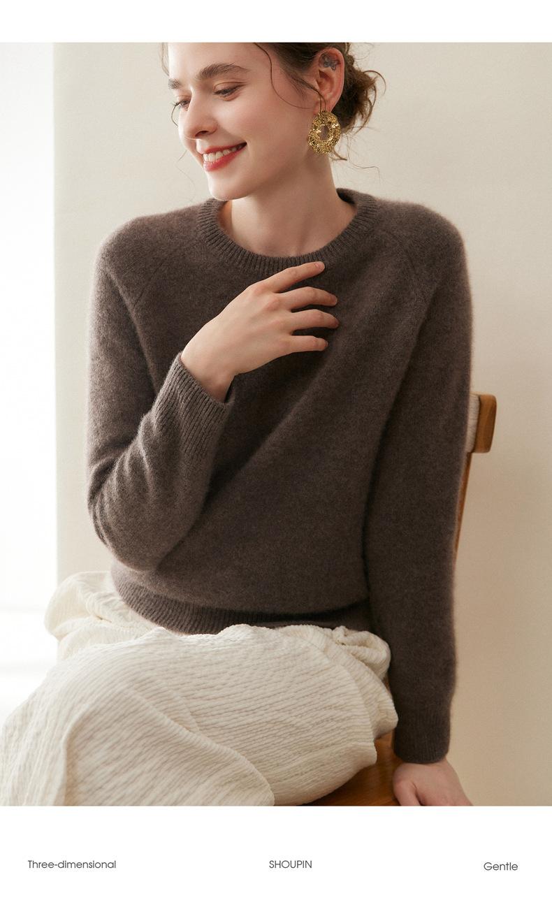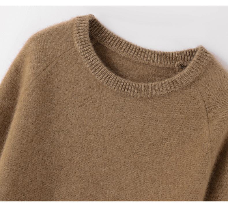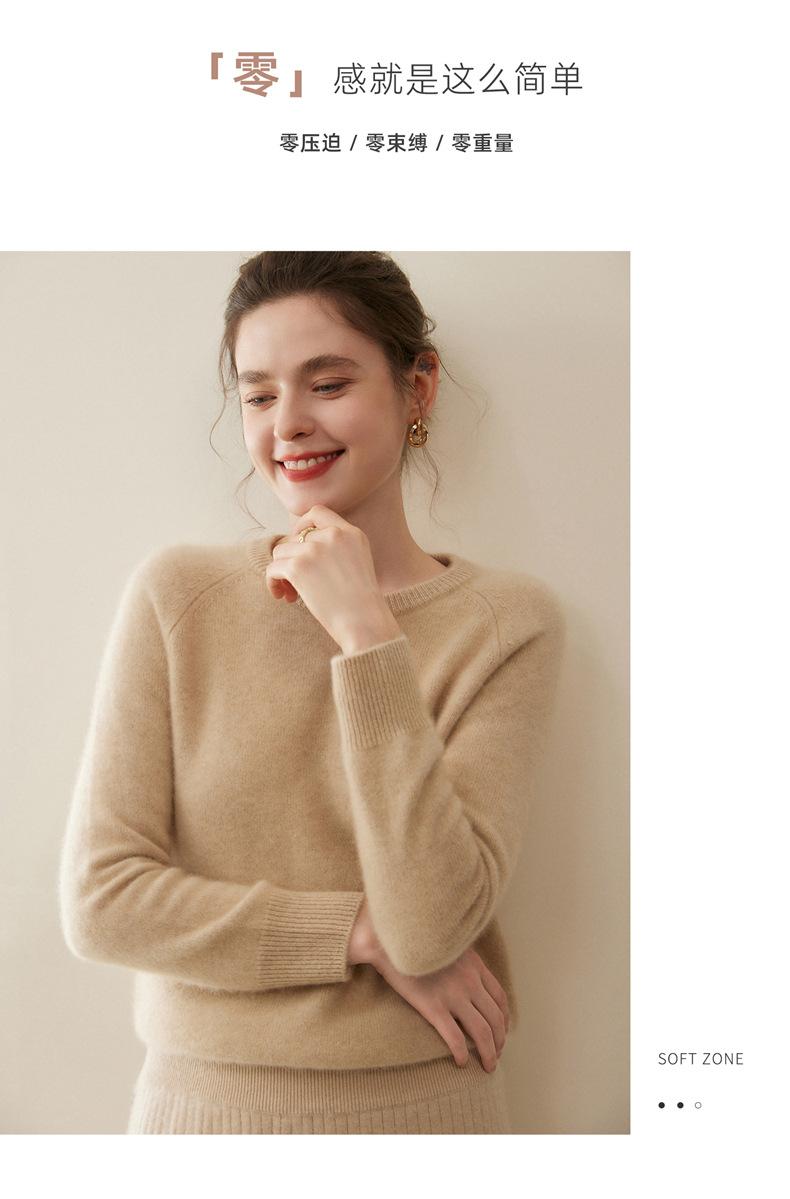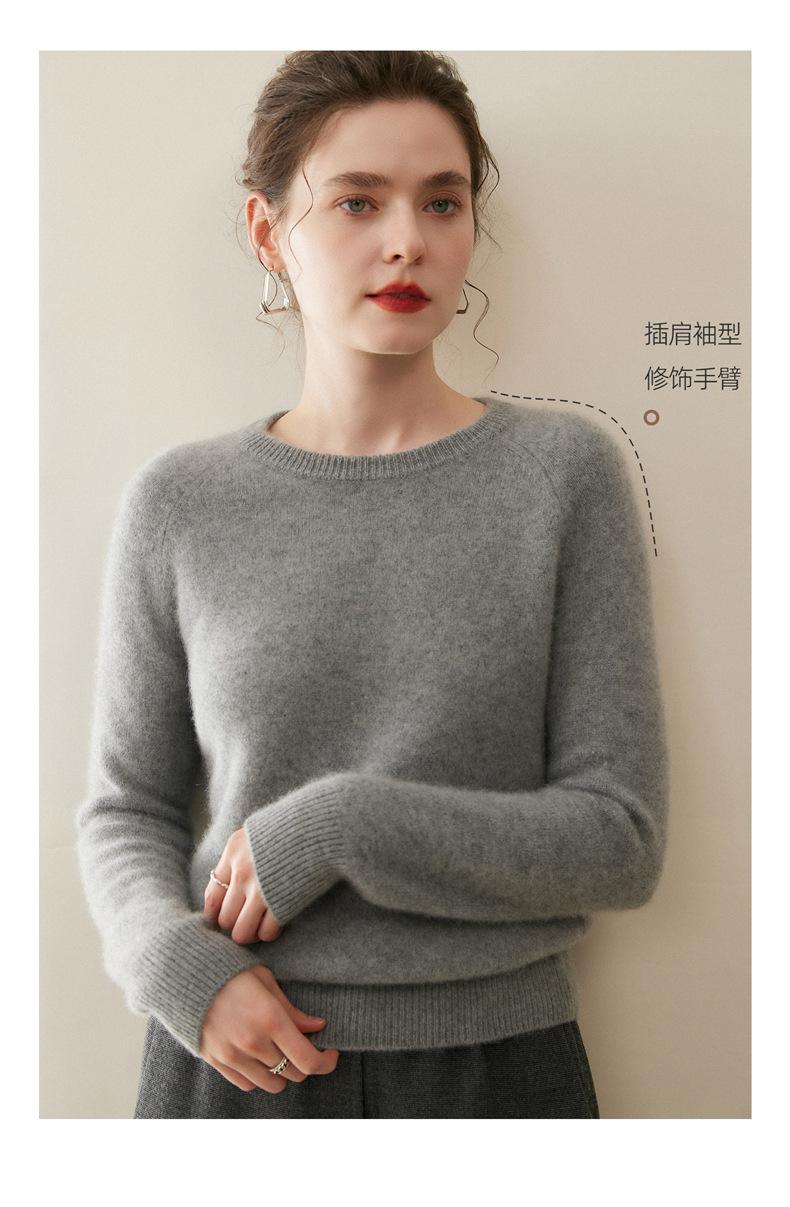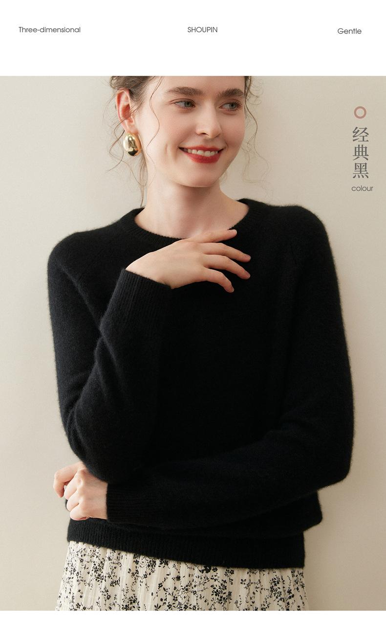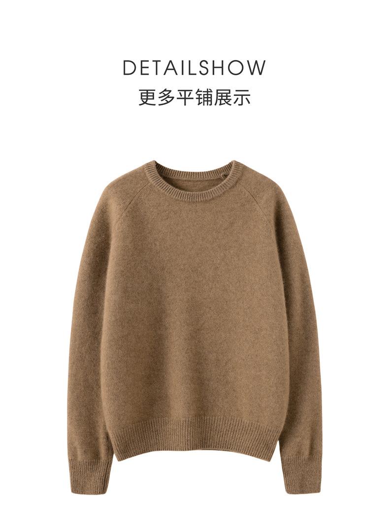 Suéter de Cachemira 100% Pura Otoño e Invierno Nuevo Cuello Redondo Suéter de Cachemira Mujer Suéter Color Sólido Versátil Adelgazante Tejido Manga Larga Camiseta Base