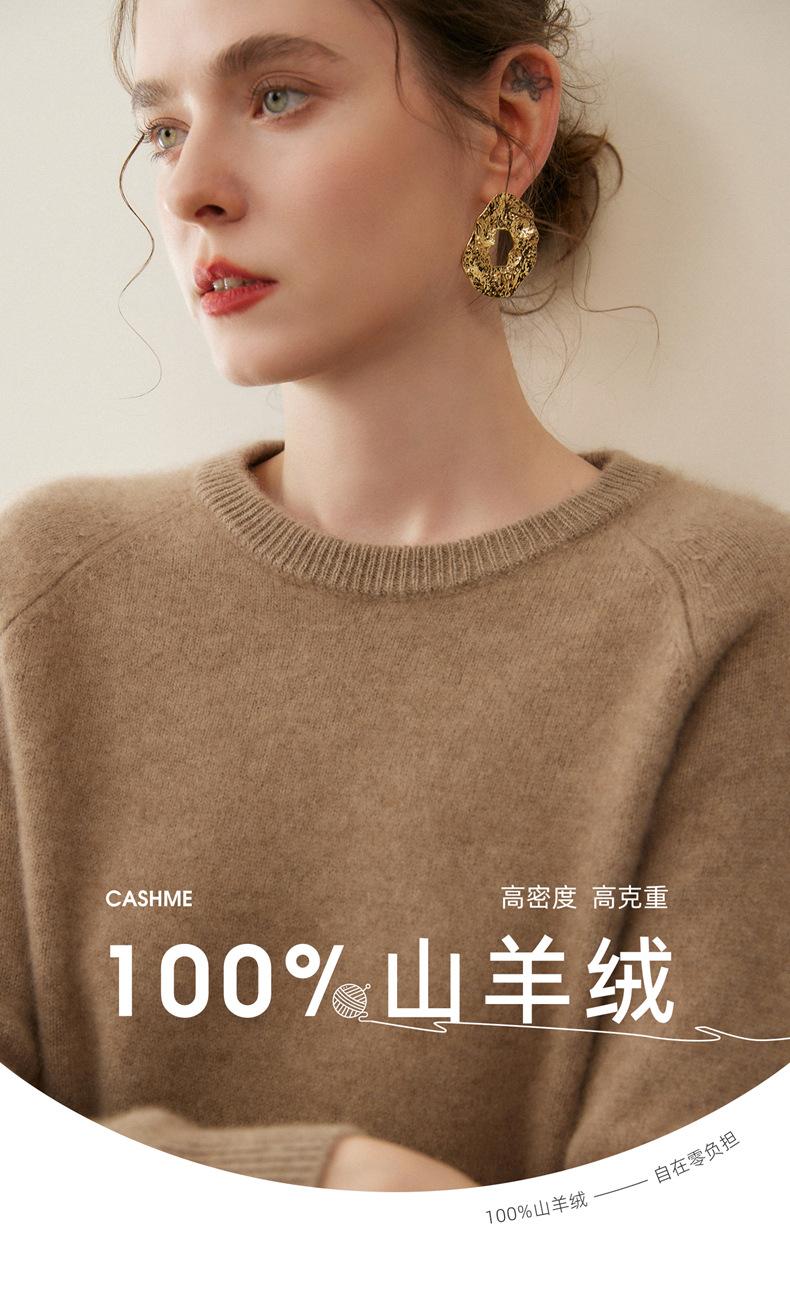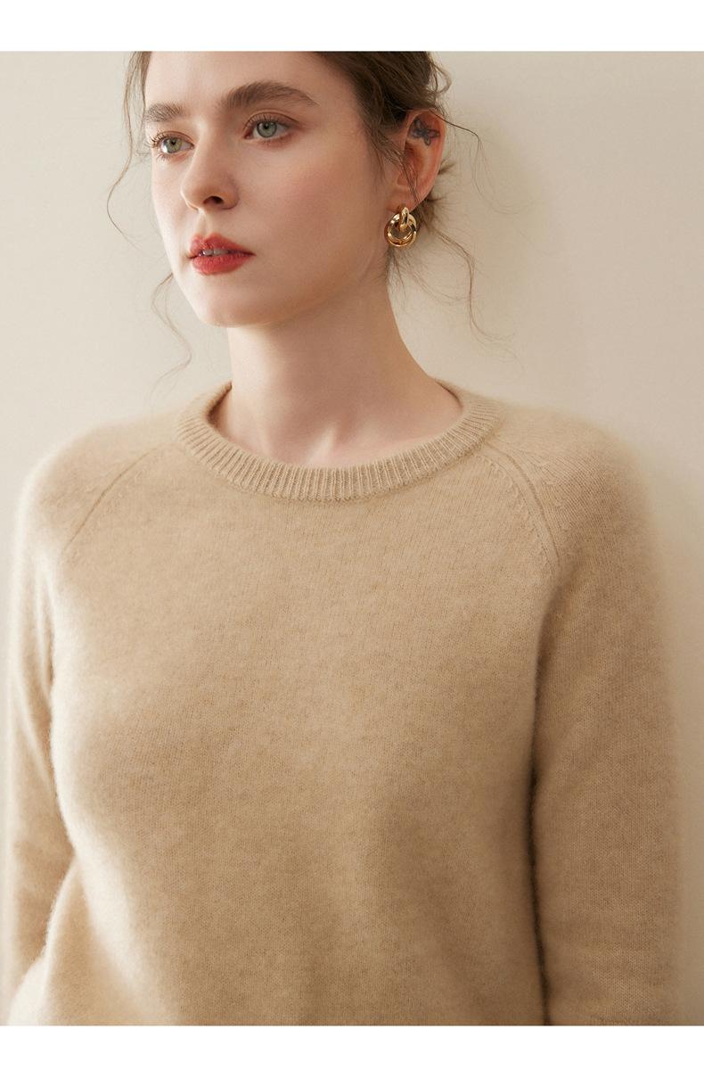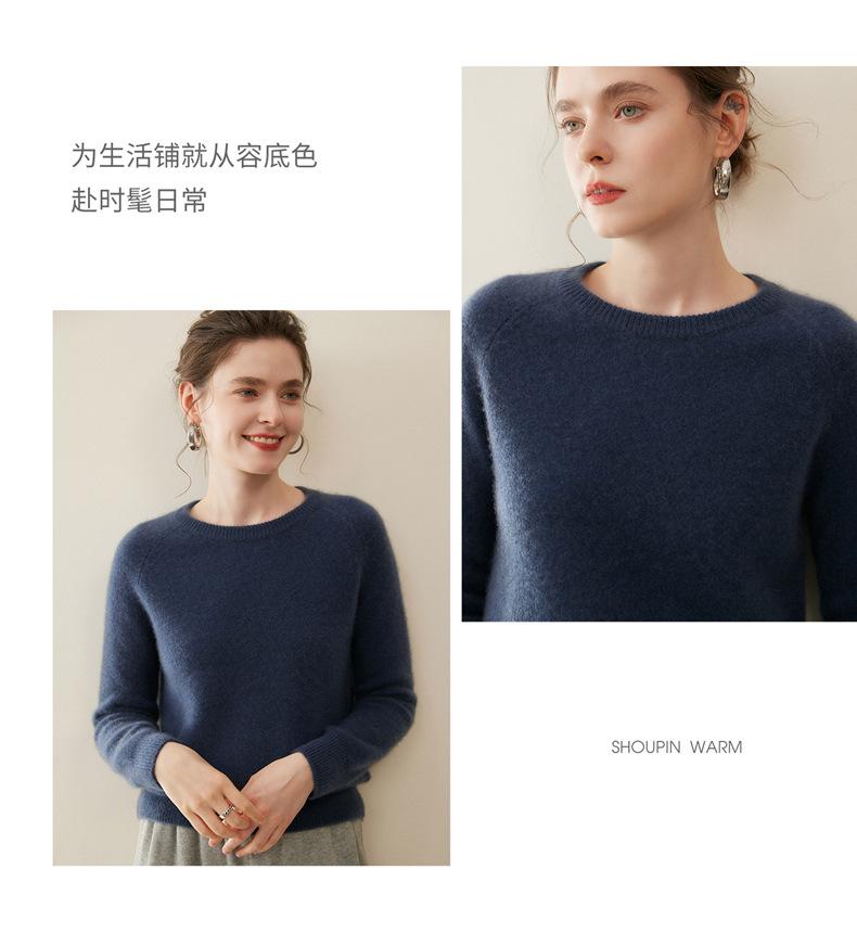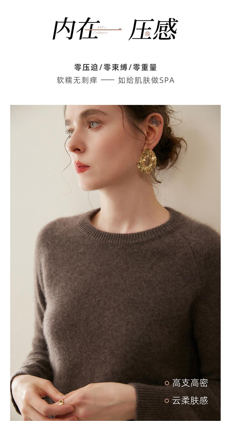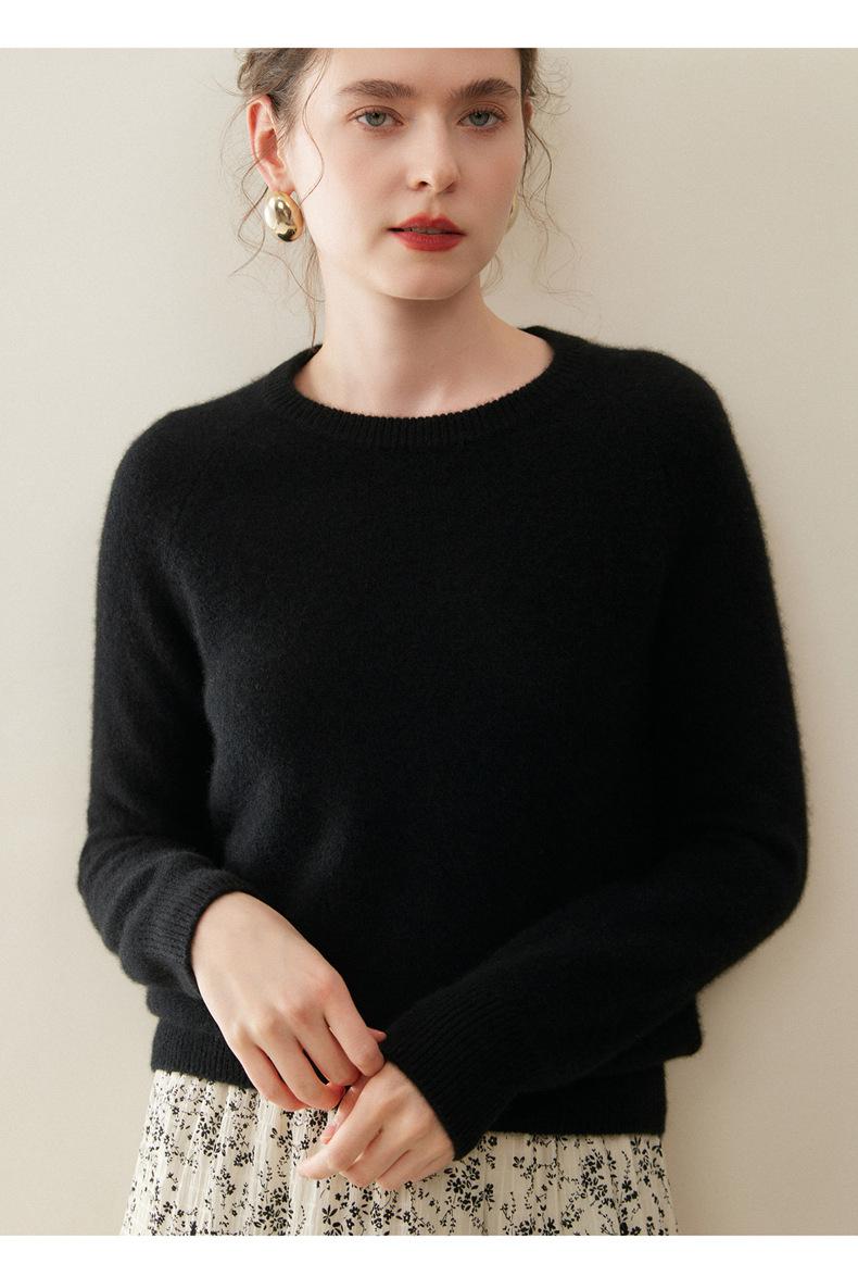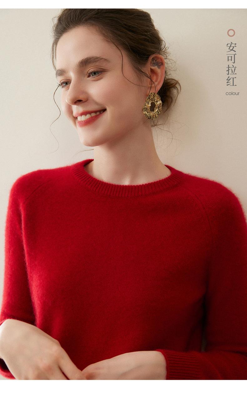 Suéter de Cachemira 100% Pura Otoño e Invierno Nuevo Cuello Redondo Suéter de Cachemira Mujer Suéter Color Sólido Versátil Adelgazante Tejido Manga Larga Camiseta Base