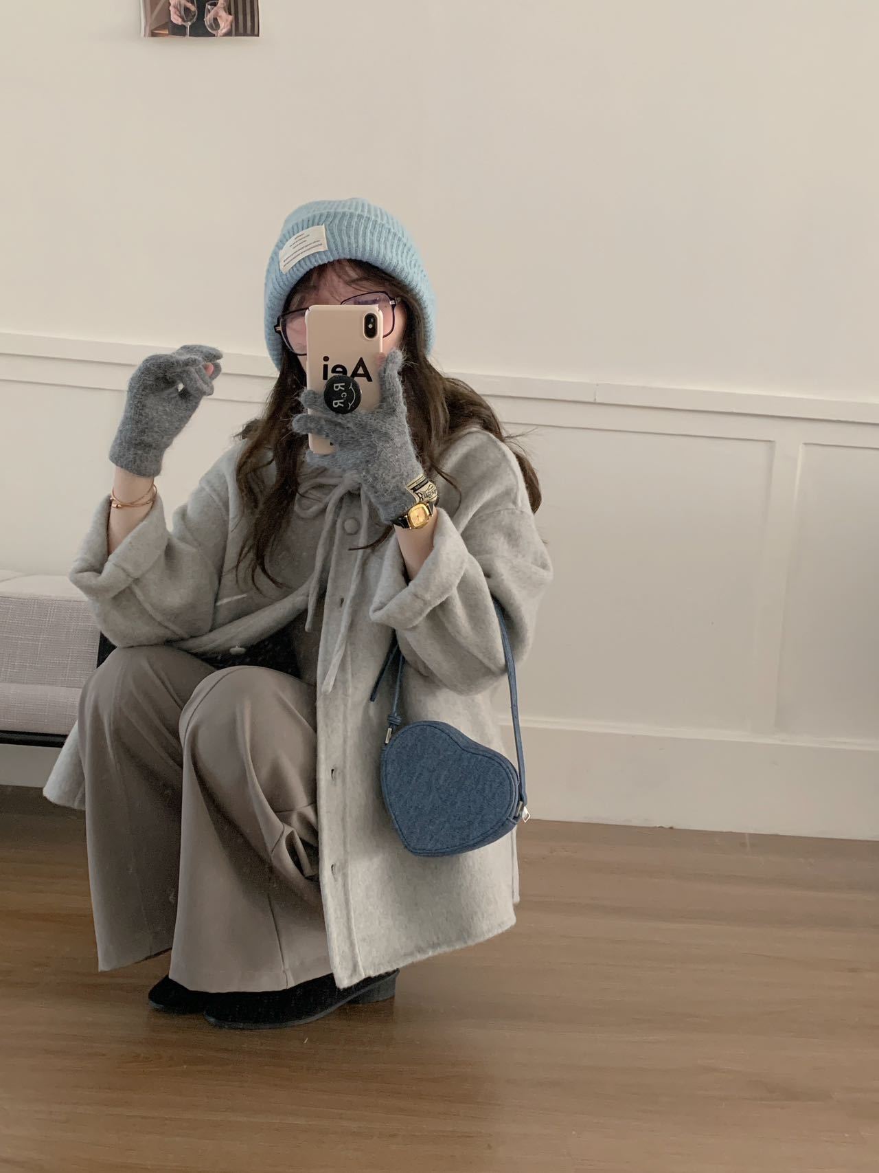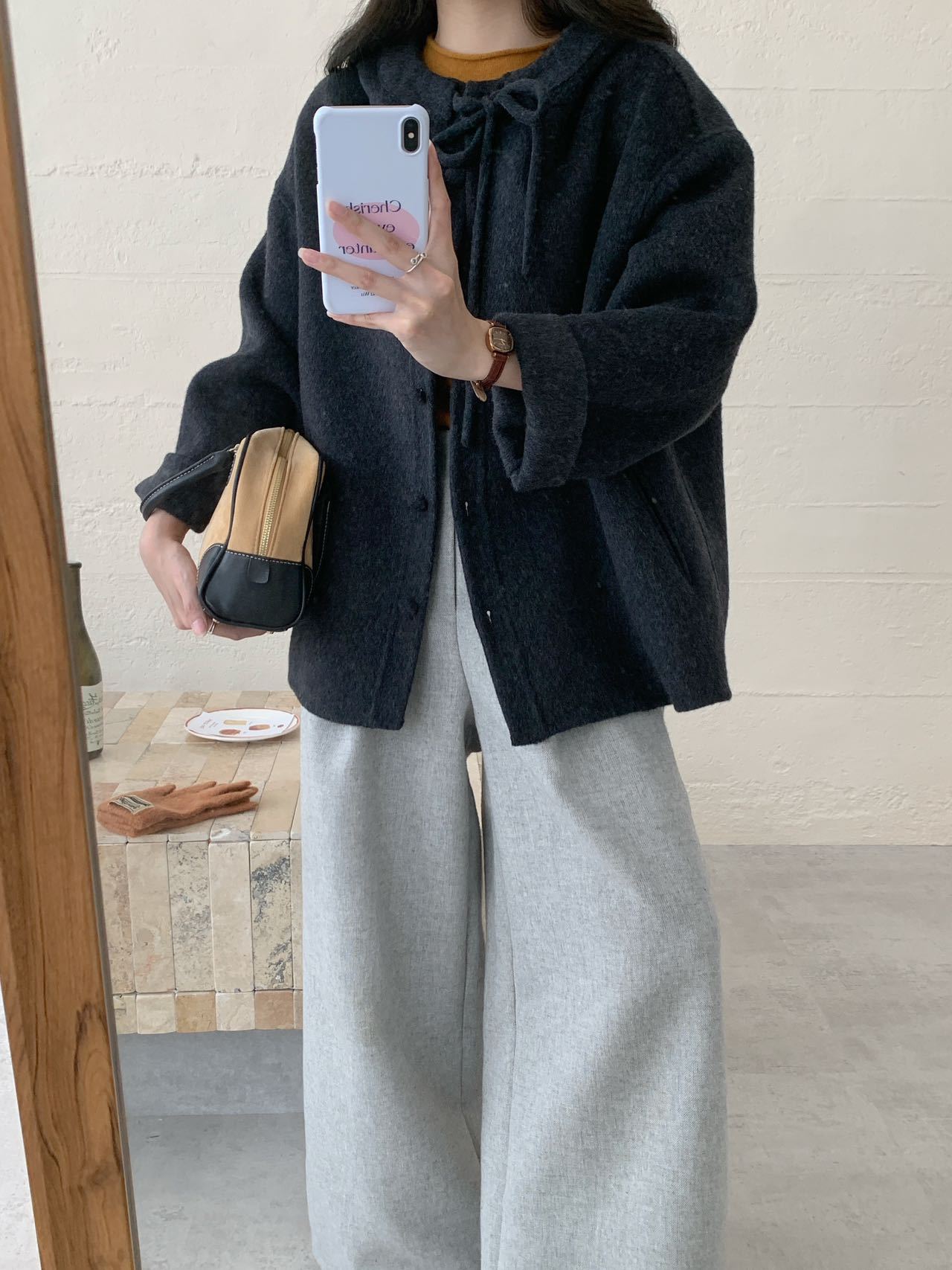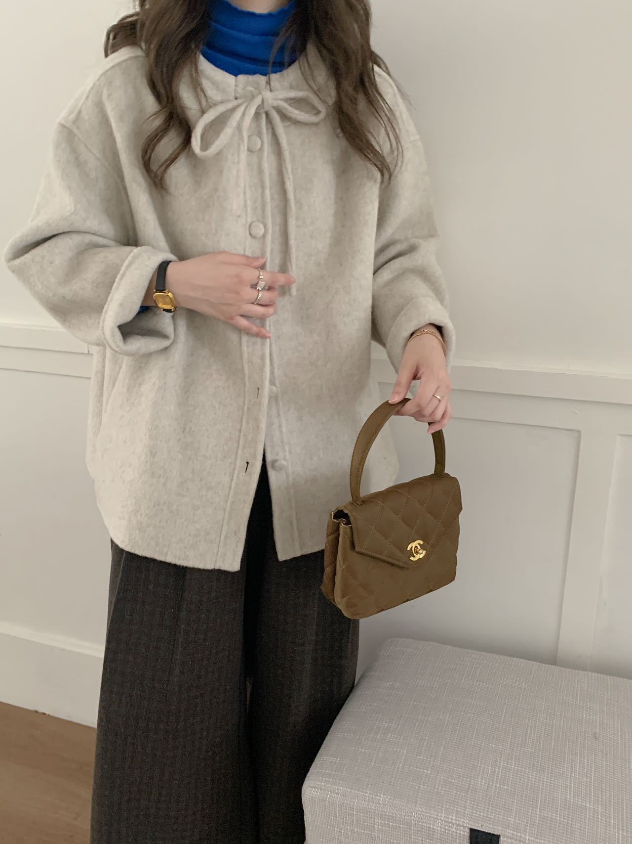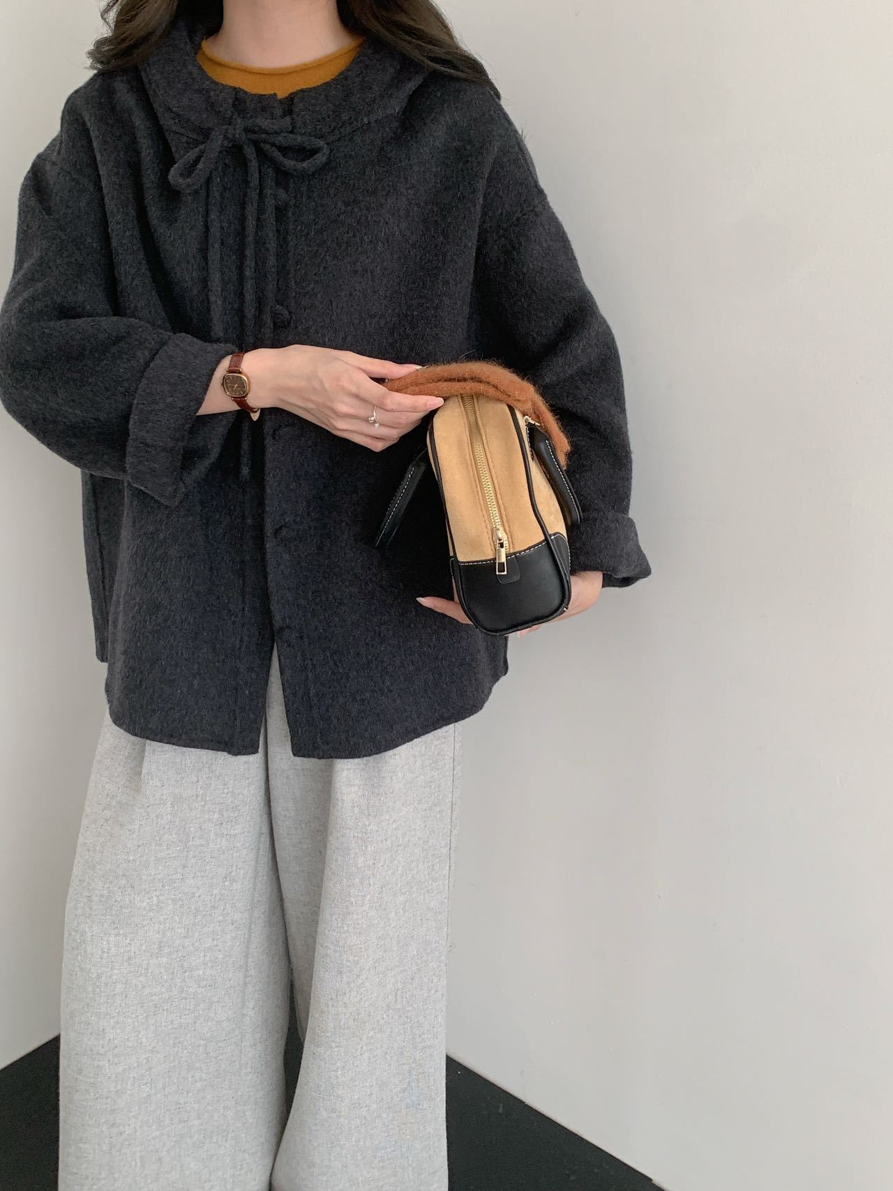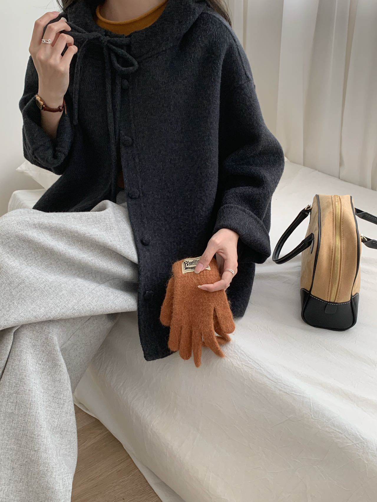 Ahora abrigo de lana doble faz mujer 2025 otoño e invierno nuevo lazo estilo universitario coreano petite con capucha lana out