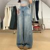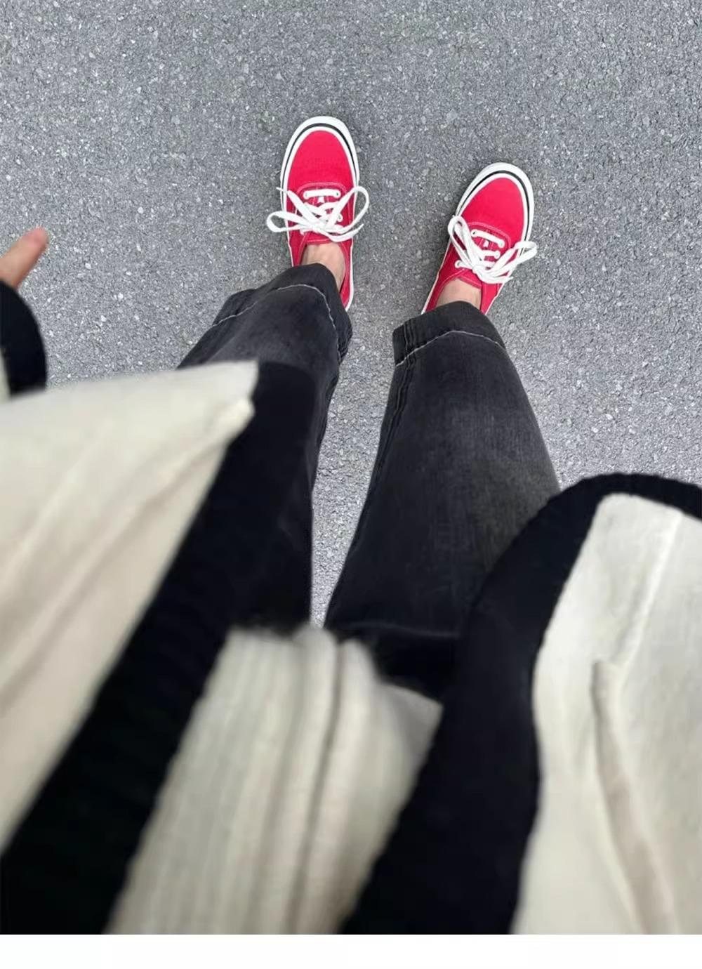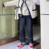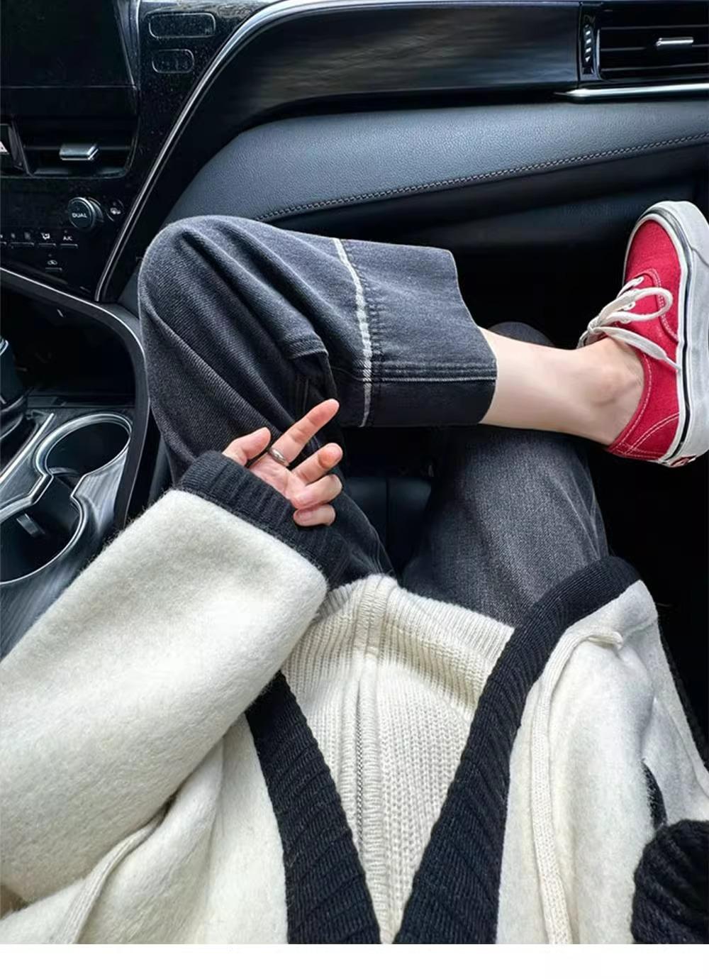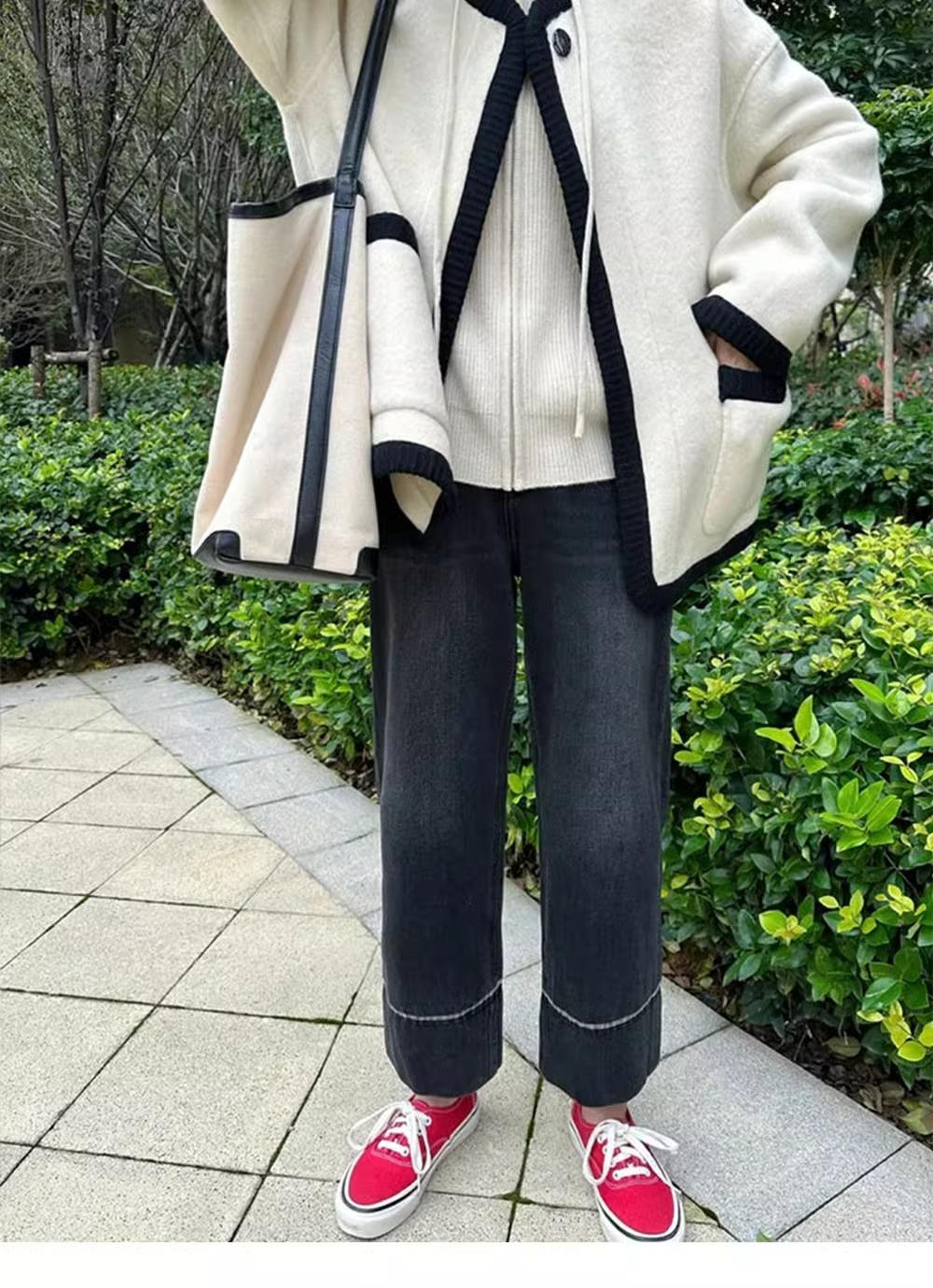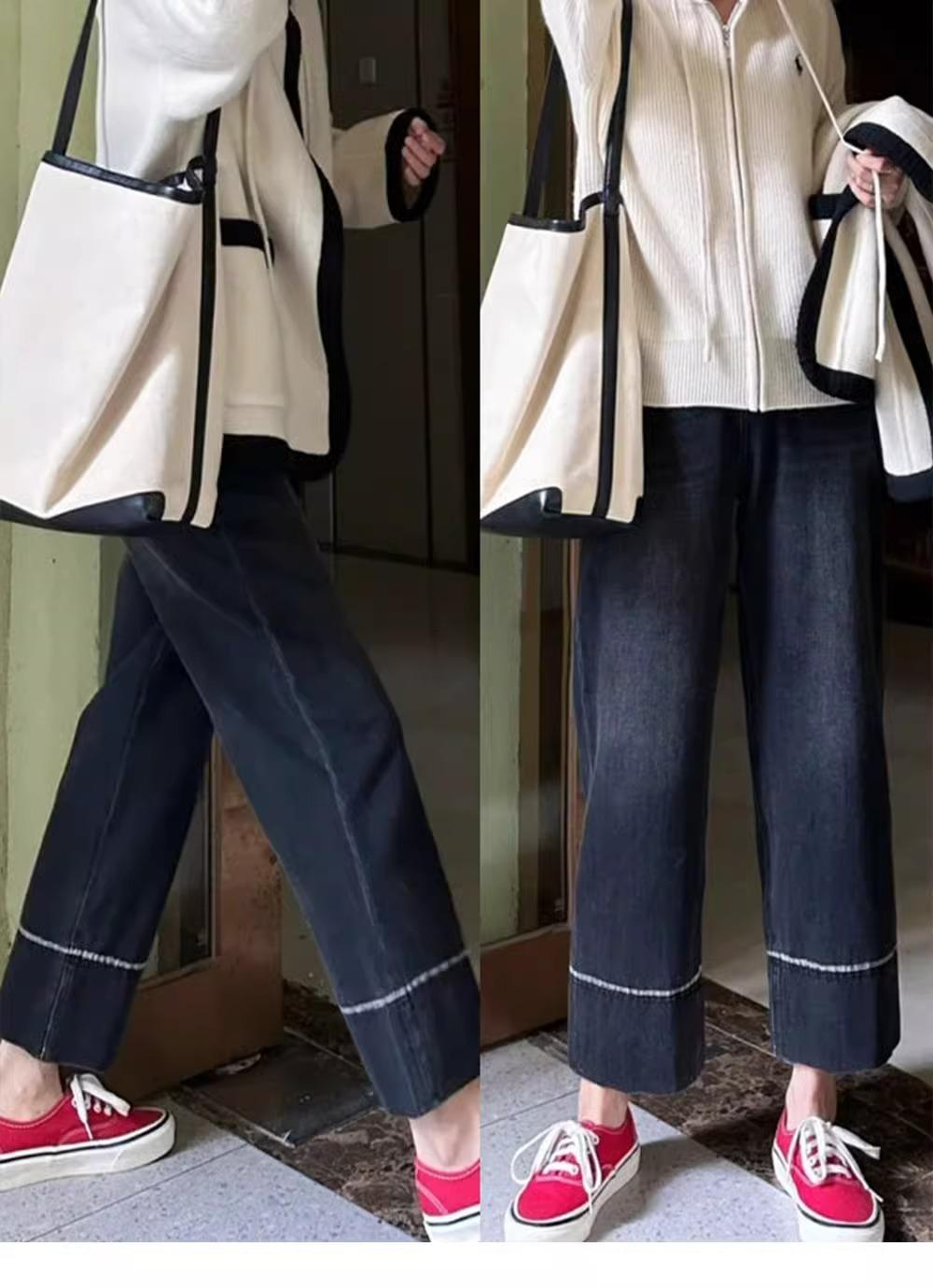 Pantalones cropped rectos negros para mujer otoño nuevo talla grande gorda mm adelgazantes cintura alta cubre caderas petite jeans de pierna ancha