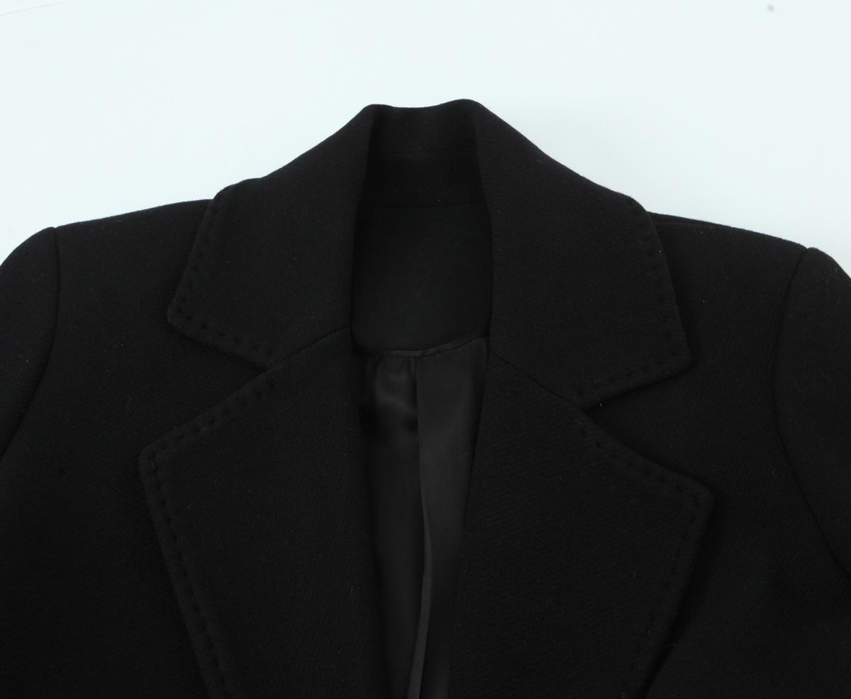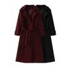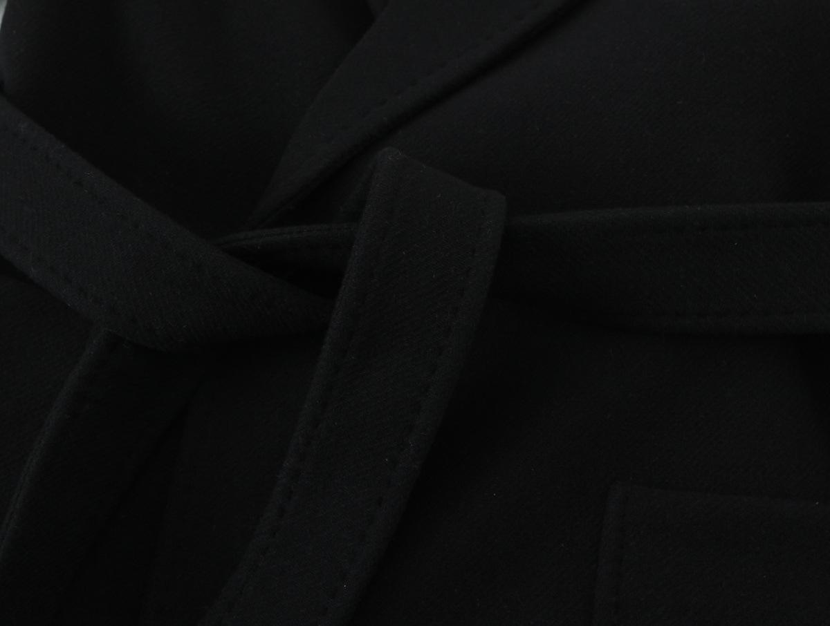 Ropa de Mujer de Comercio Exterior Transfronterizo Otoño/Invierno 2025 Europeo y Americano Solapa Manga Larga Cintura Entallada Lazo Abrigo de Lana de Largo Medio Ropa Exterior Mujer