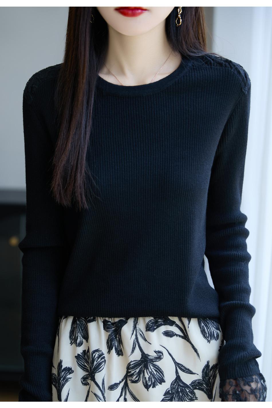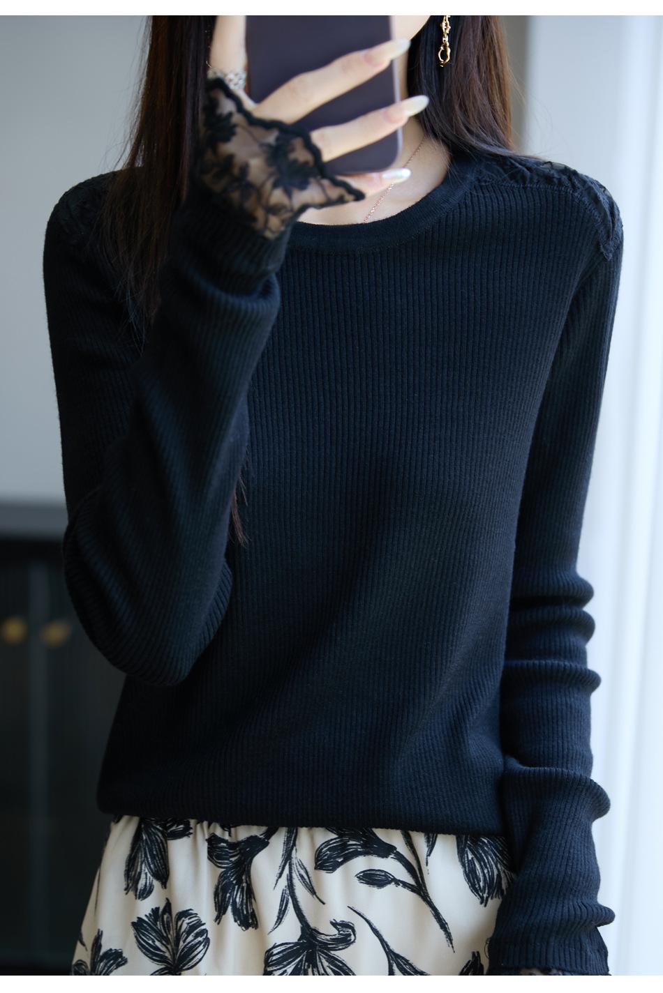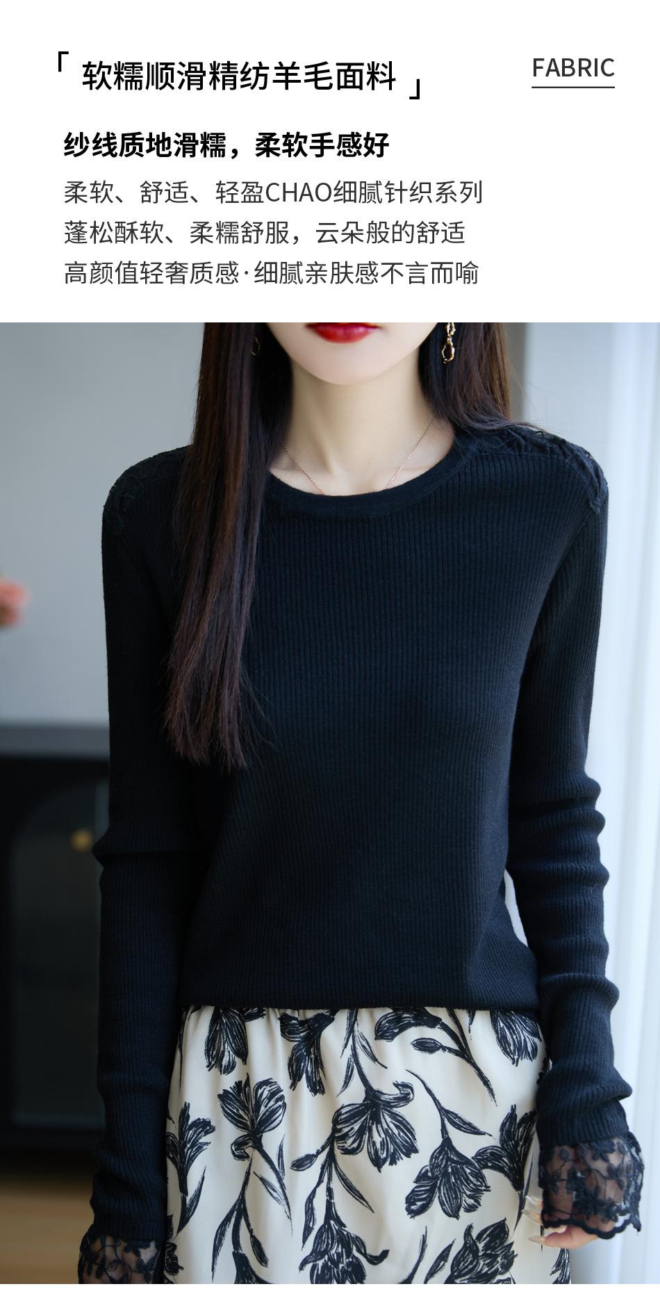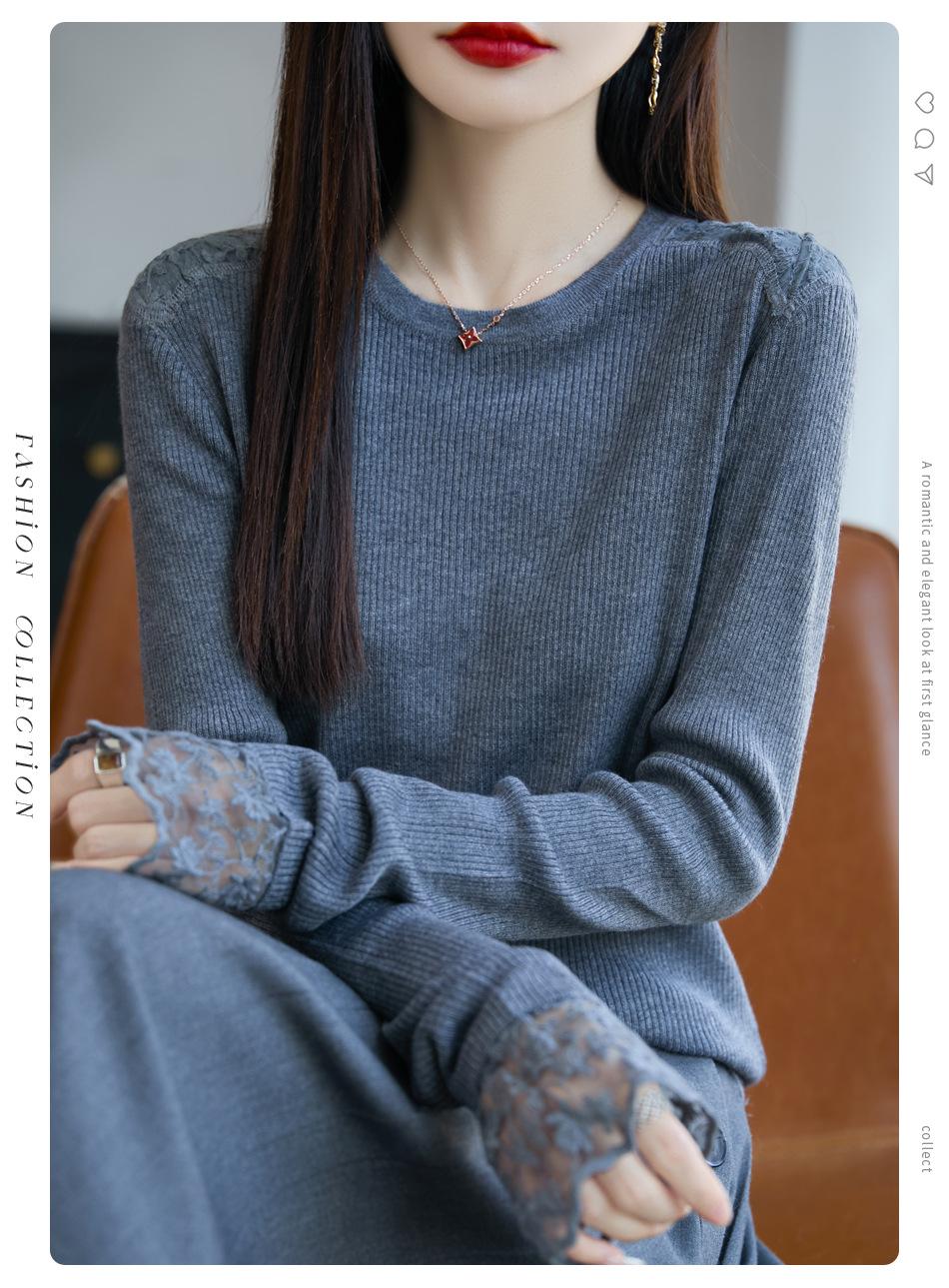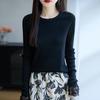 Prenda Base de Punto de Lana Merino Fina para Mujer, Top Jersey de Cuello Redondo, Principios de Otoño, Nuevo, Adelgazante y Afinador, Suéter Interior de Tendencia