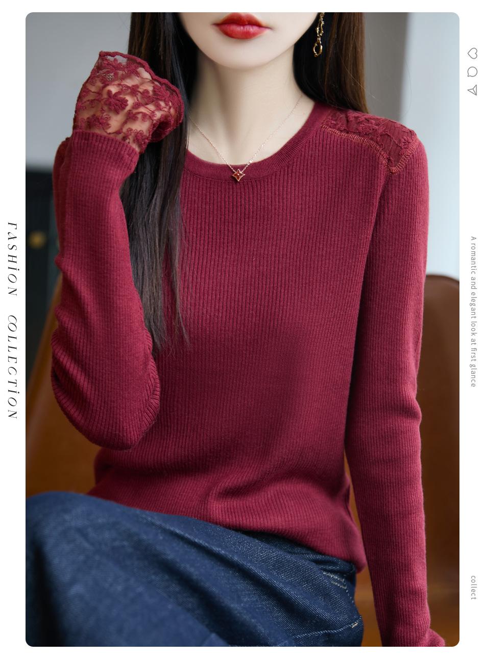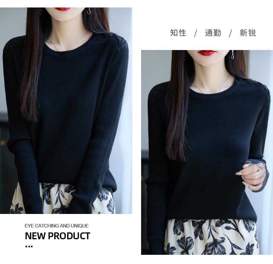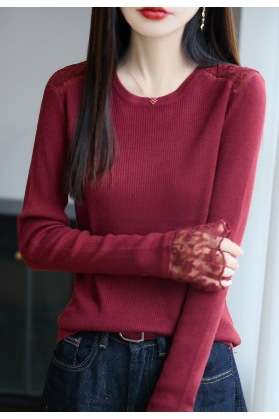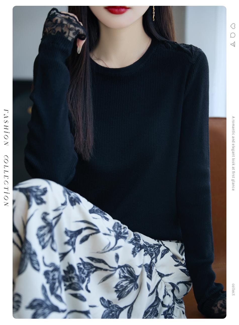 Prenda Base de Punto de Lana Merino Fina para Mujer, Top Jersey de Cuello Redondo, Principios de Otoño, Nuevo, Adelgazante y Afinador, Suéter Interior de Tendencia