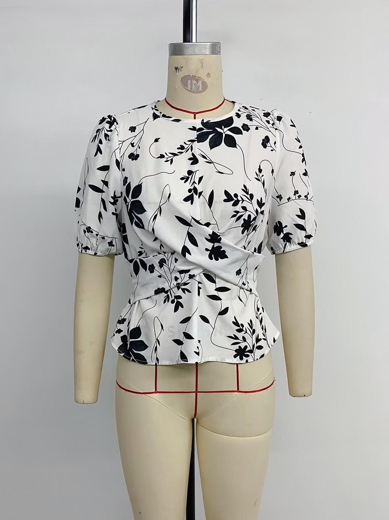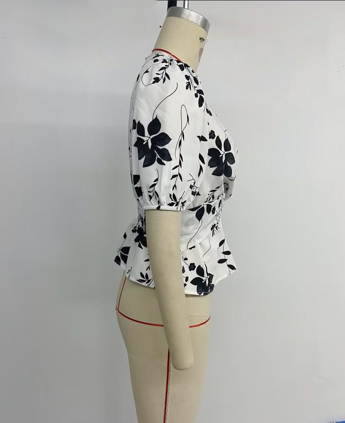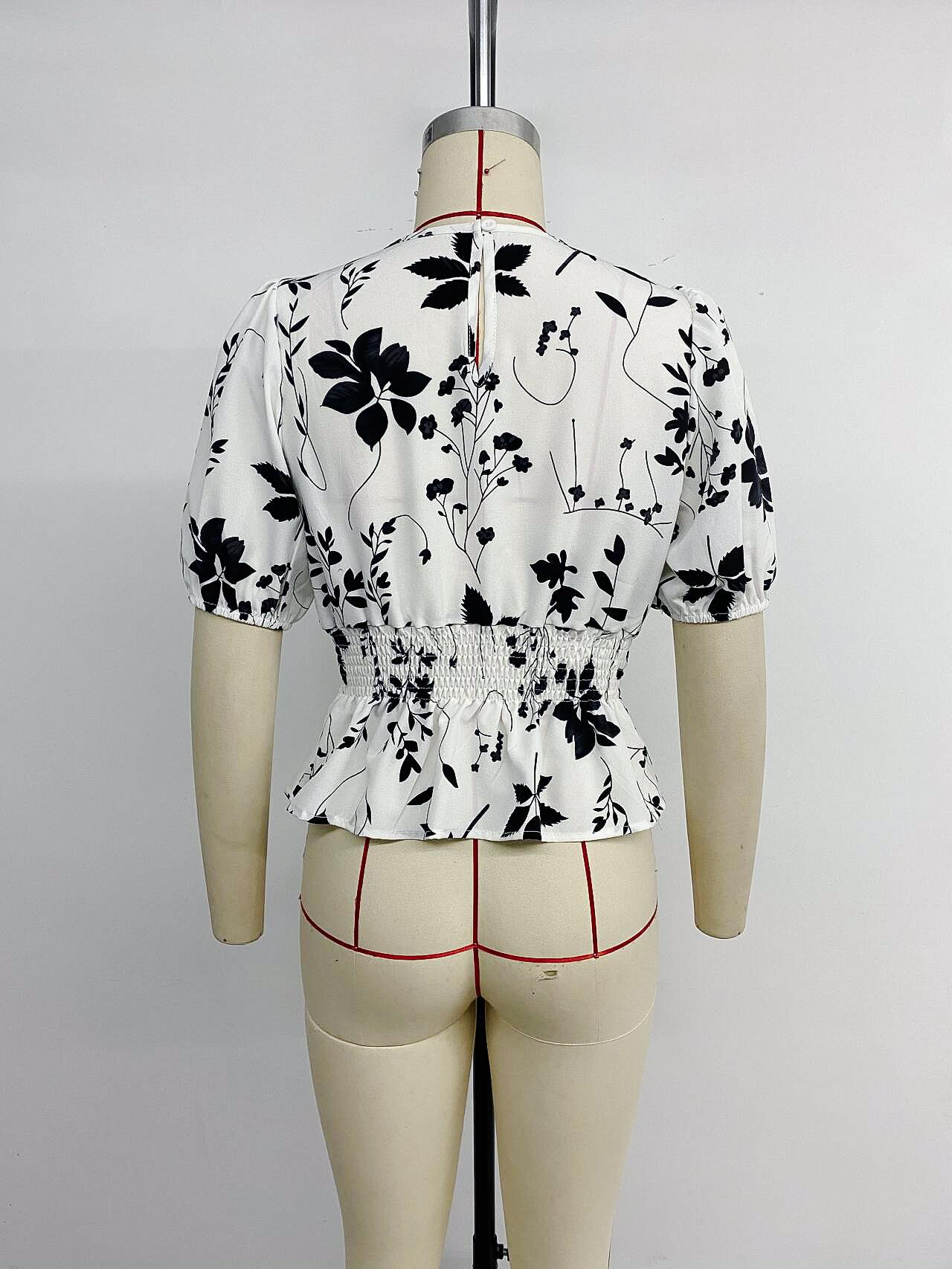 2025 Nuevo Amazon Europeo y Americano Transfronterizo Temperamento Elegante Retro Estilo Dulce Estampado Floral Top Manga Abullonada Mujer