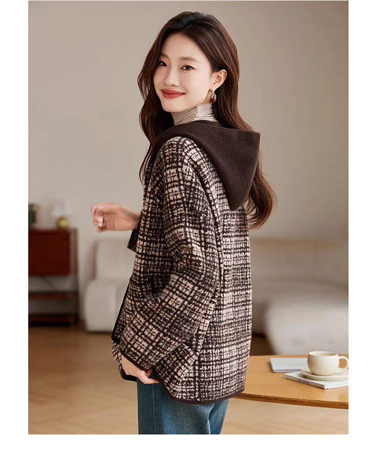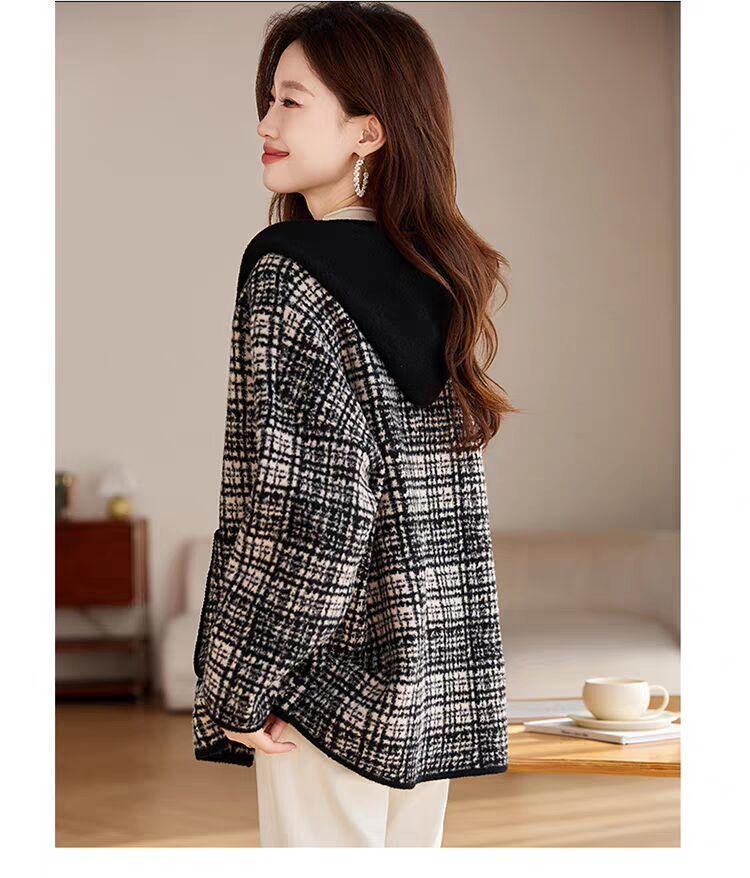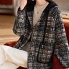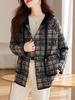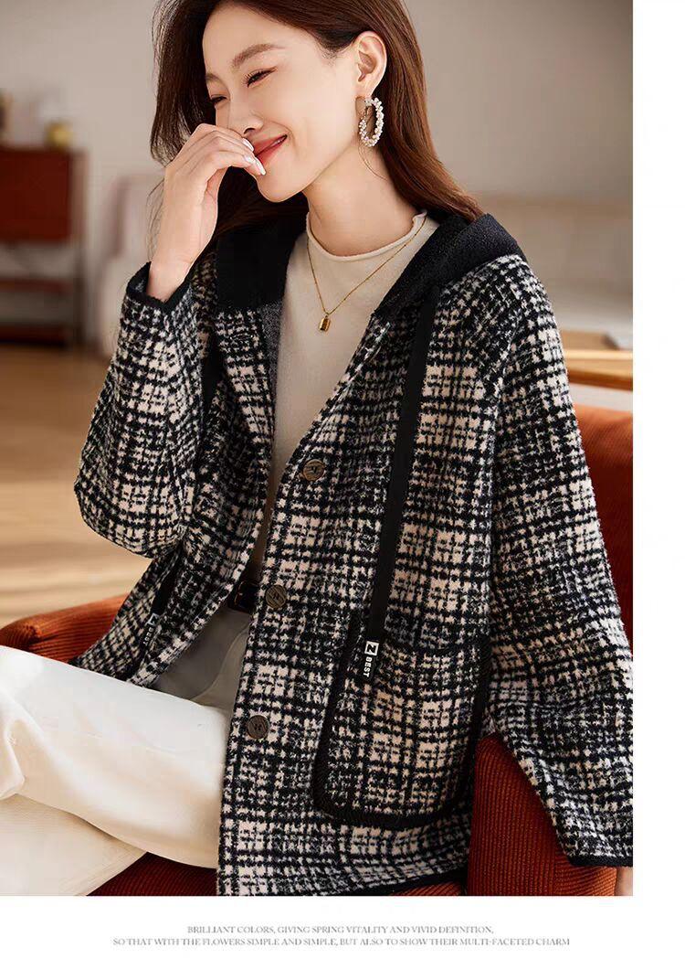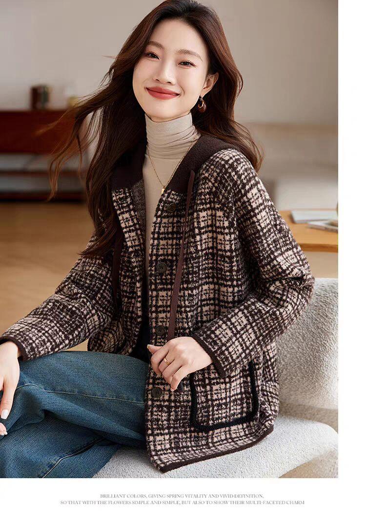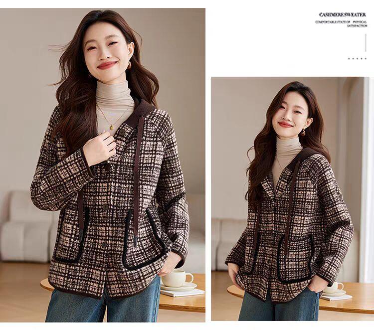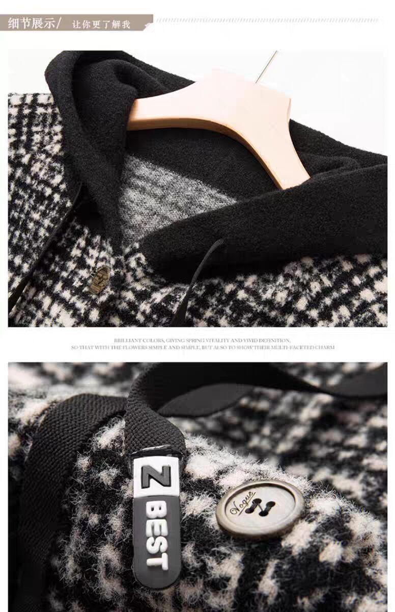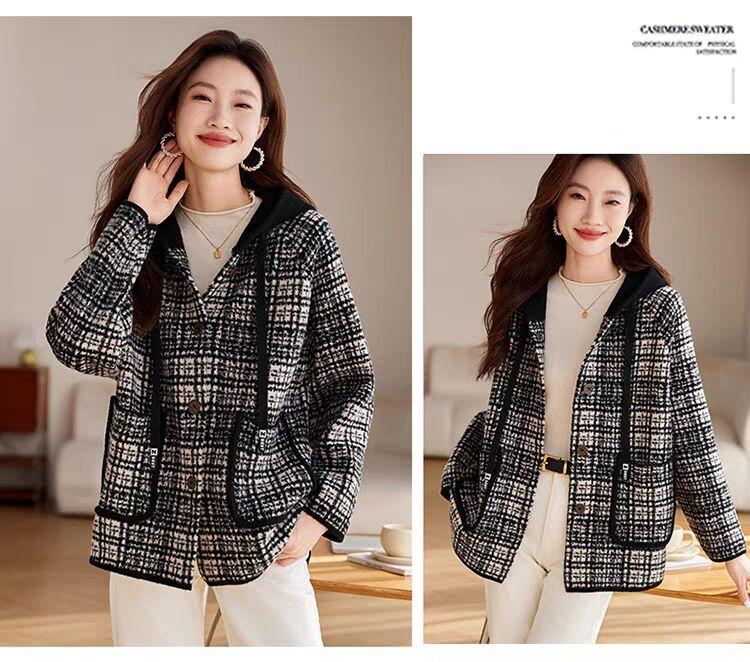 Abrigo de Lana Mujer 2025 Otoño/Invierno Nuevo Casual Suelto con Capucha Talla Grande Temperamento Grueso Abrigo de Pata de Gallo