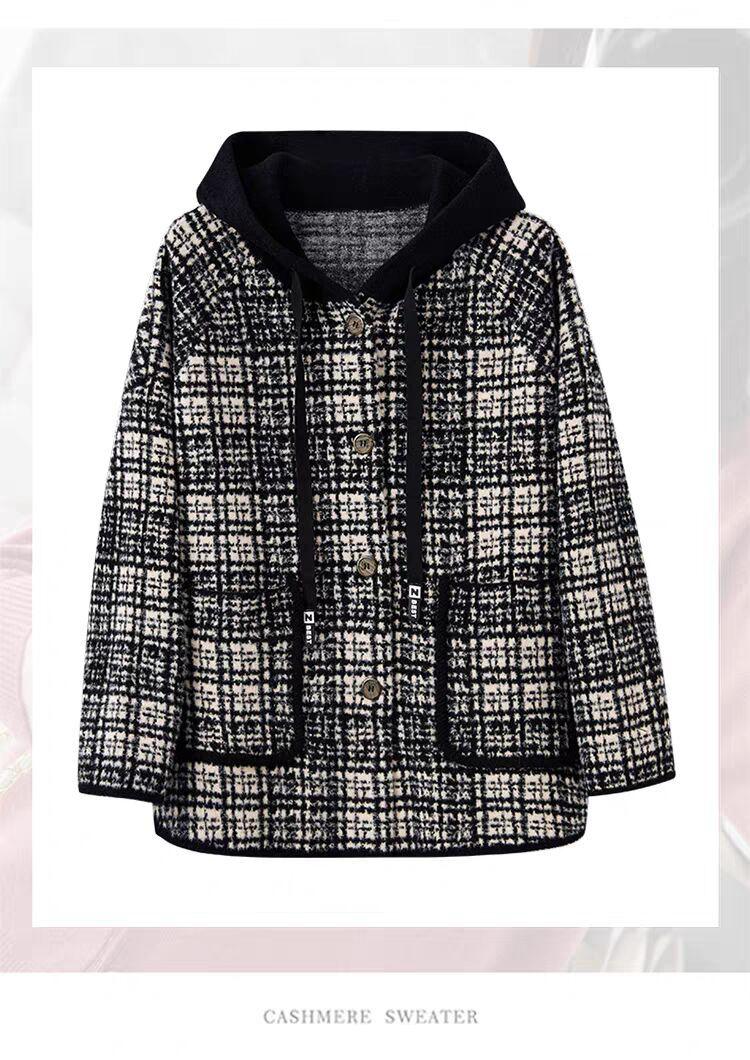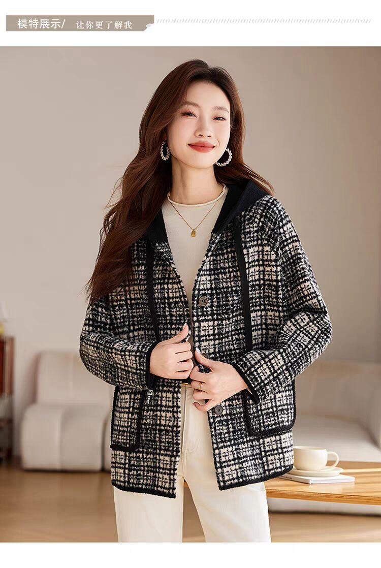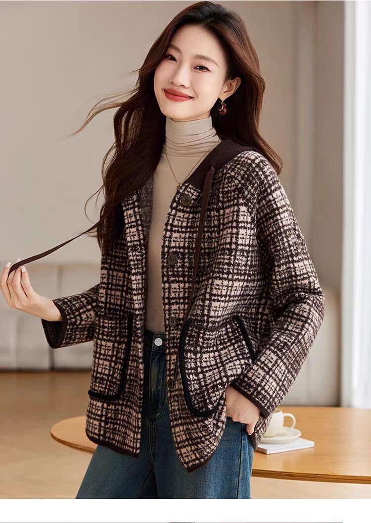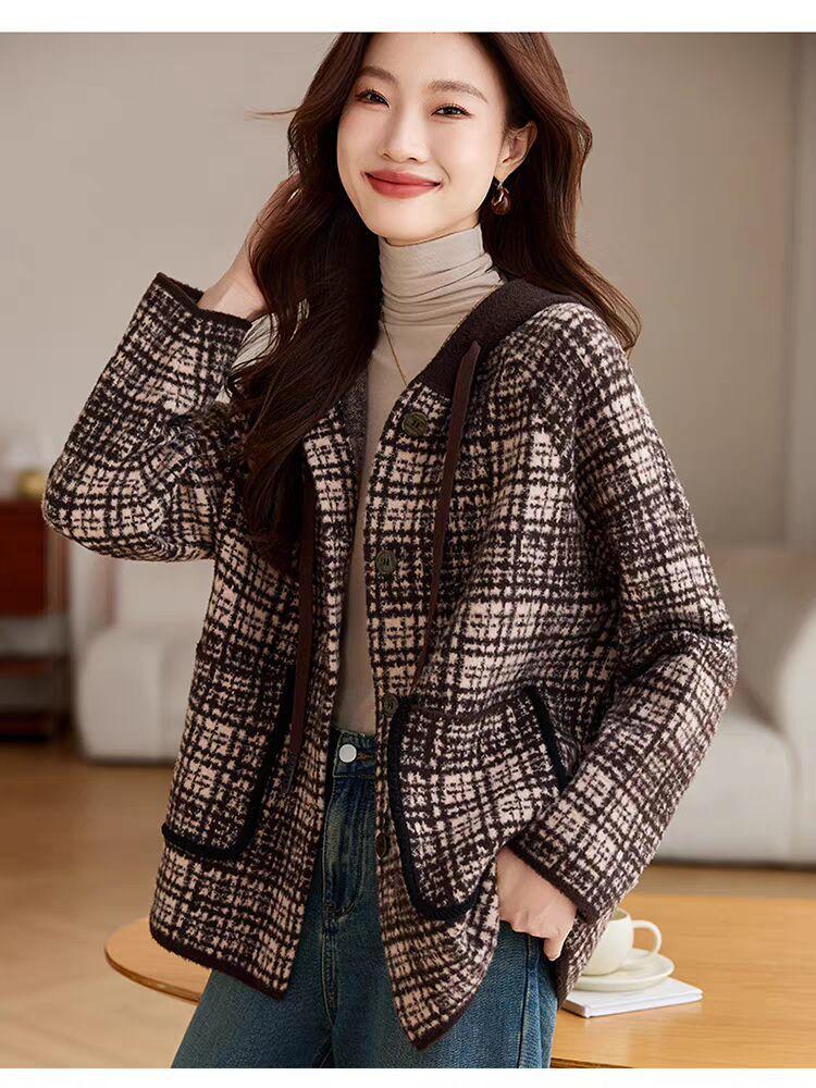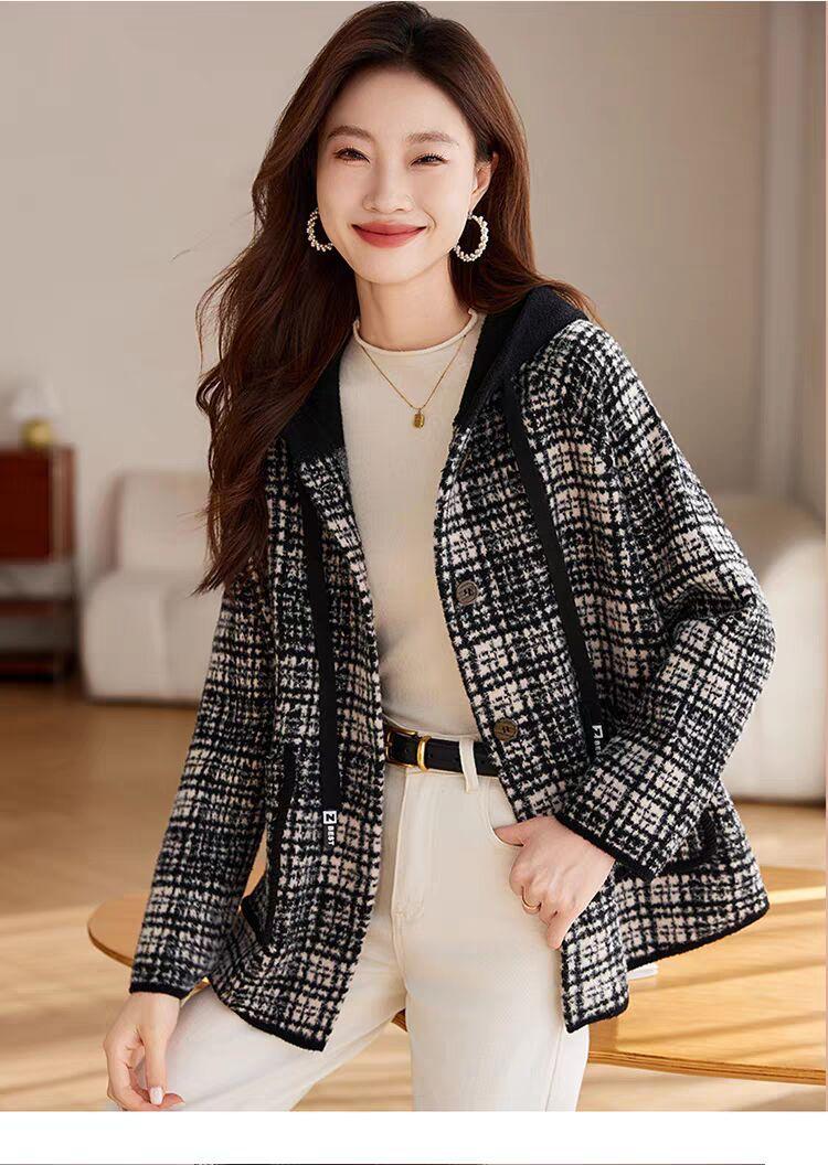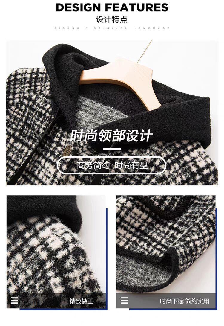 Abrigo de Lana Mujer 2025 Otoño/Invierno Nuevo Casual Suelto con Capucha Talla Grande Temperamento Grueso Abrigo de Pata de Gallo