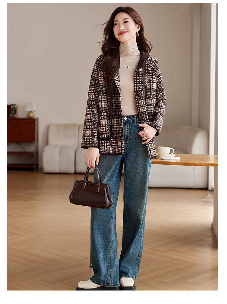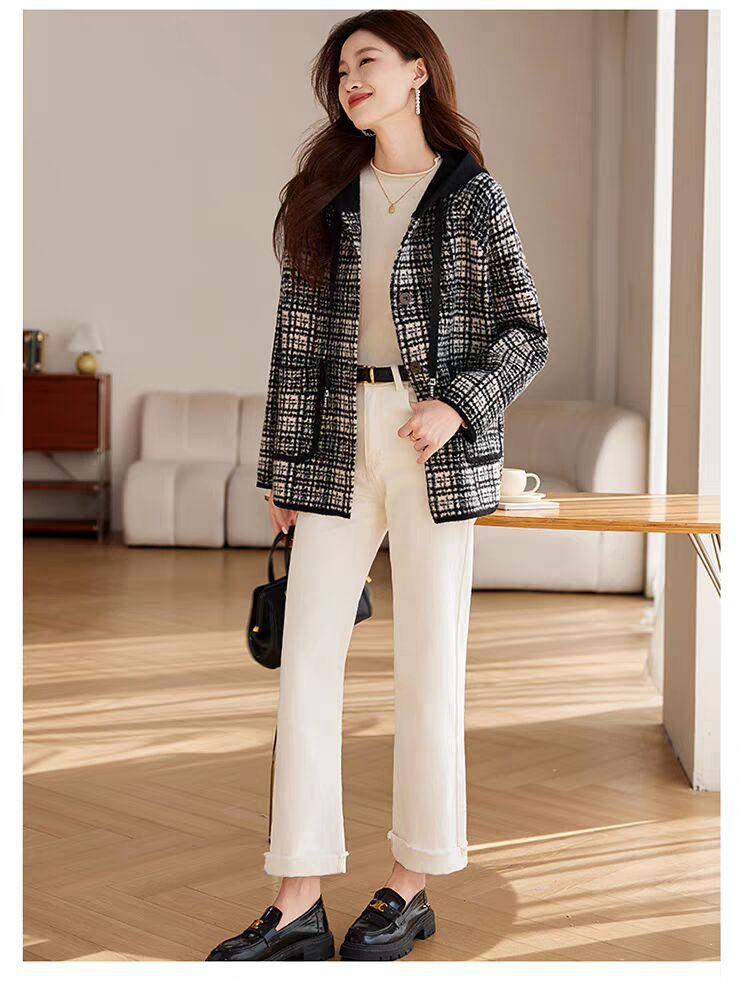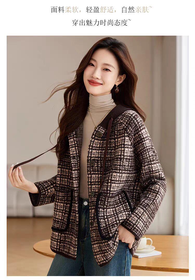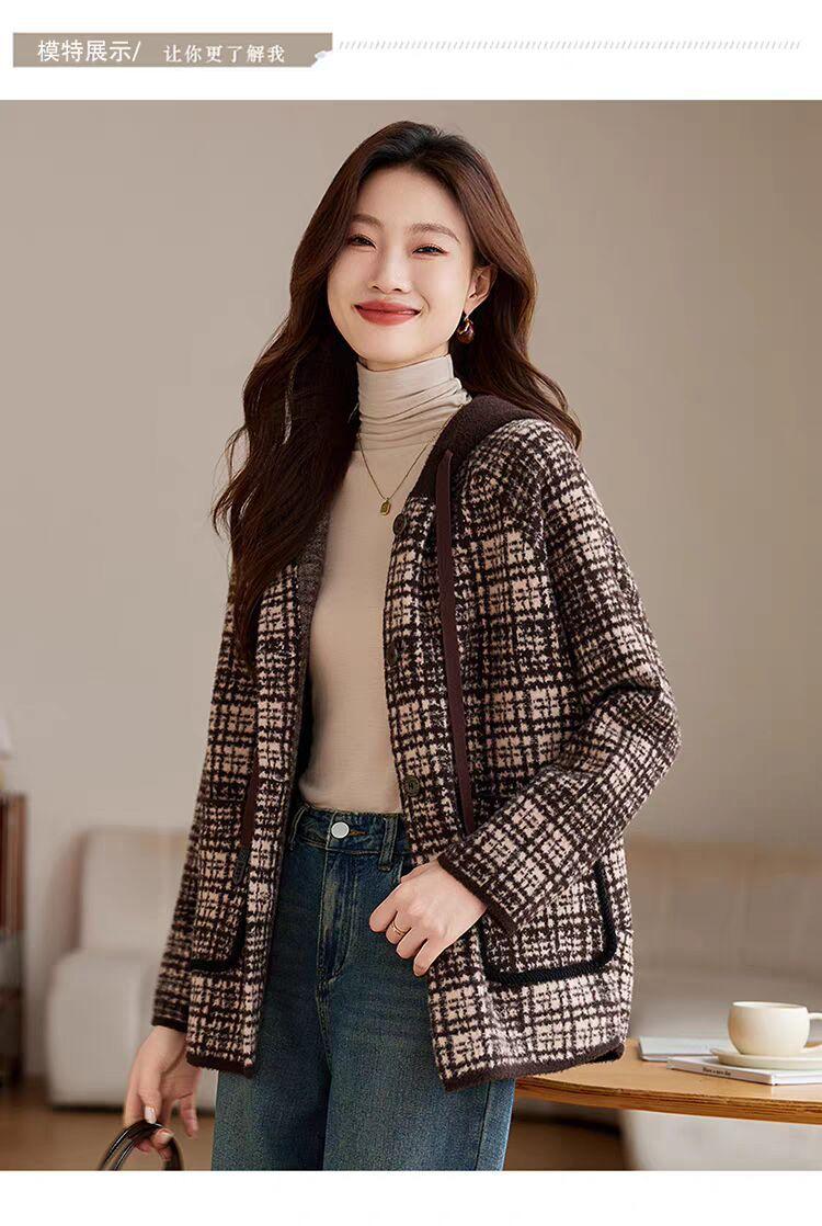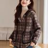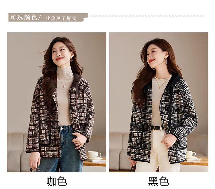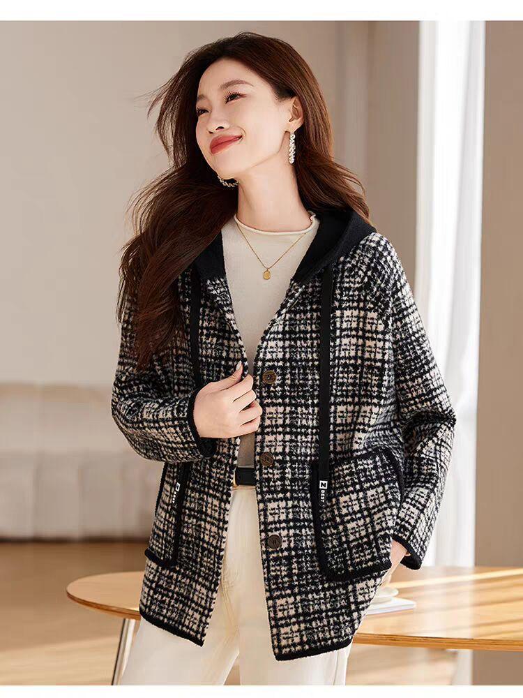 Abrigo de Lana Mujer 2025 Otoño/Invierno Nuevo Casual Suelto con Capucha Talla Grande Temperamento Grueso Abrigo de Pata de Gallo