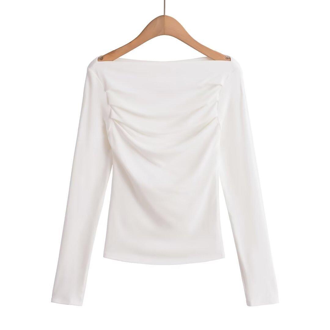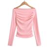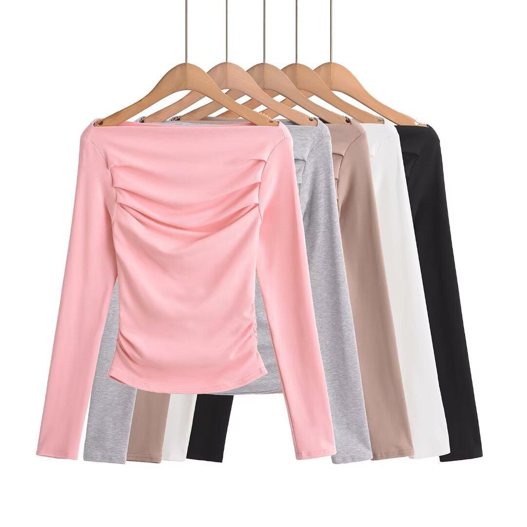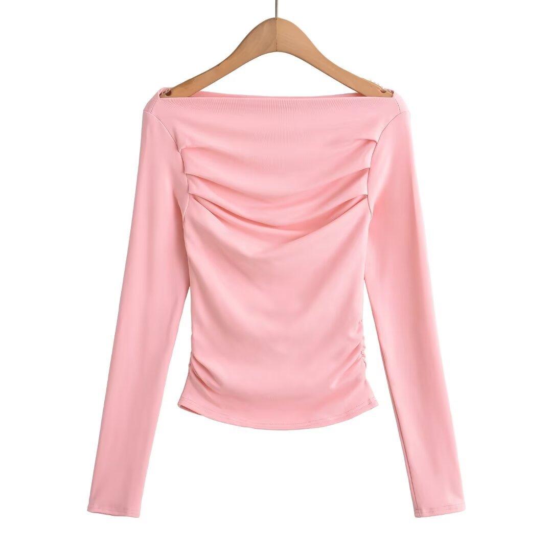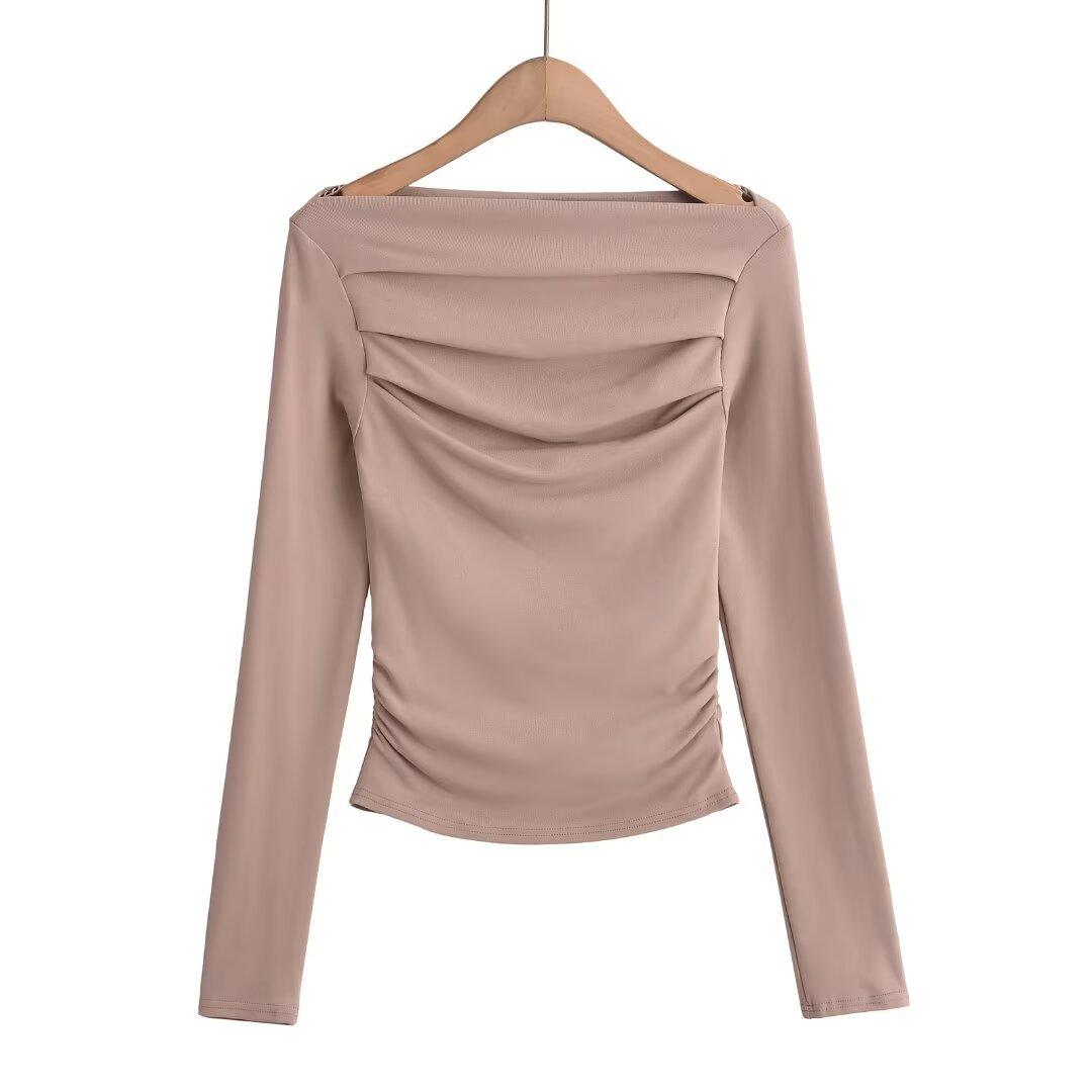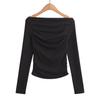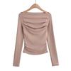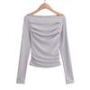 Diseño Puro Dulce y Picante Plisado Ajustado Manga Larga Camiseta Niche para Mujer Entallada Femenina Top Corto