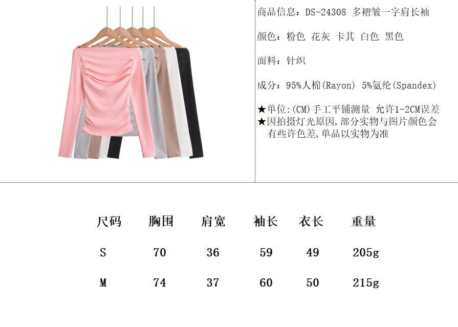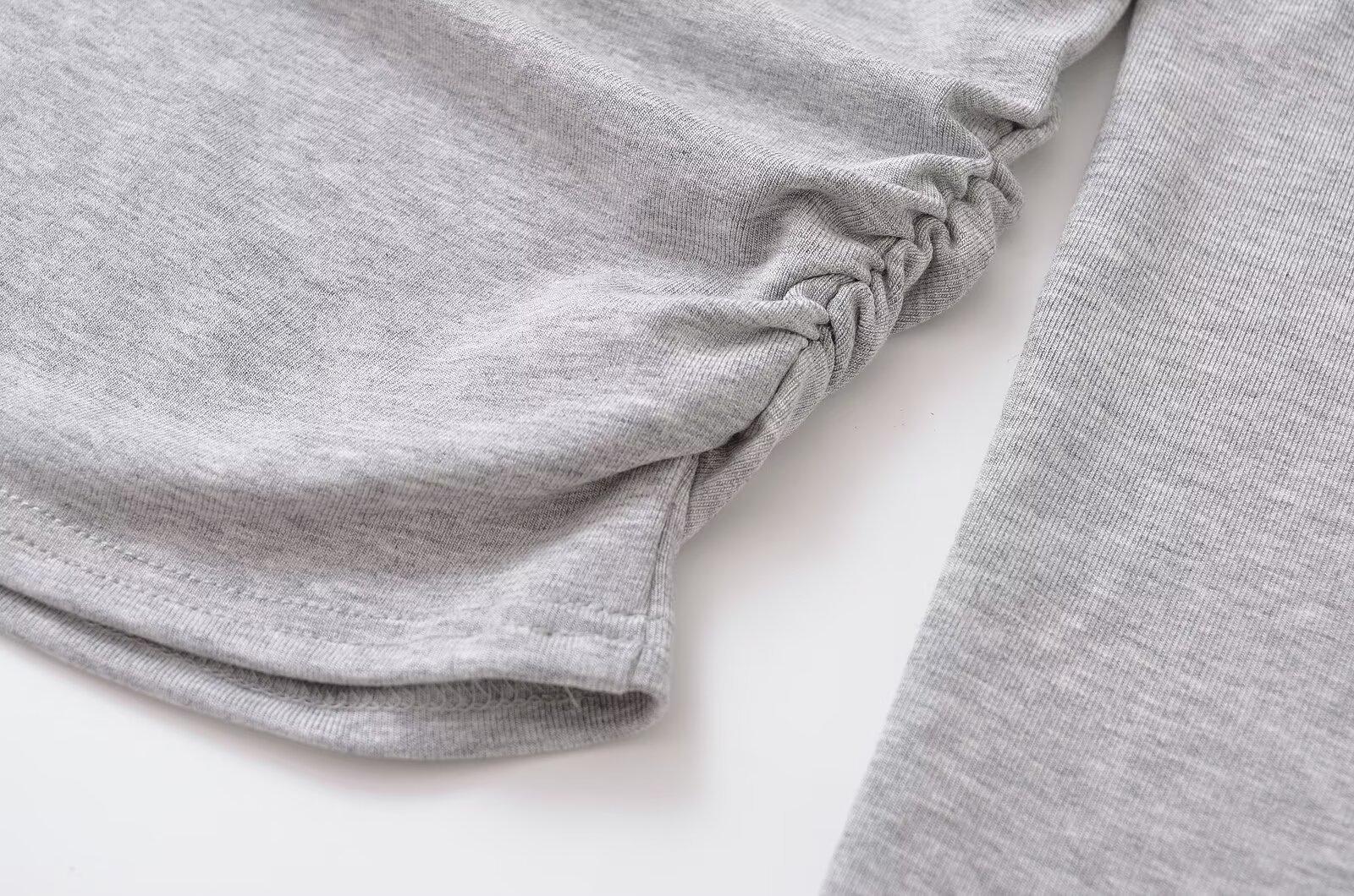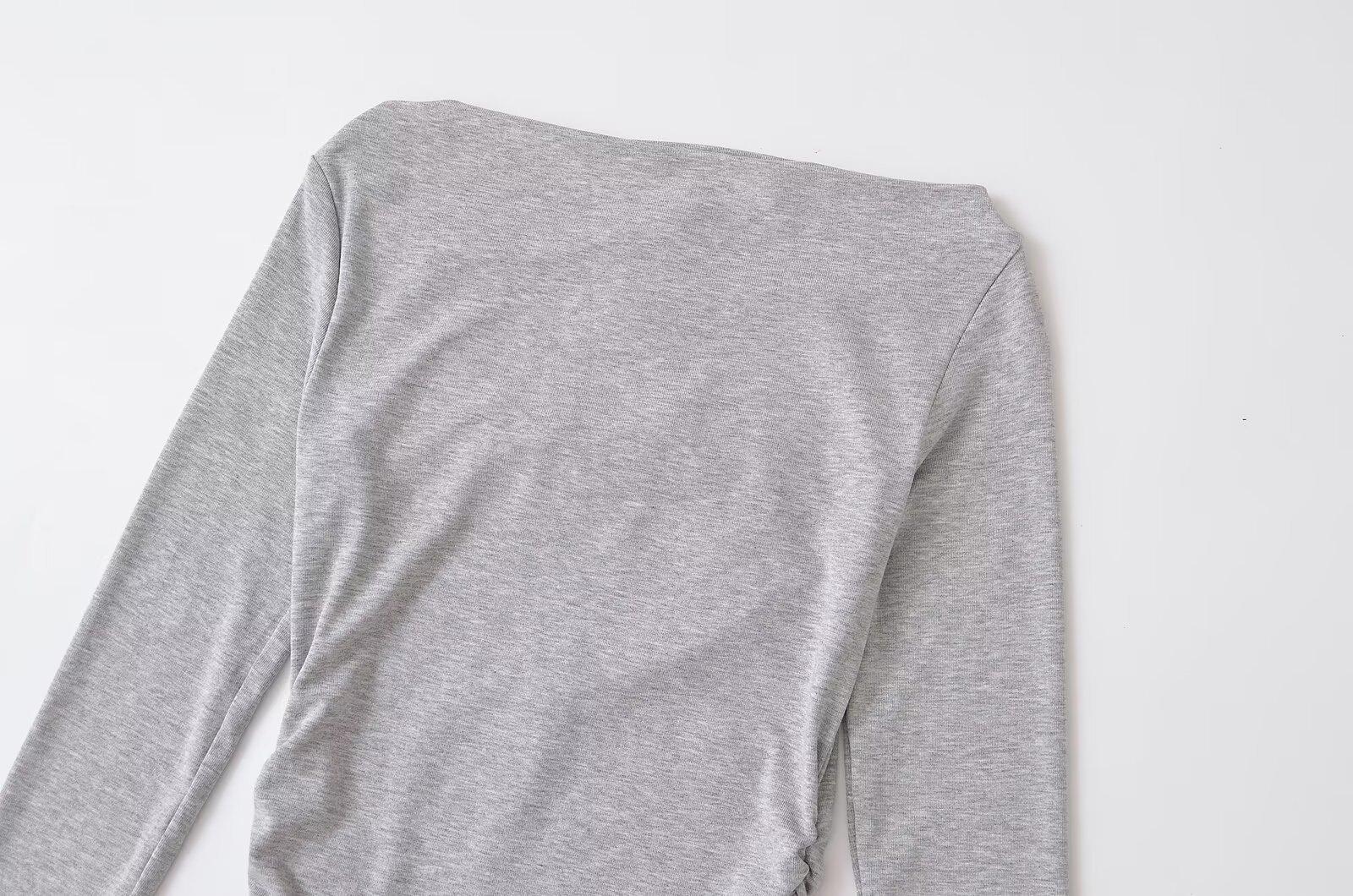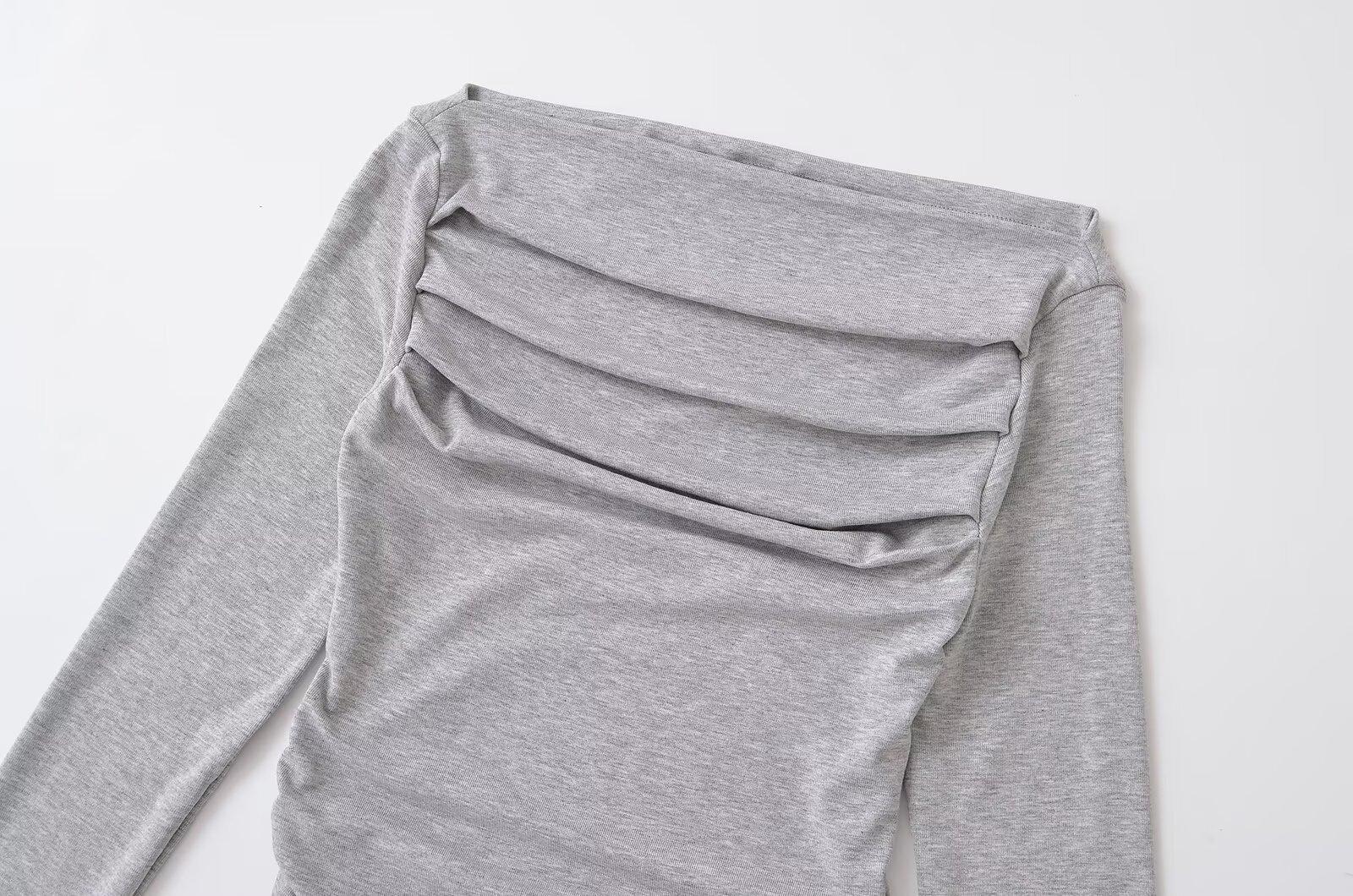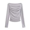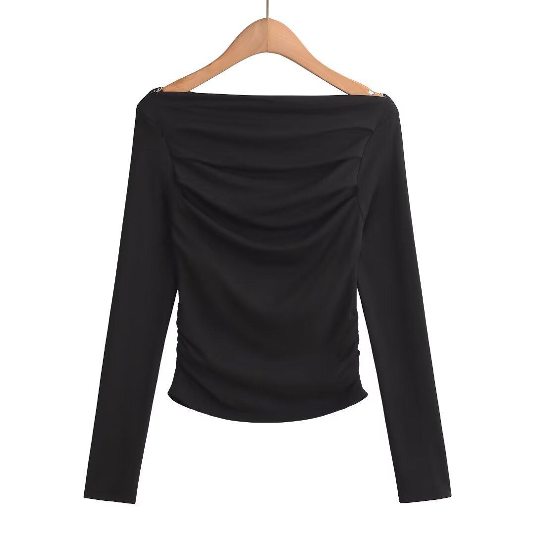 Diseño Puro Dulce y Picante Plisado Ajustado Manga Larga Camiseta Niche para Mujer Entallada Femenina Top Corto