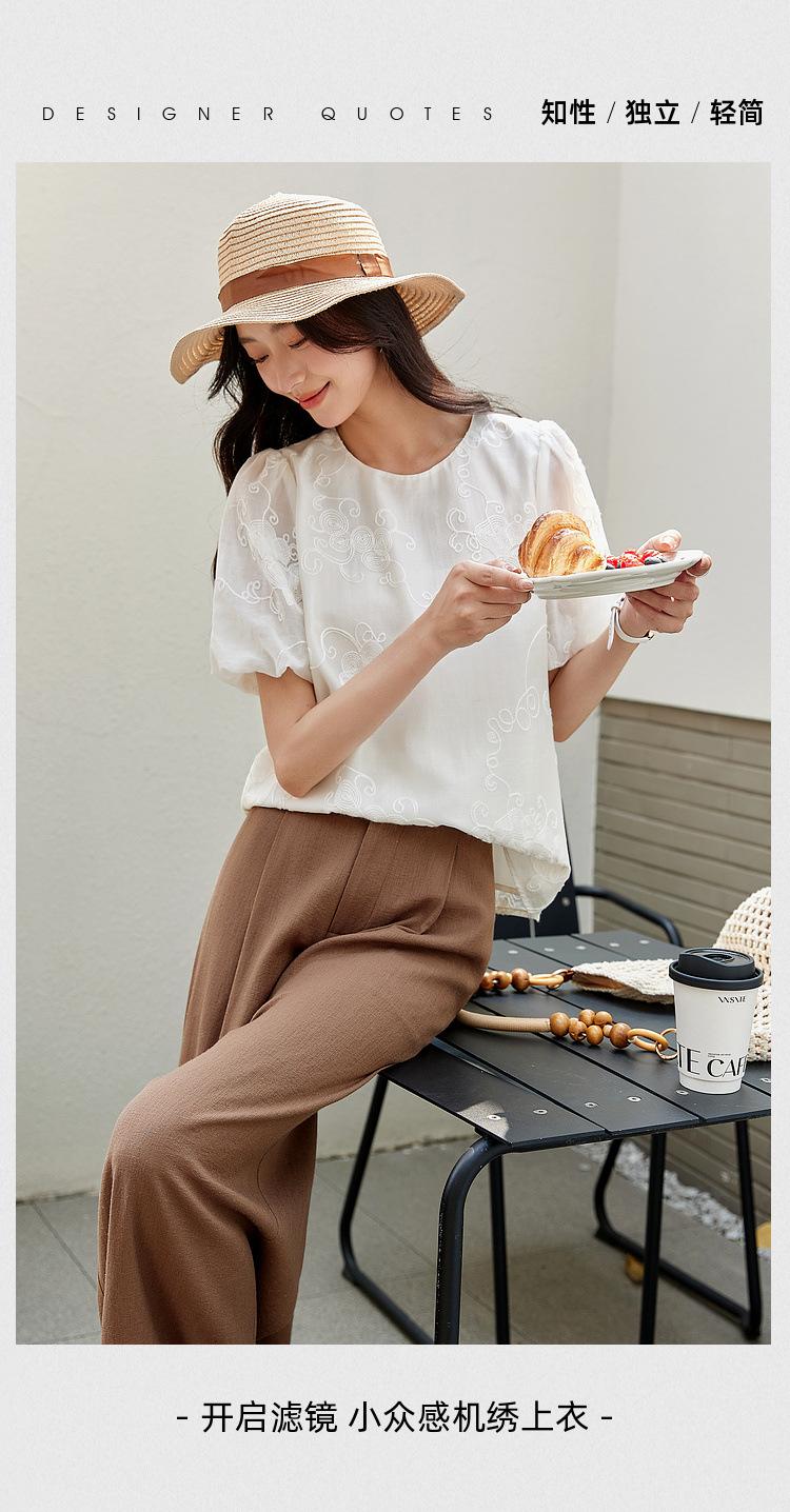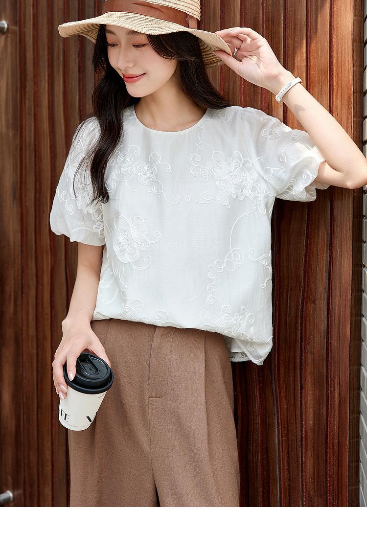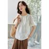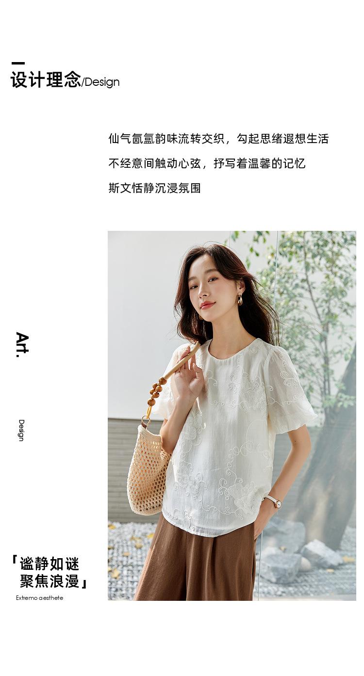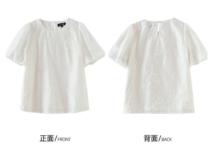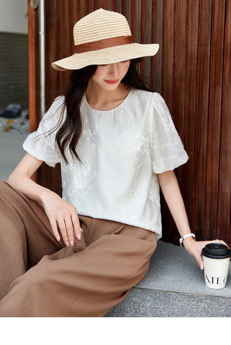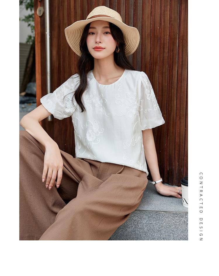 Zhen Xi Nuevo Top Bordado de Alta Calidad Mezcla Tencel Fresco Camiseta de Manga Corta Holgada con Cuello Redondo para Mujer SQ760