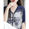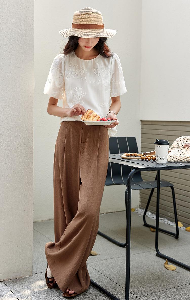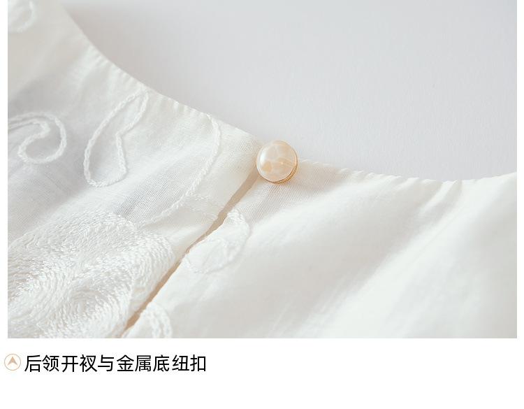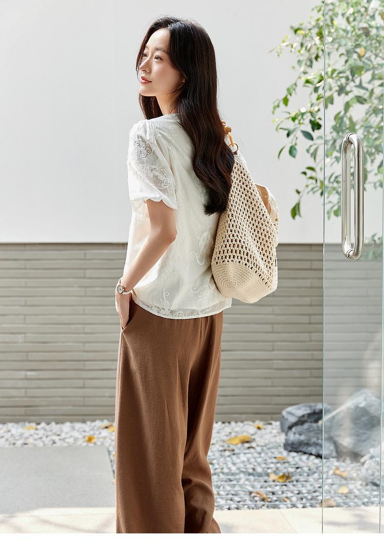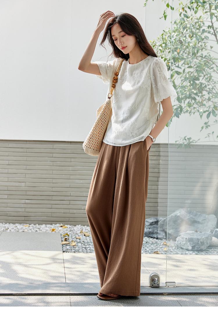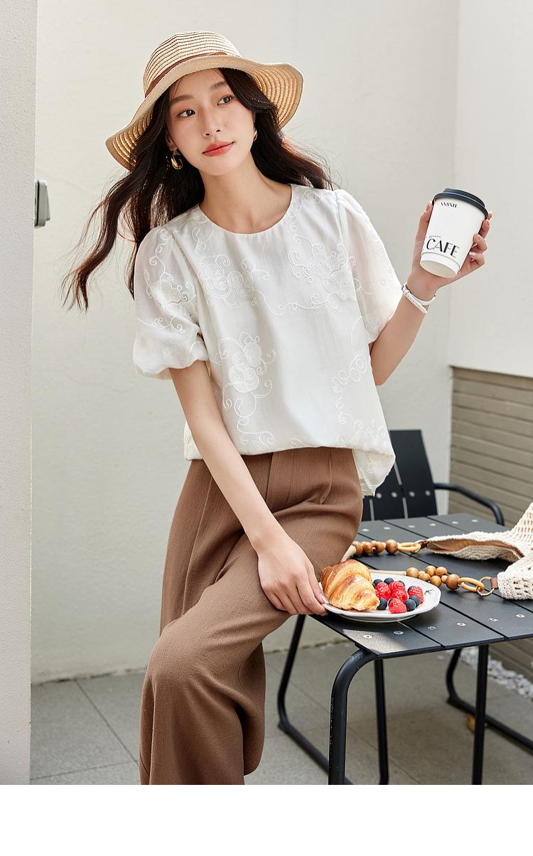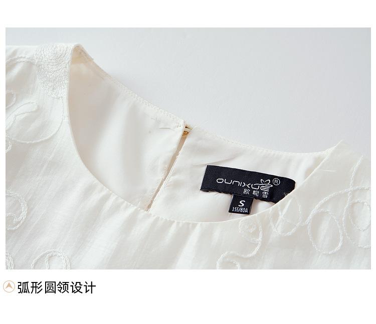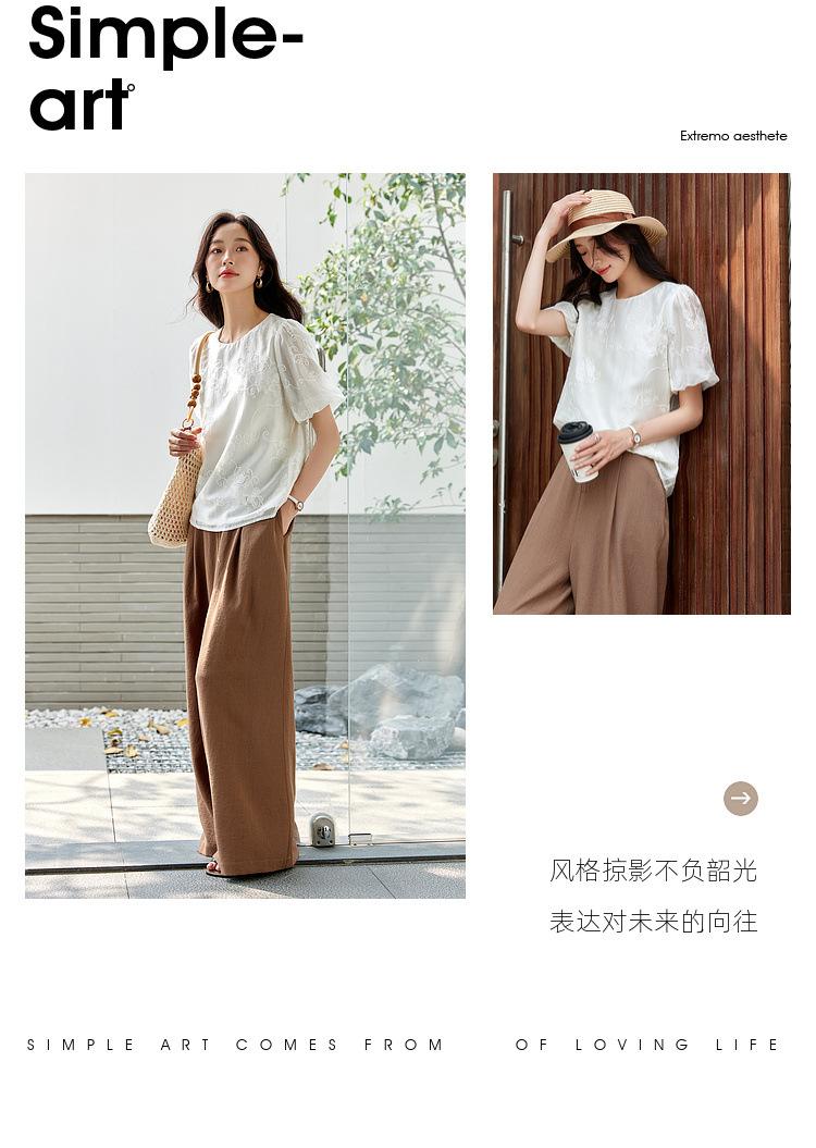 Zhen Xi Nuevo Top Bordado de Alta Calidad Mezcla Tencel Fresco Camiseta de Manga Corta Holgada con Cuello Redondo para Mujer SQ760
