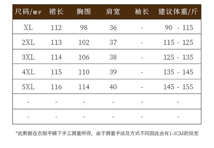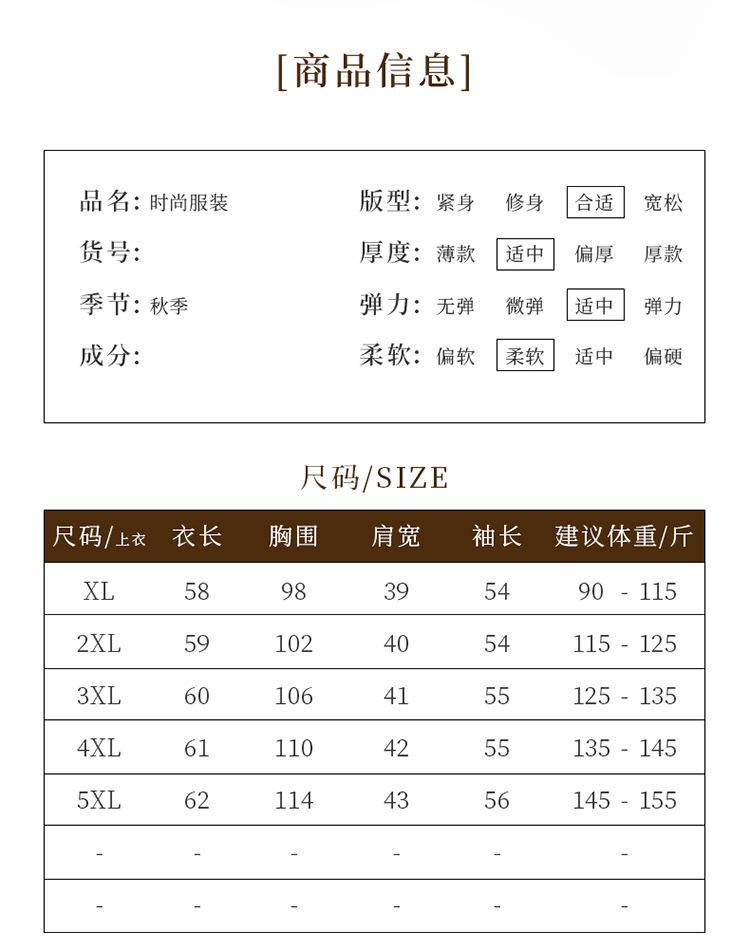 XL (90-115 catties), 2XL (115-125 catties), 3XL (125-135 catties), 4XL (135-145 catties), 5XL (145-155 catties)