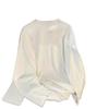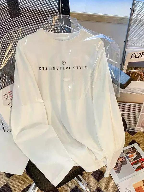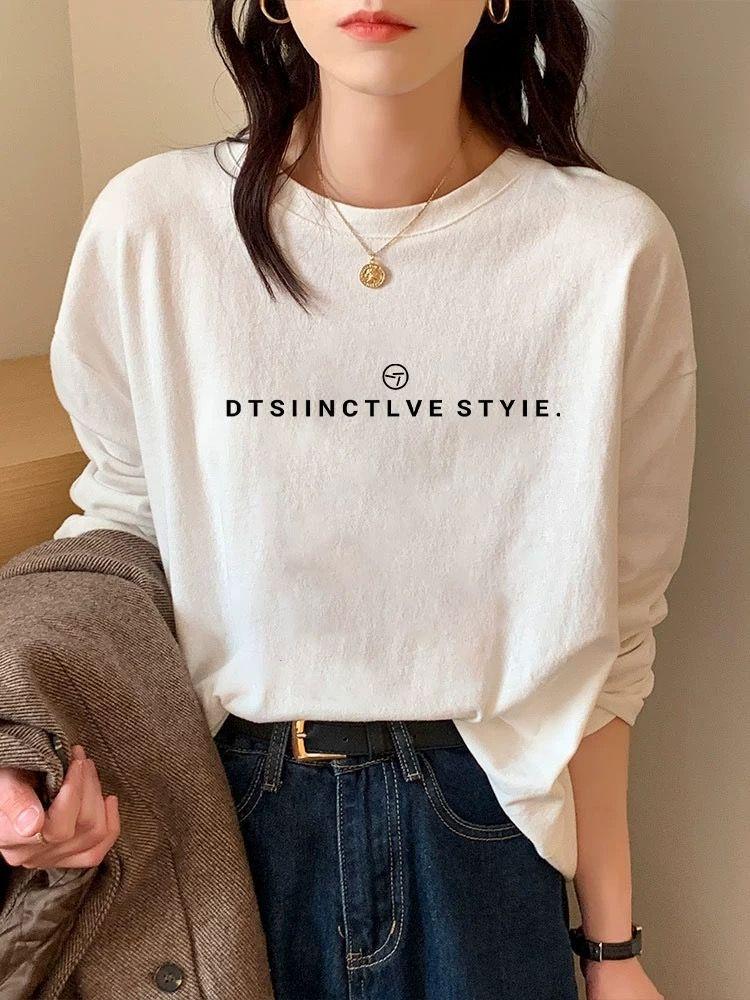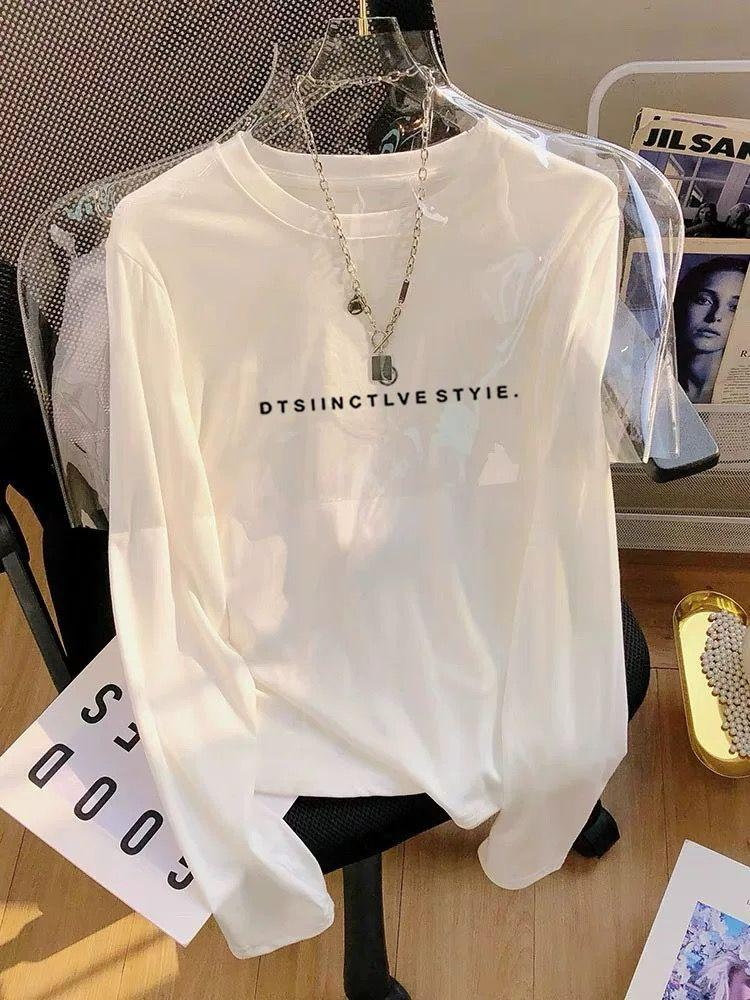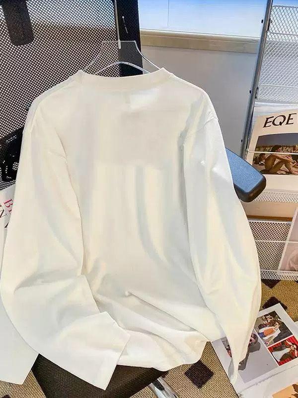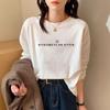 2025 nuevo estilo hombro recto algodón puro cuello redondo manga larga camiseta mujer moda versátil reductor de edad adelgazante top blanco primavera y otoño