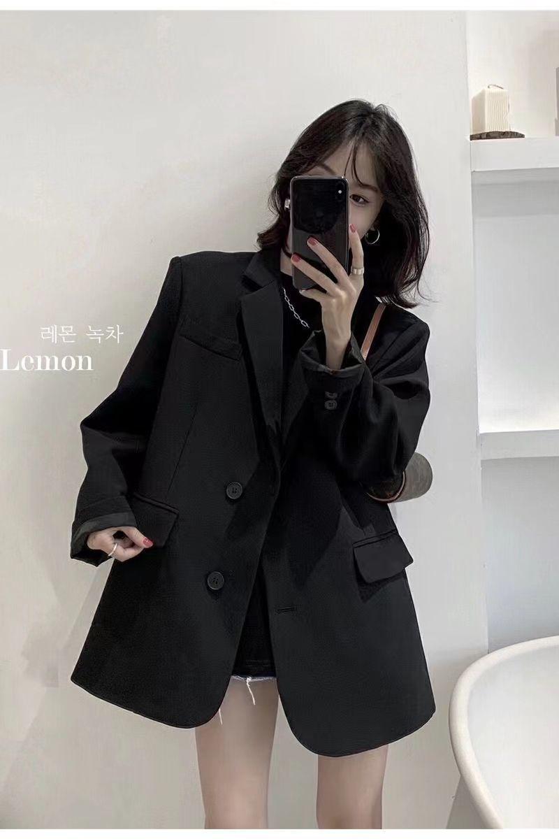 Blazer Negro Top de Traje para Mujer Casual Elegante 2024 Primavera y Otoño Nuevo Estilo Coreano Pequeño y de Alta Gama