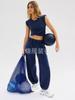 Conjunto Casual de Duas Peças Feminino Europeu e Americano Cor Sólida Top Curto sem Mangas Calças de Moletom com Bolsos Roupa Esportiva