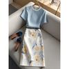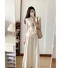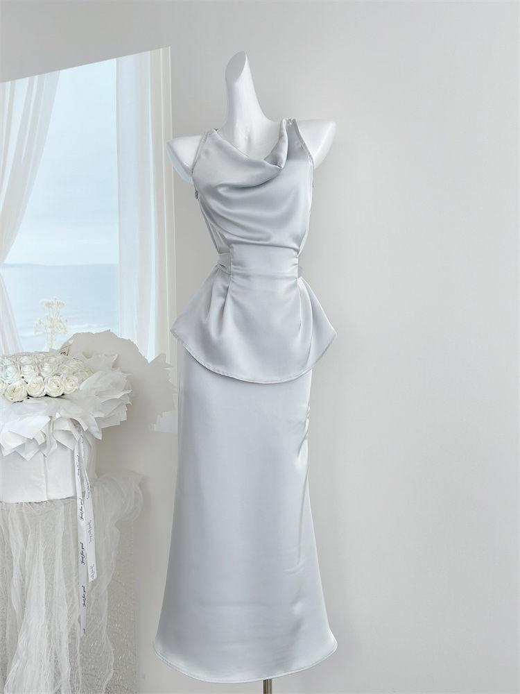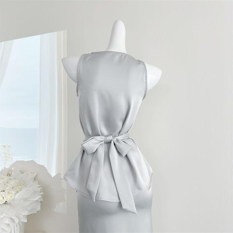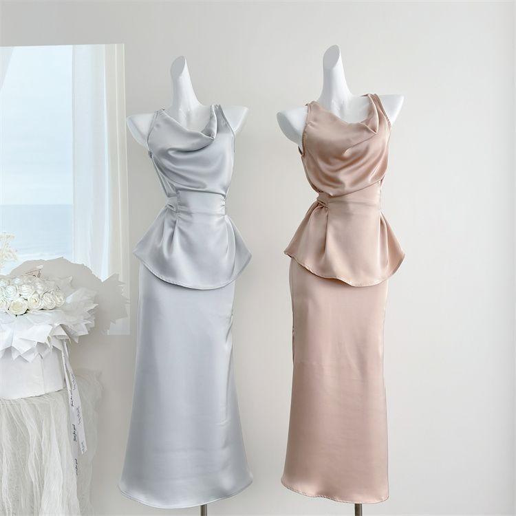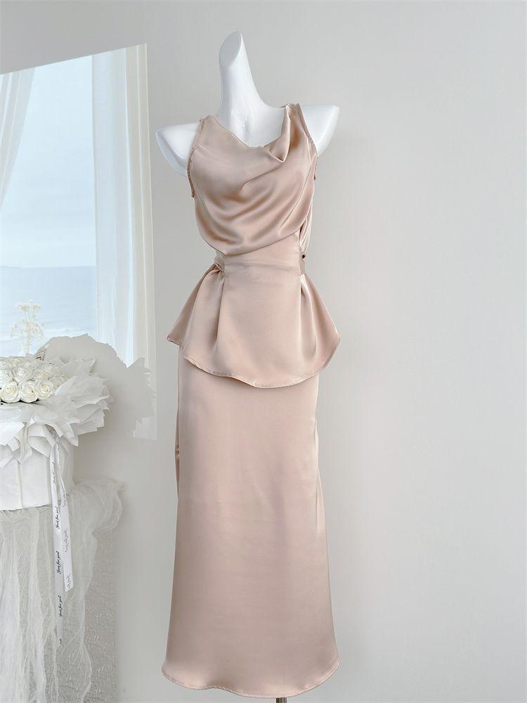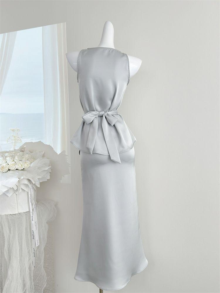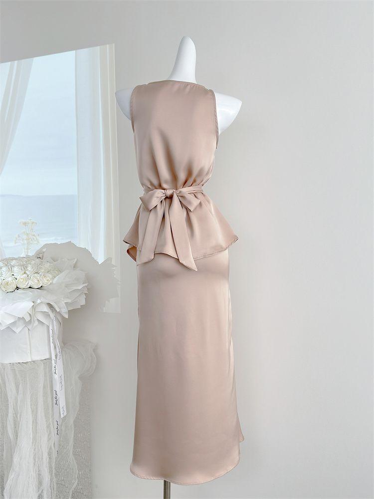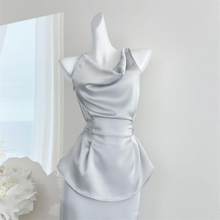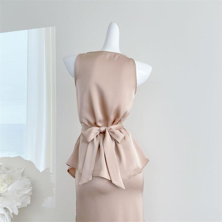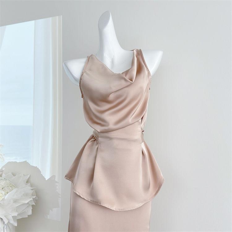 Verano 2025 Medio cocido Estilo francés Lujo ligero Elegante Cuello oscilante Top sin mangas Traje de falda ajustado adelgazante para mujer Moderno