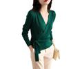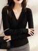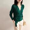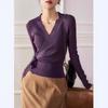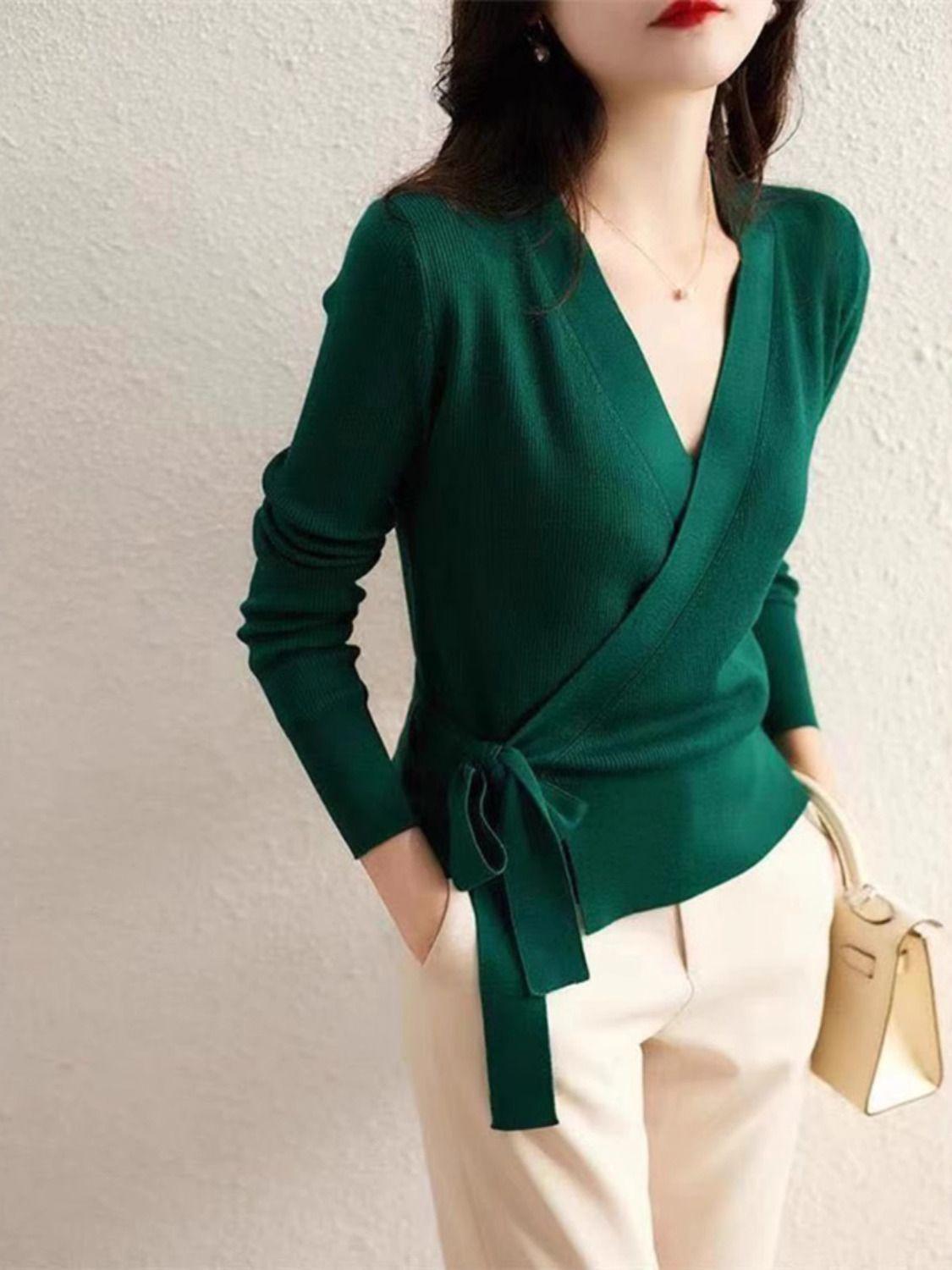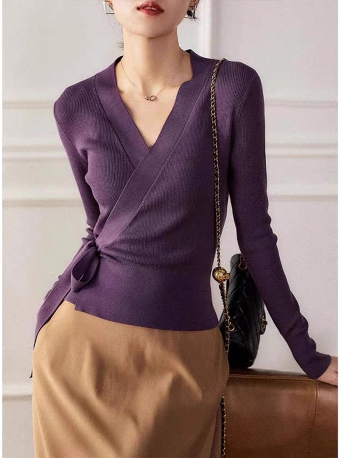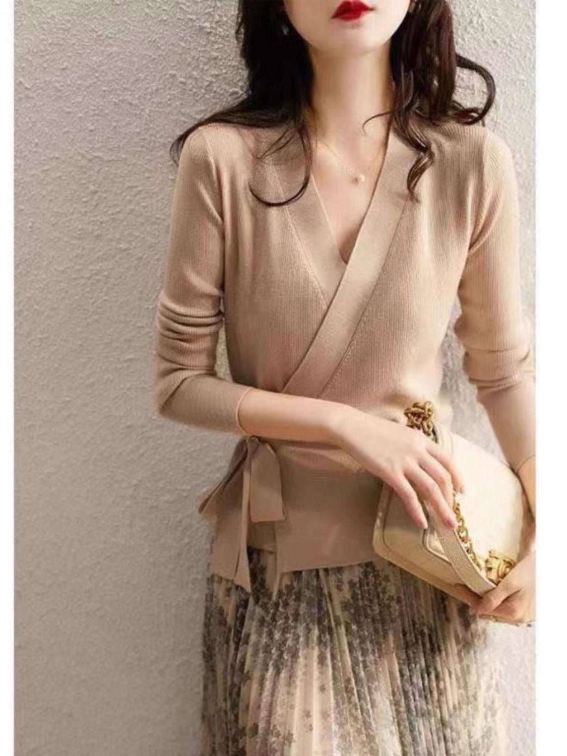 Suéter Irregular de Punto Cruzado Nuevo para Otoño Temprano para Mujer, Versión Coreana Elegante, Camiseta Base Versátil Adelgazante, Top con Cuello en V