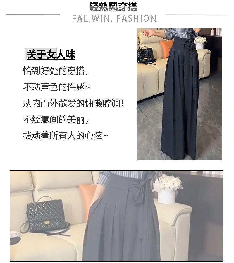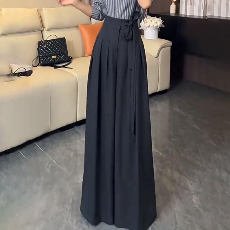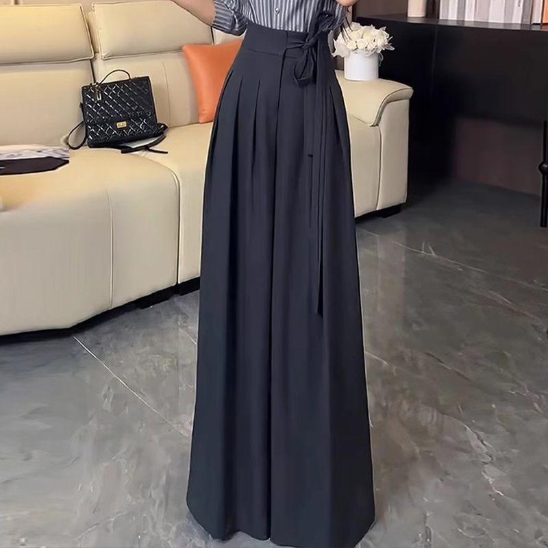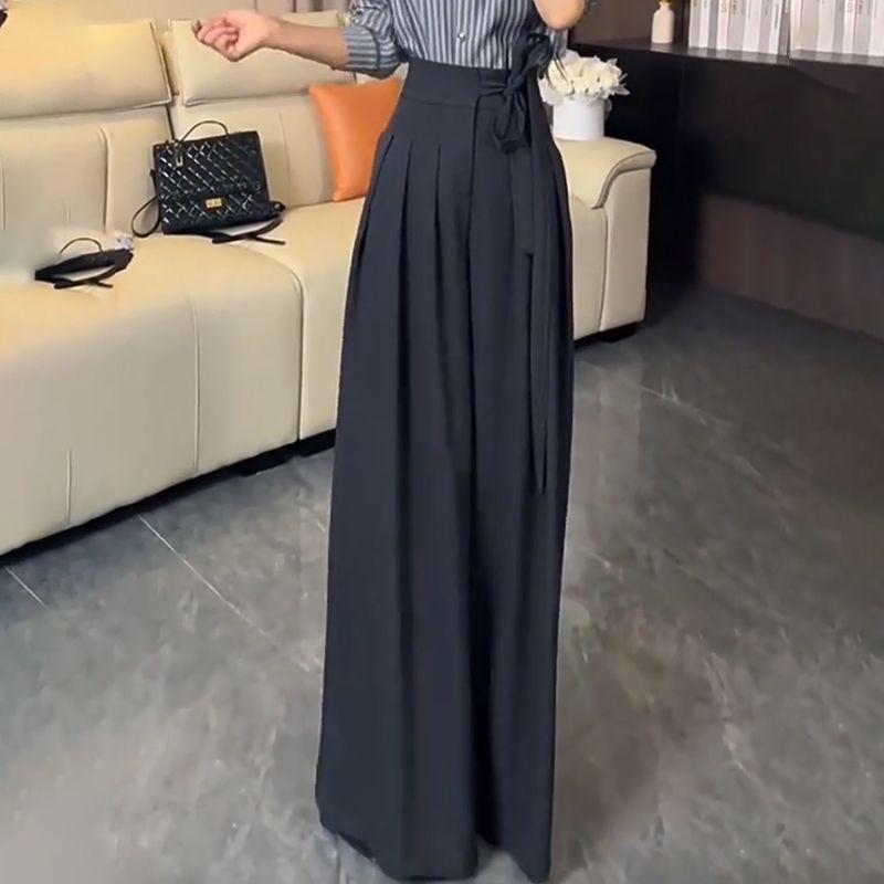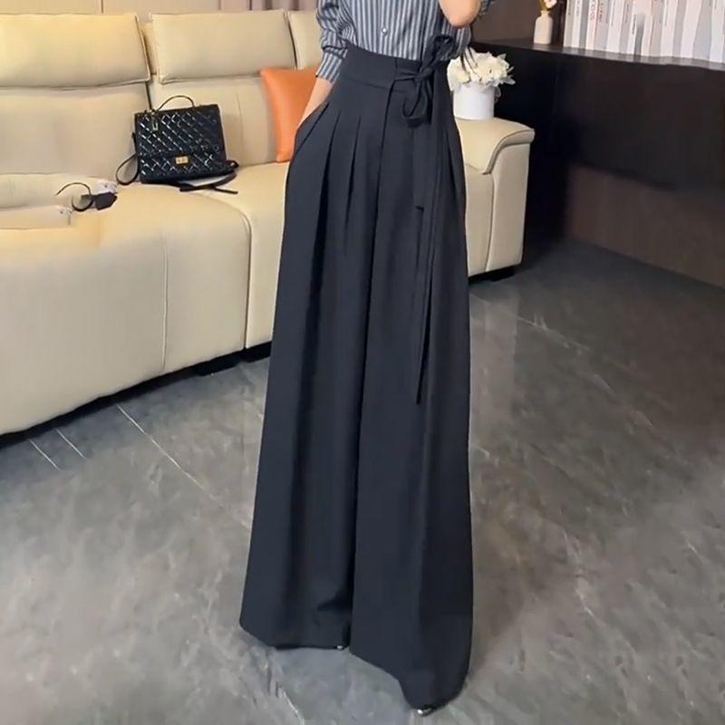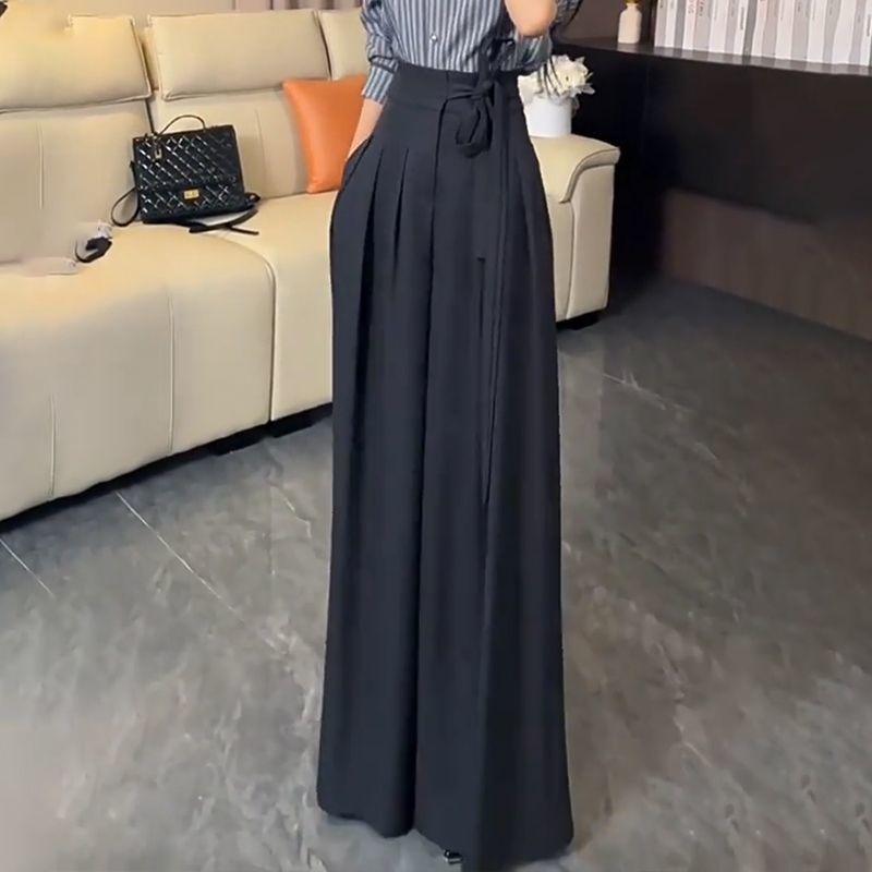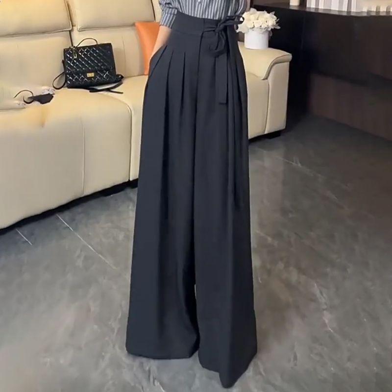 Pantalones de traje para mujer primavera y otoño 2025 nuevos pantalones casuales de cintura alta pantalones rectos con lazo largo hasta el suelo drapeado pantalones de pierna ancha
