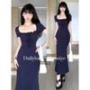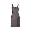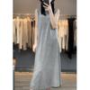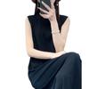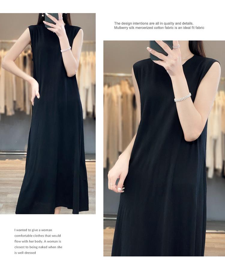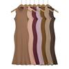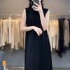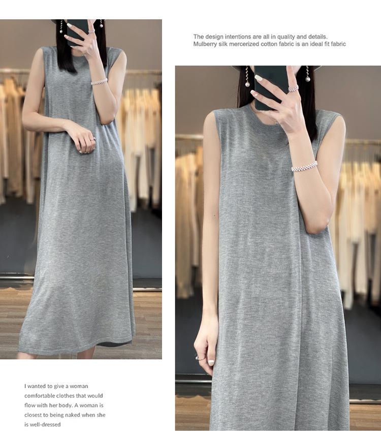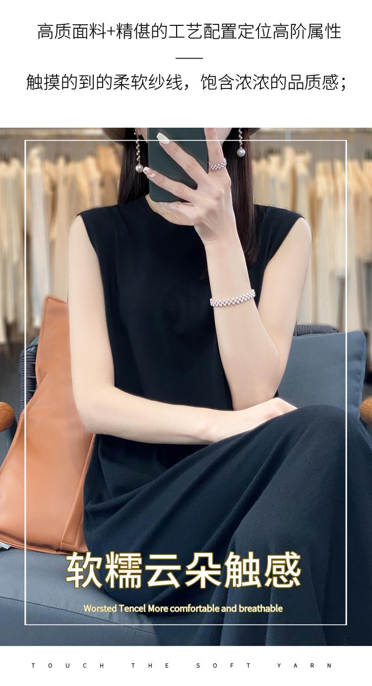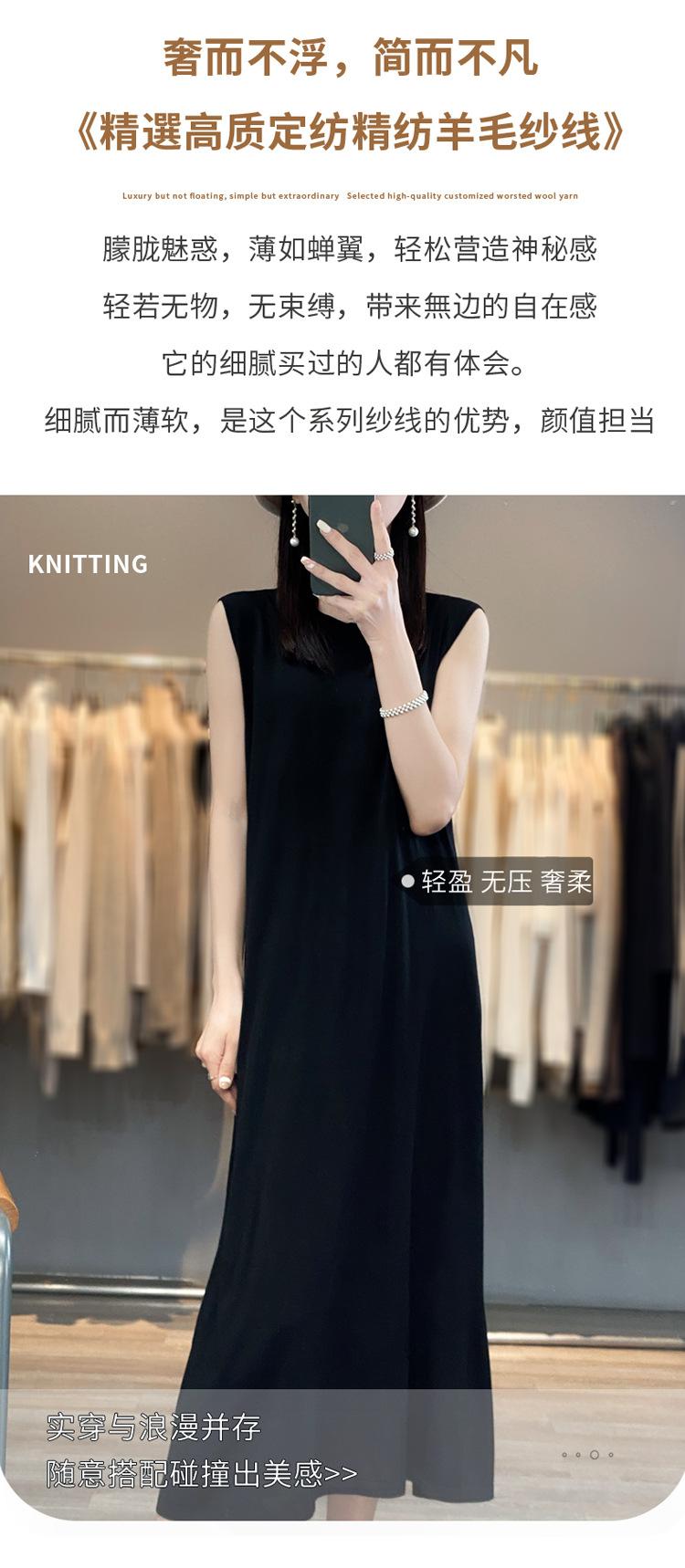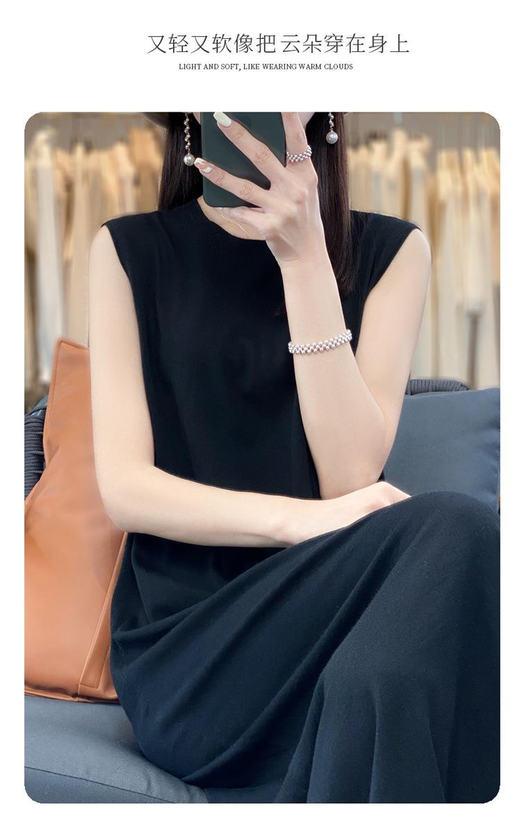 Vestido largo de lana peinada primavera 2024 color sólido elegante ajustado sin mangas holgado cuello redondo