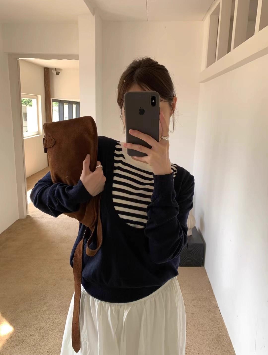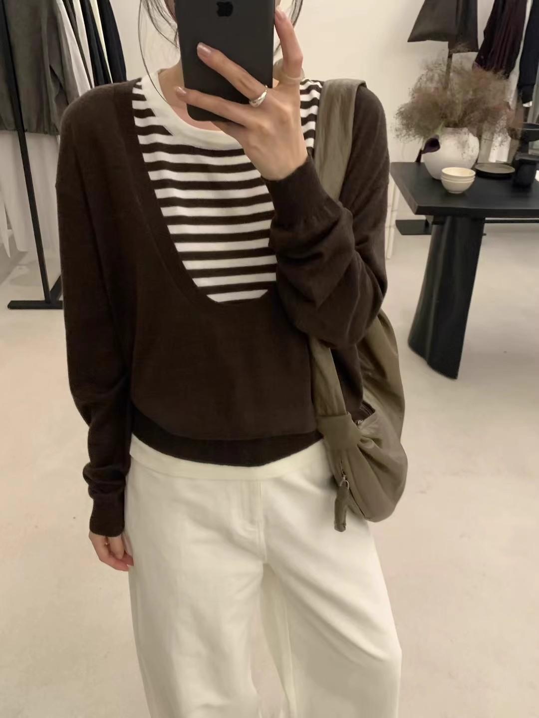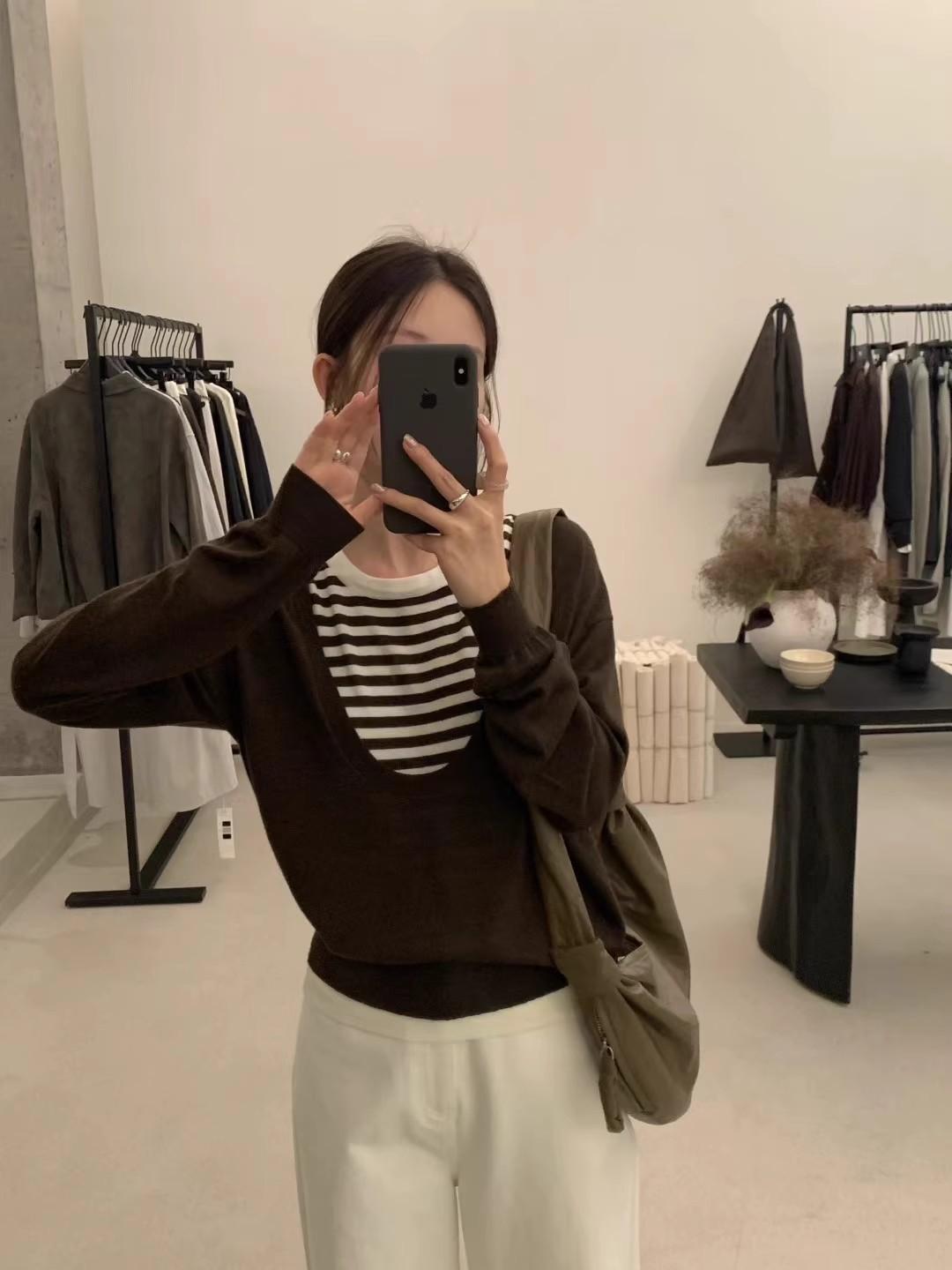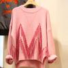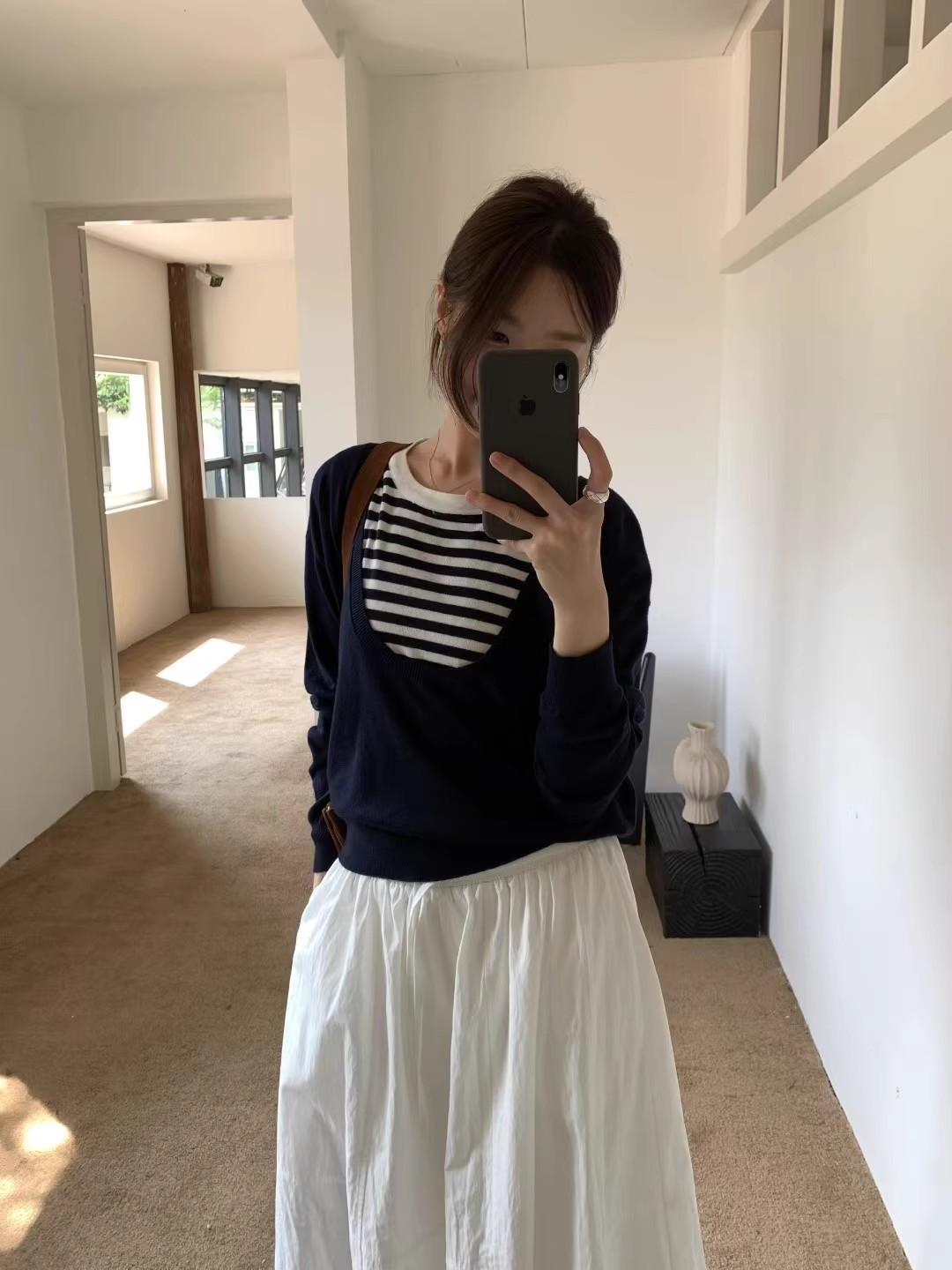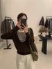 2025 Otoño/Invierno Nuevo Estilo Coreano Suéter Tejido Holgado Casual de Manga Larga para Mujer Jersey de Punto de Dos Piezas Falsas