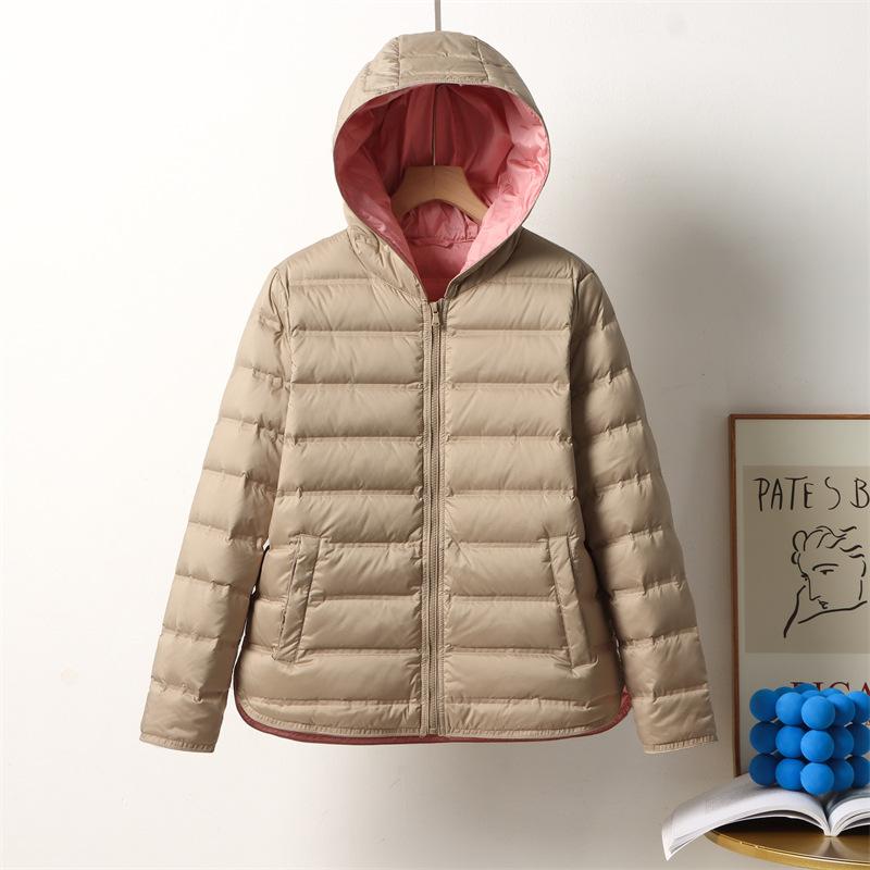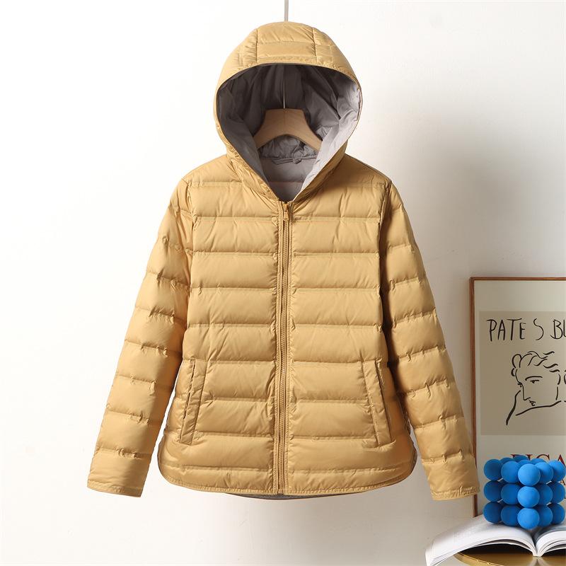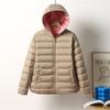 2025 nueva chamarra de plumón ligera para mujer corta con capucha sin costuras para mamá ligera moderna casual para otoño e invierno