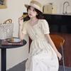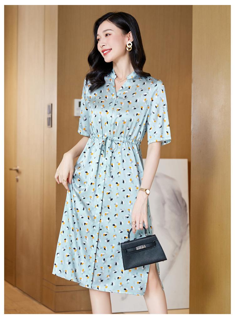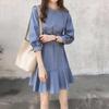 Verano Nuevo Estilo Cuello en V Cordones Moda Estilo Coreano Elegante Vestido de Seda Falda por Encima de la Rodilla