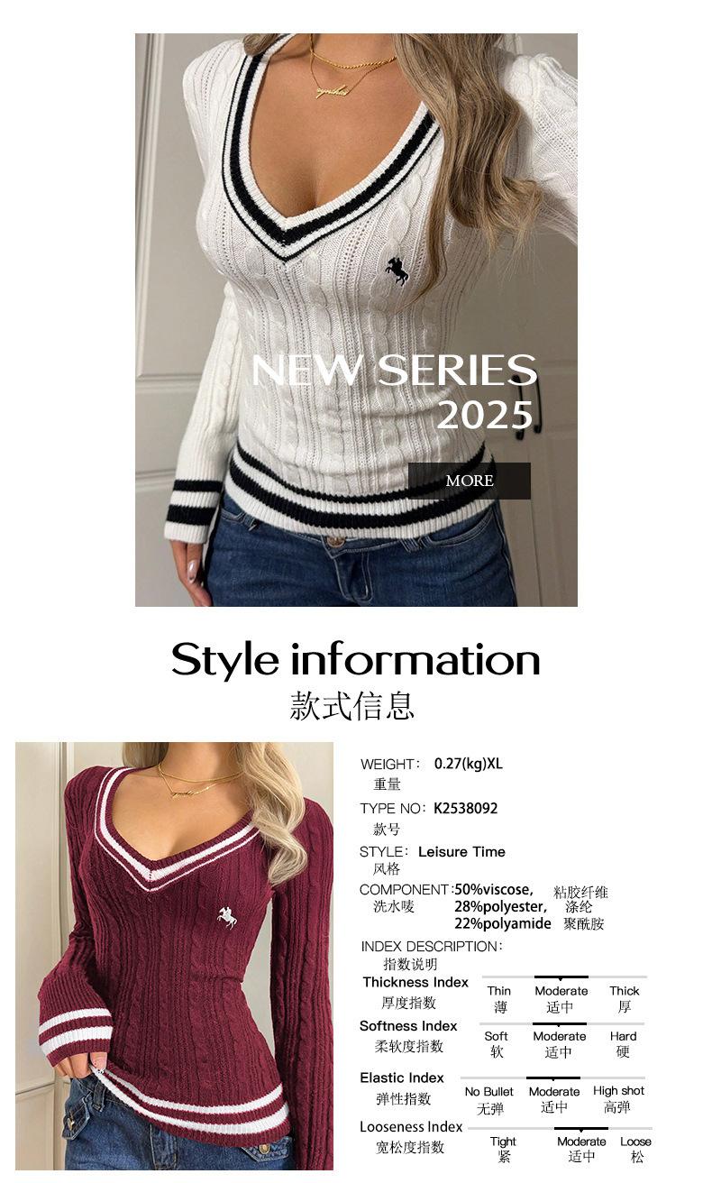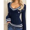 Moda Transfronteriza Europea y Americana Estilo Simple Cuello en V Suéter de Manga Larga Tejido de Punto para Mujer Otoño/Invierno 2025 Venta al por Mayor Amazon
