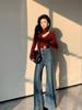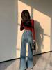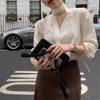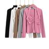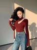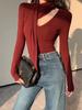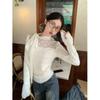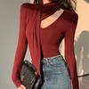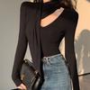 Playera Francesa Sexy de Diseño con Cinta de Manga Larga Adelgazante y Favorecedora de la Figura de Alta Gama Nueva Primavera y Otoño Capa Base Calada Top de Chica Hot