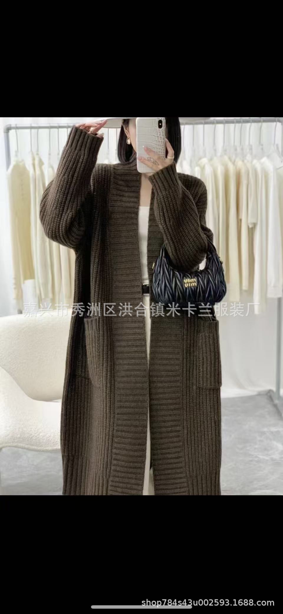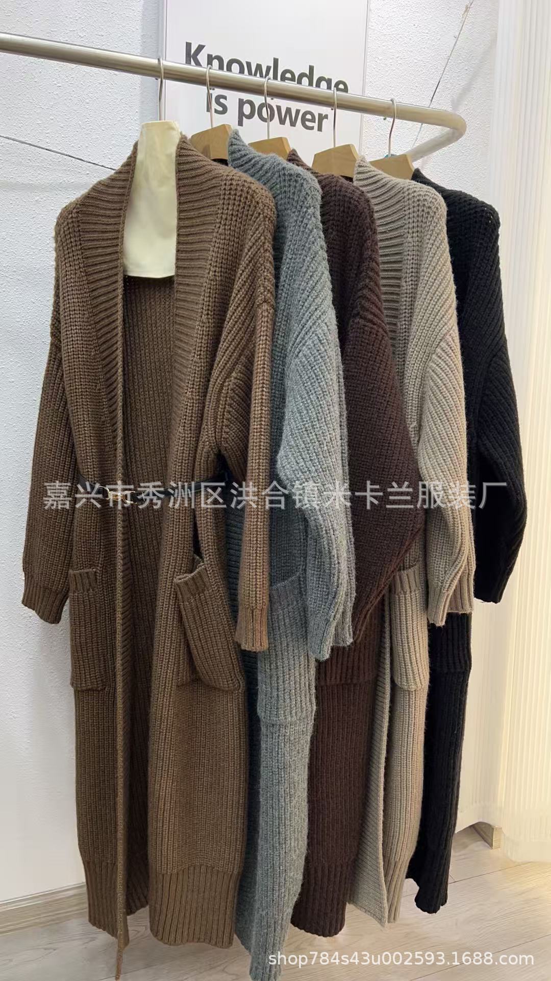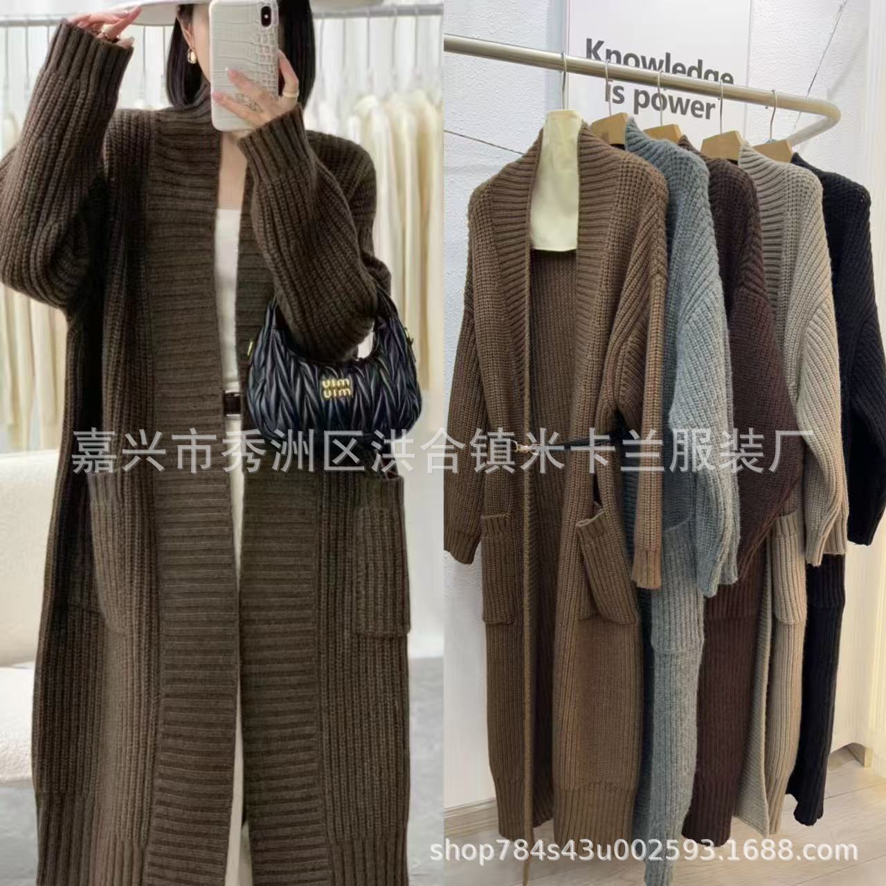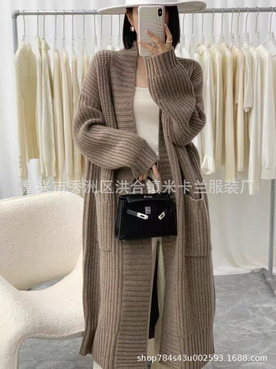 Otoño/Invierno 2025 Estilo Coreano Vibe Relajado Abrigo Suéter Mediano para Mujer Suelto Manga Larga Cárdigan Tejido Ropa Exterior Grueso