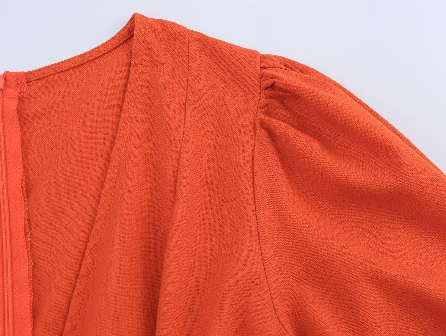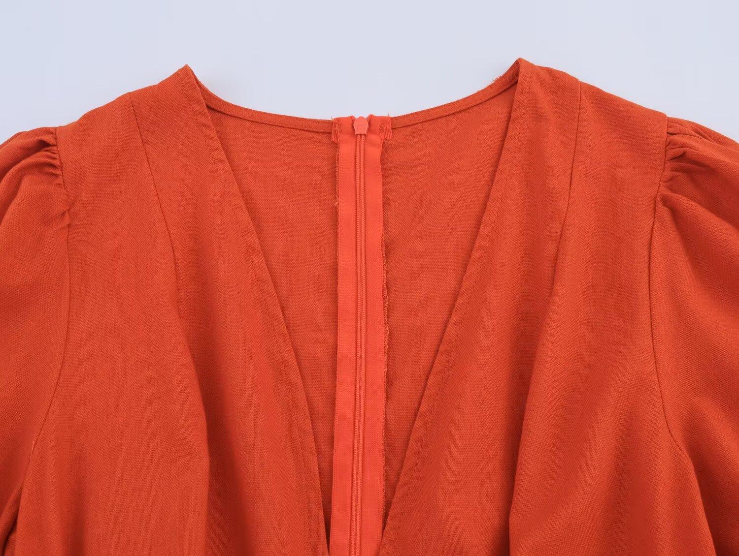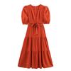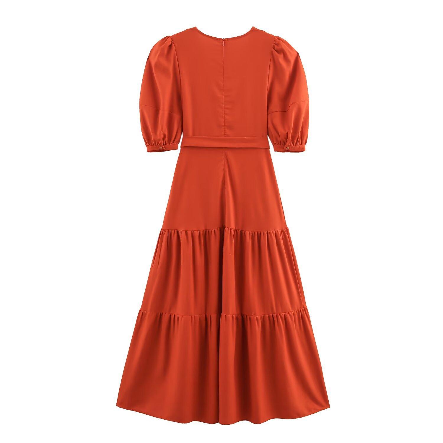 2025 Verano Nuevo Ropa de Mujer Estilo Europeo y Americano Moda Simple Vestido Manga Media Adelgazante de Cintura con Escote en V Profundo