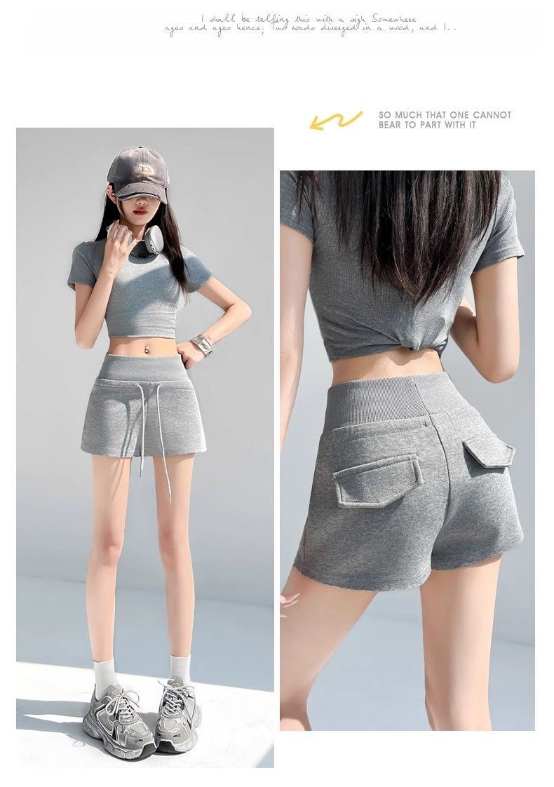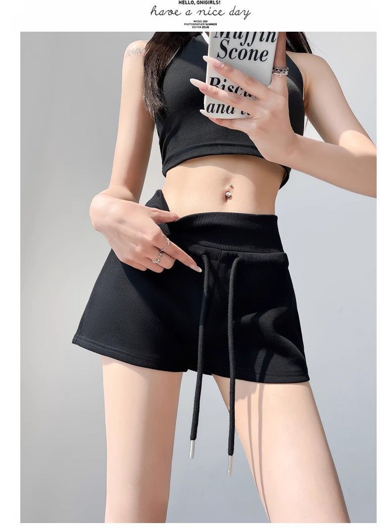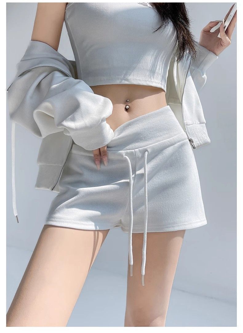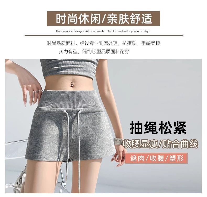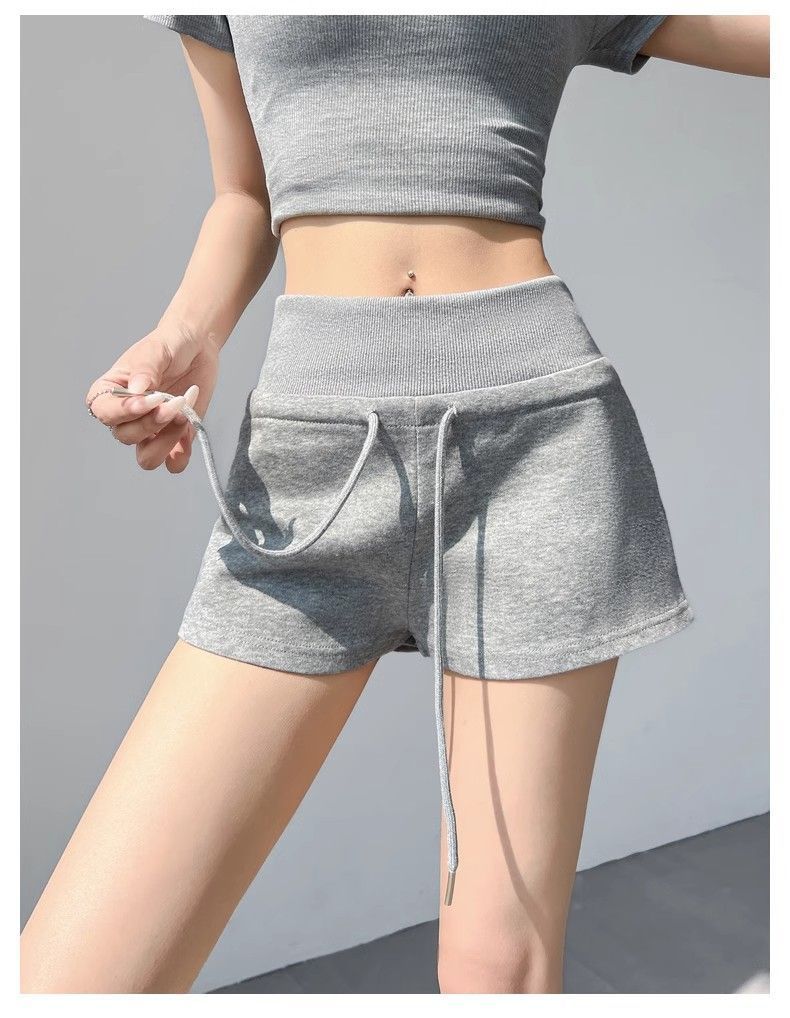 Pantalones Cortos Deportivos American Style Hot Girl Gris Ajustado Verano 2025 Nuevo Suelto Tres Puntos Cordón Pantalones Casuales