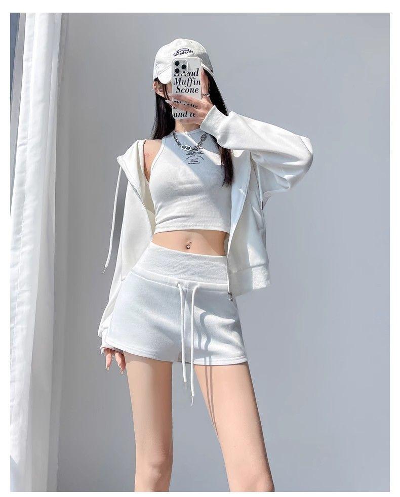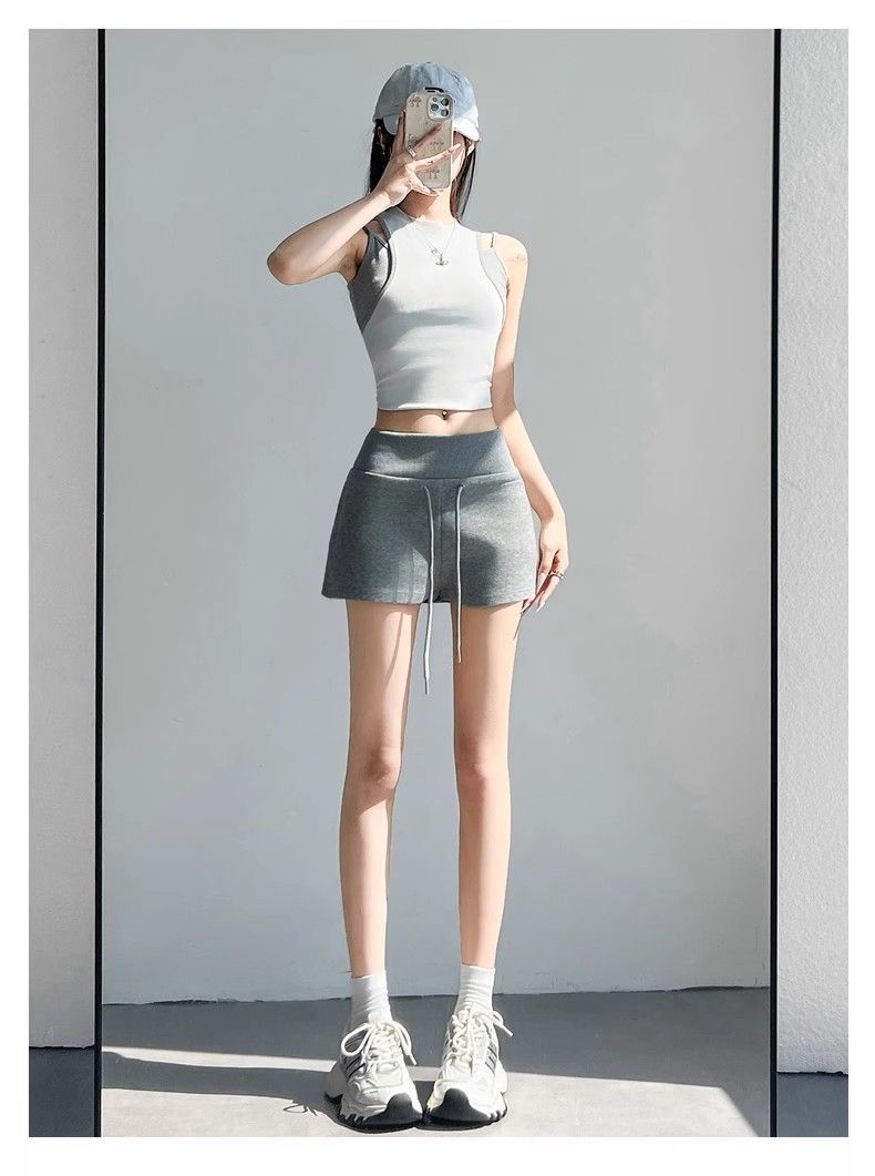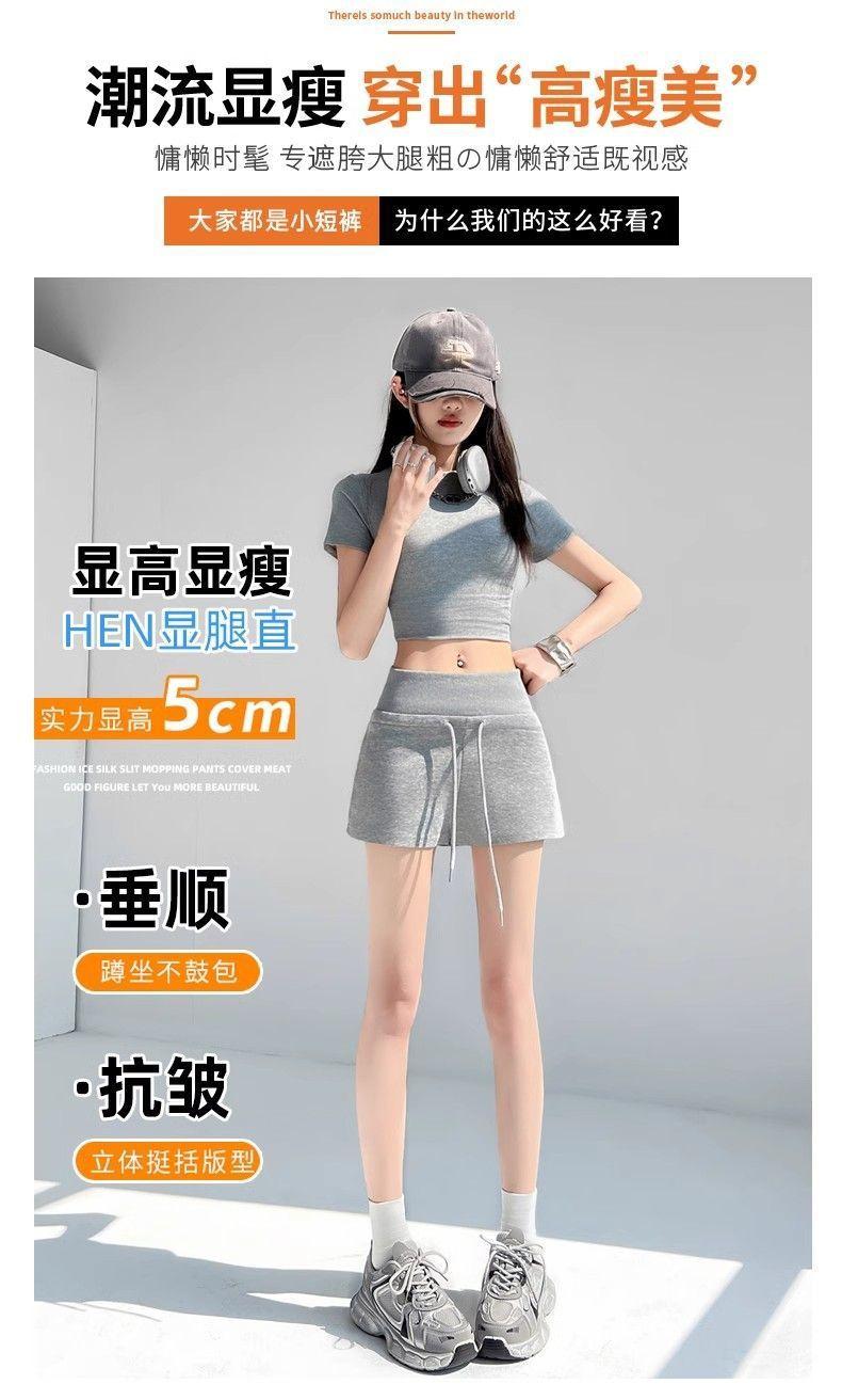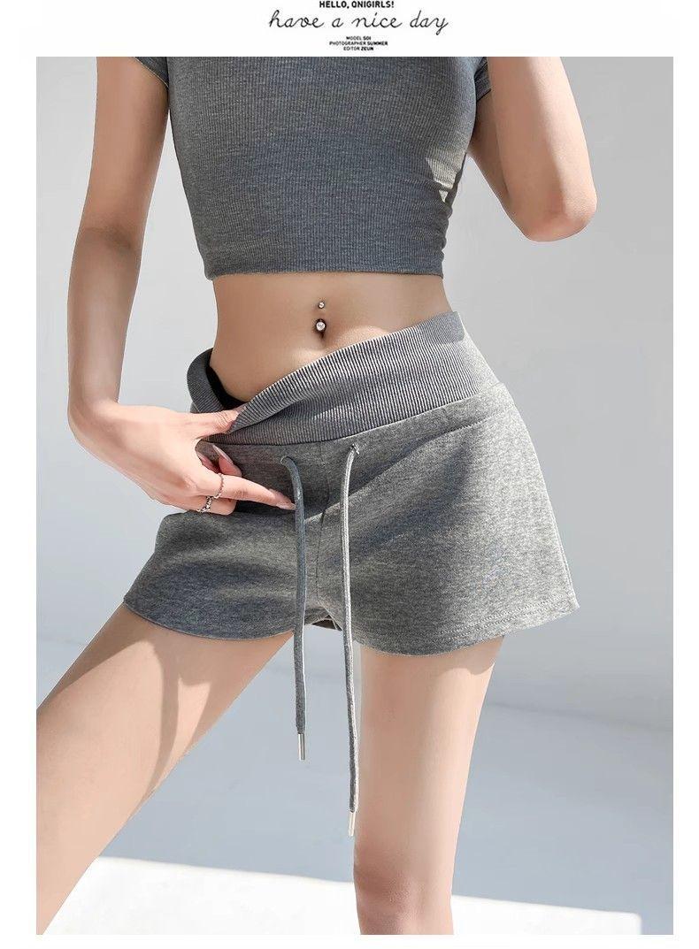 Pantalones Cortos Deportivos American Style Hot Girl Gris Ajustado Verano 2025 Nuevo Suelto Tres Puntos Cordón Pantalones Casuales