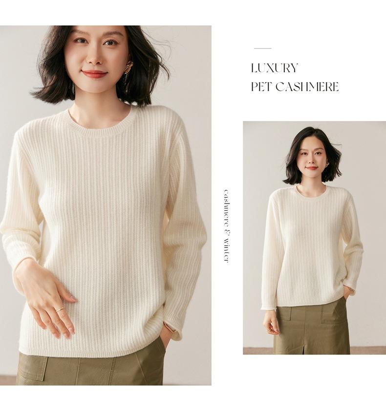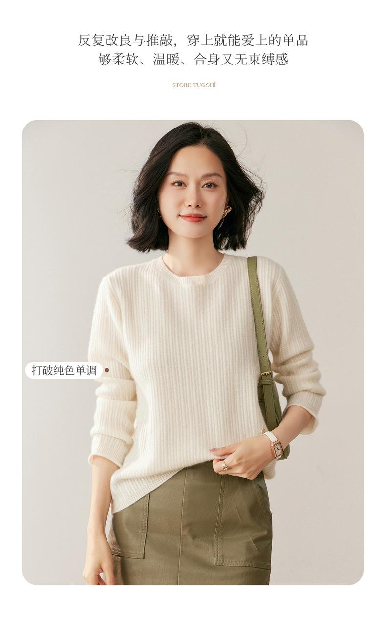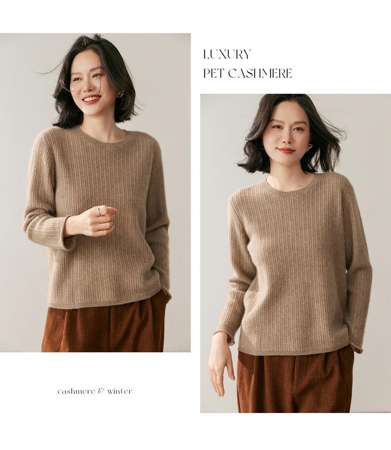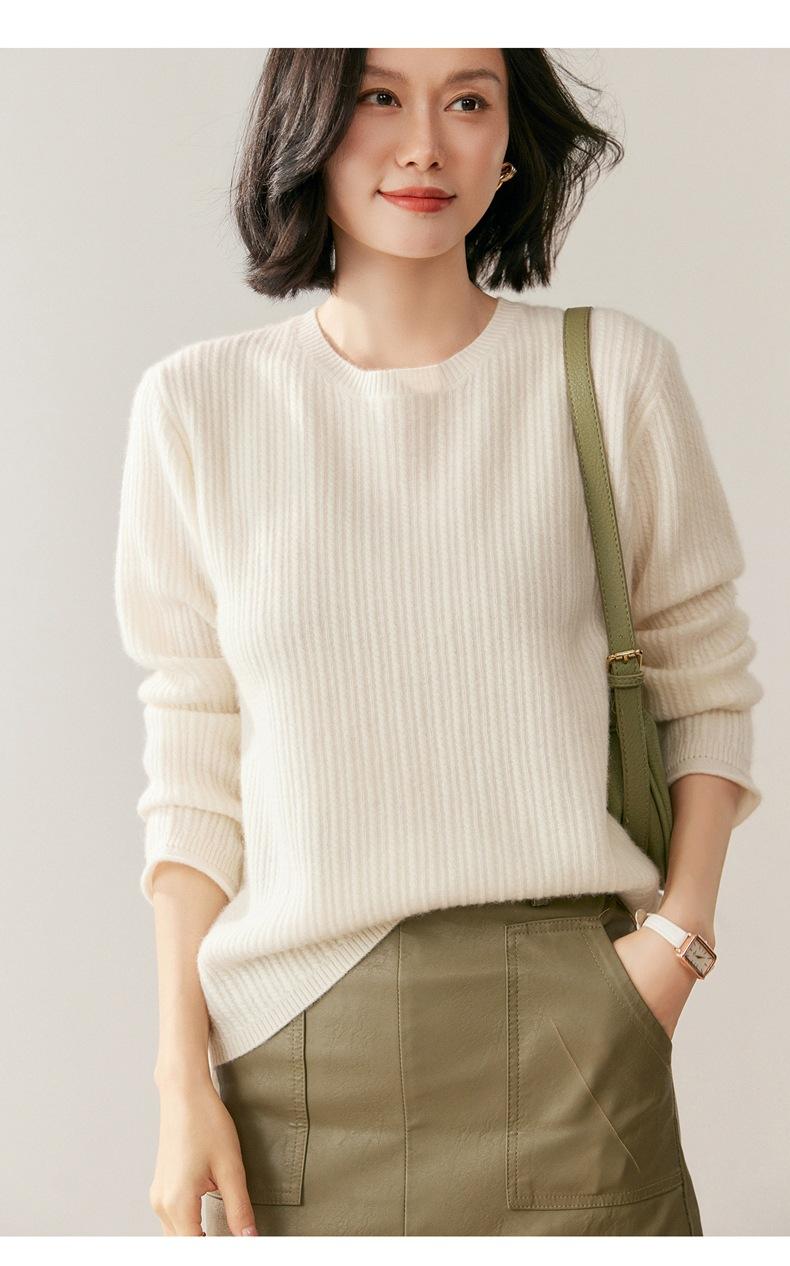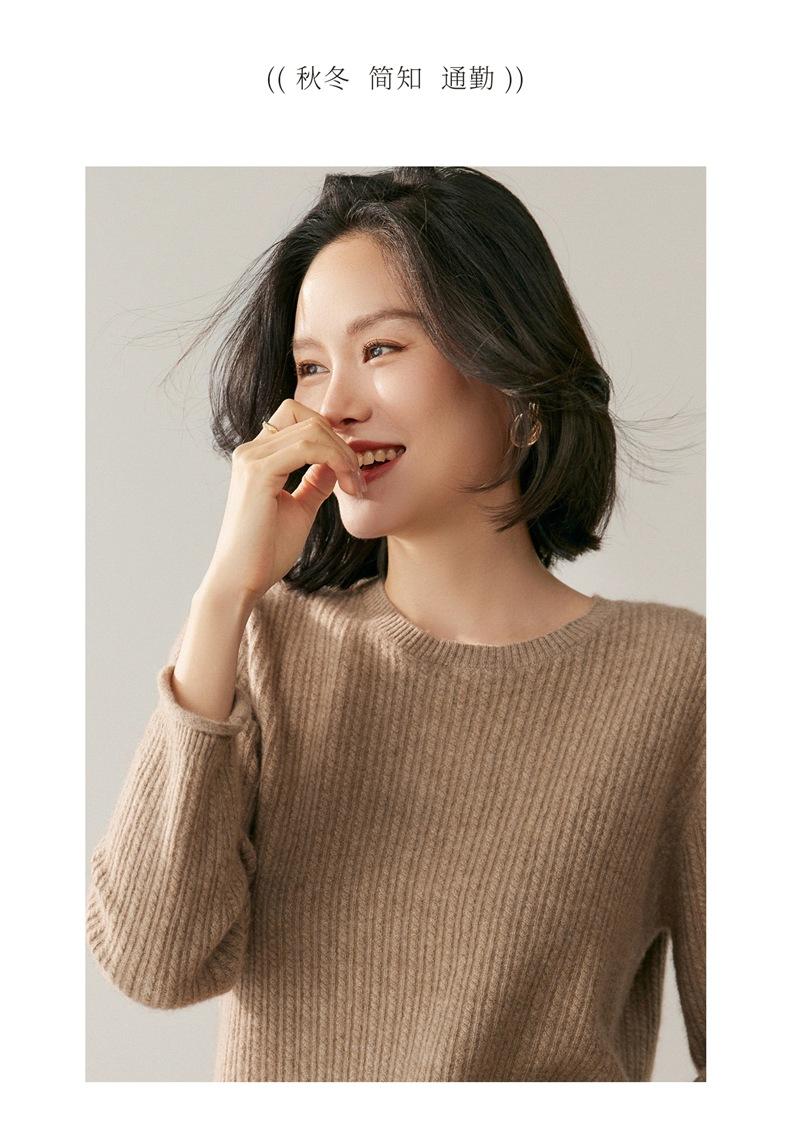 Suéter de Lana de Cachemira Fina para Mujer Cuello Redondo Corte Slim Tejido Capa Base Otoño Invierno Jersey Ropa Interior Top de Mujer Tendencia