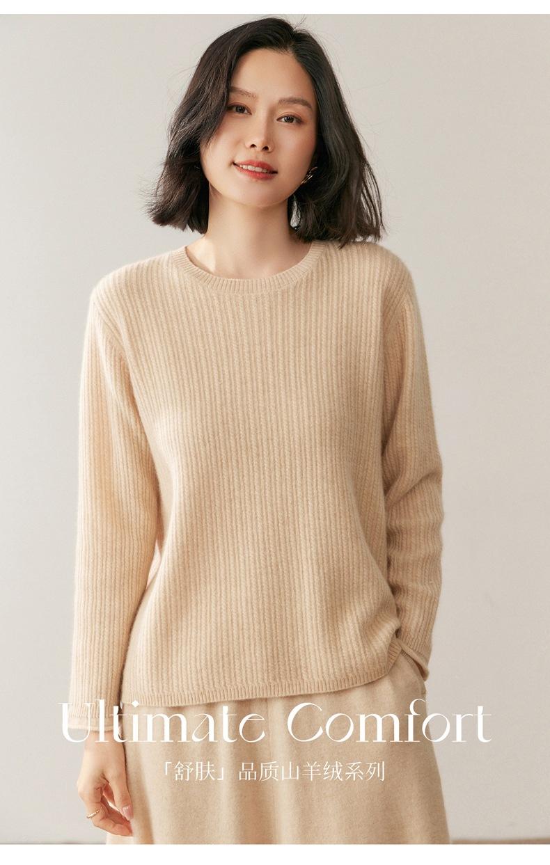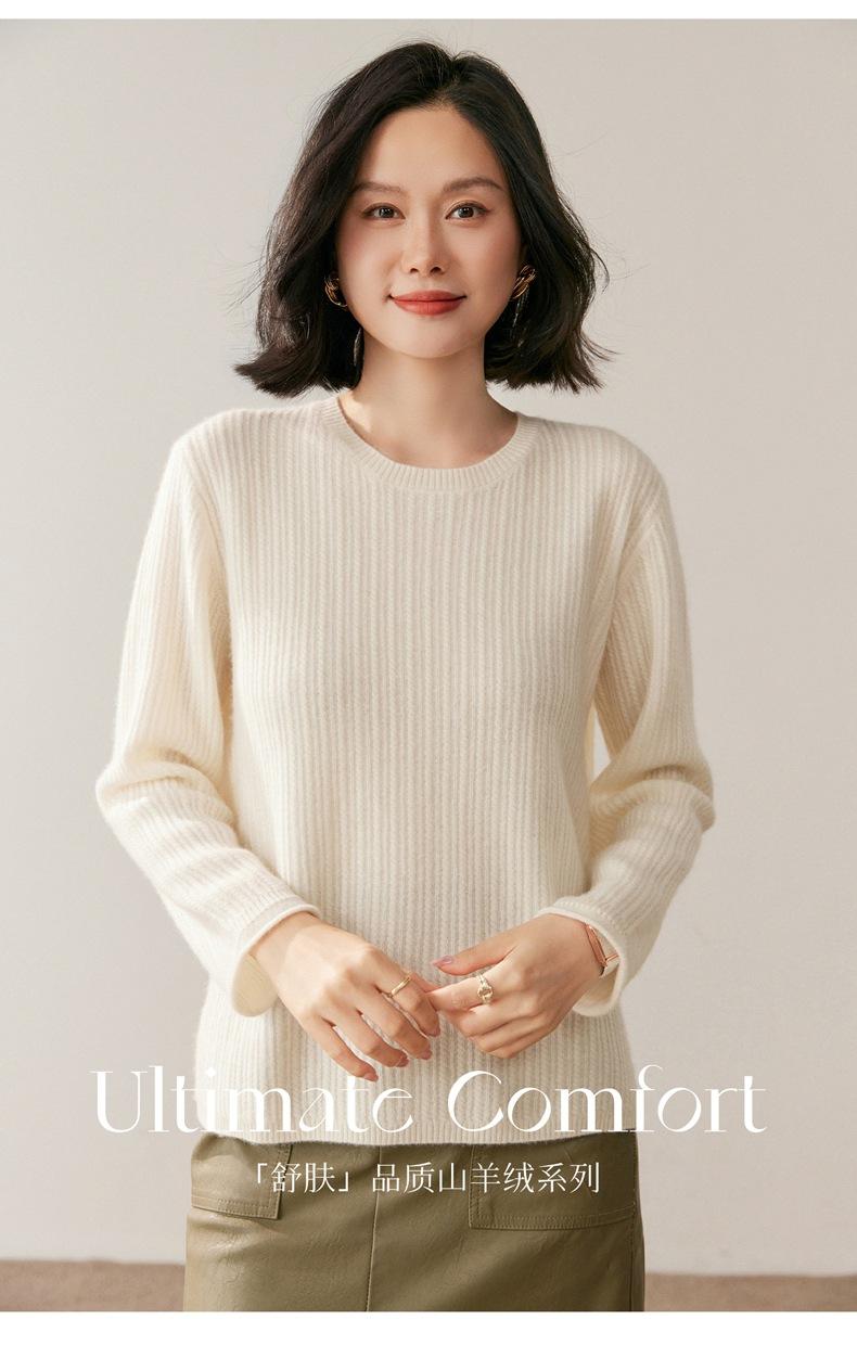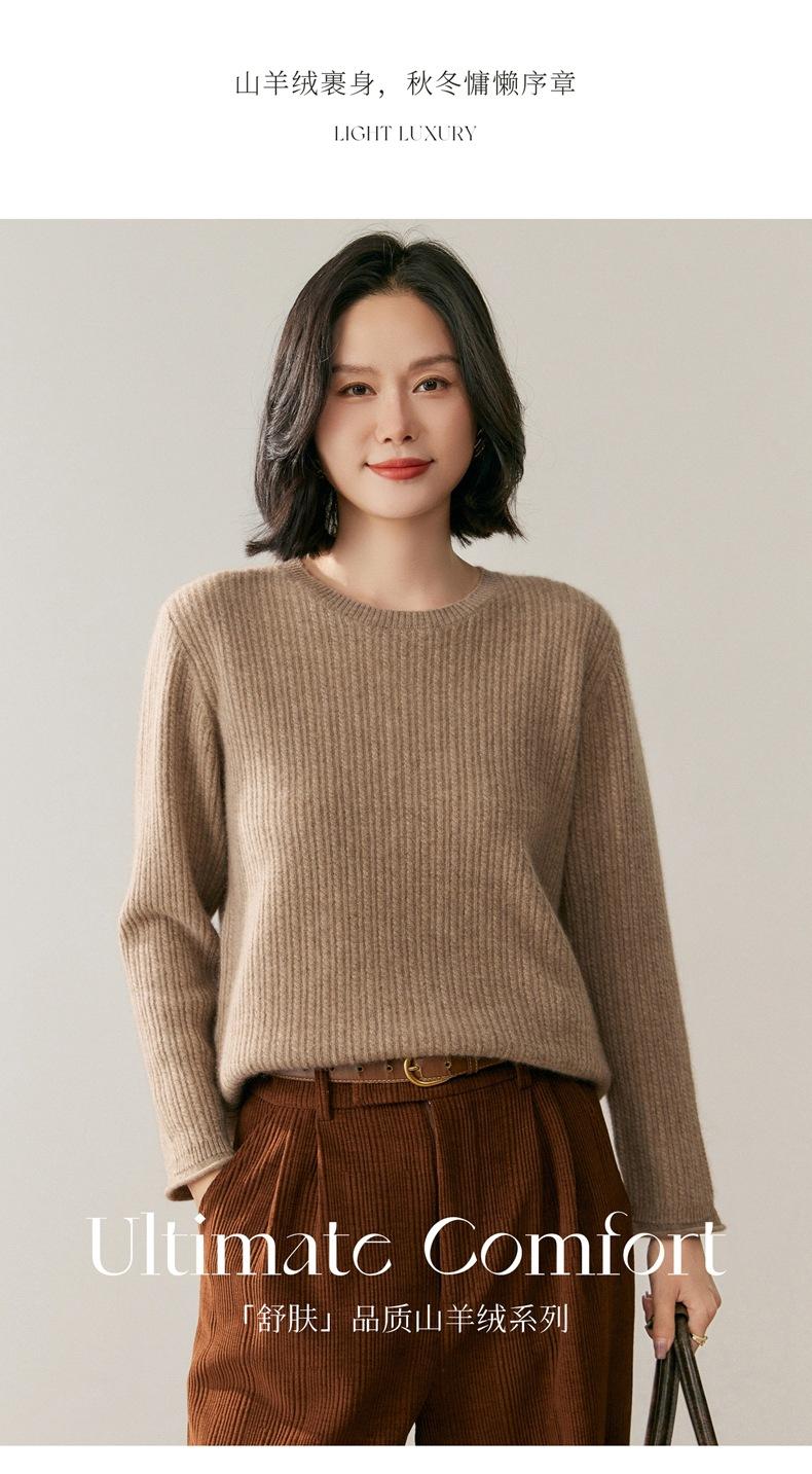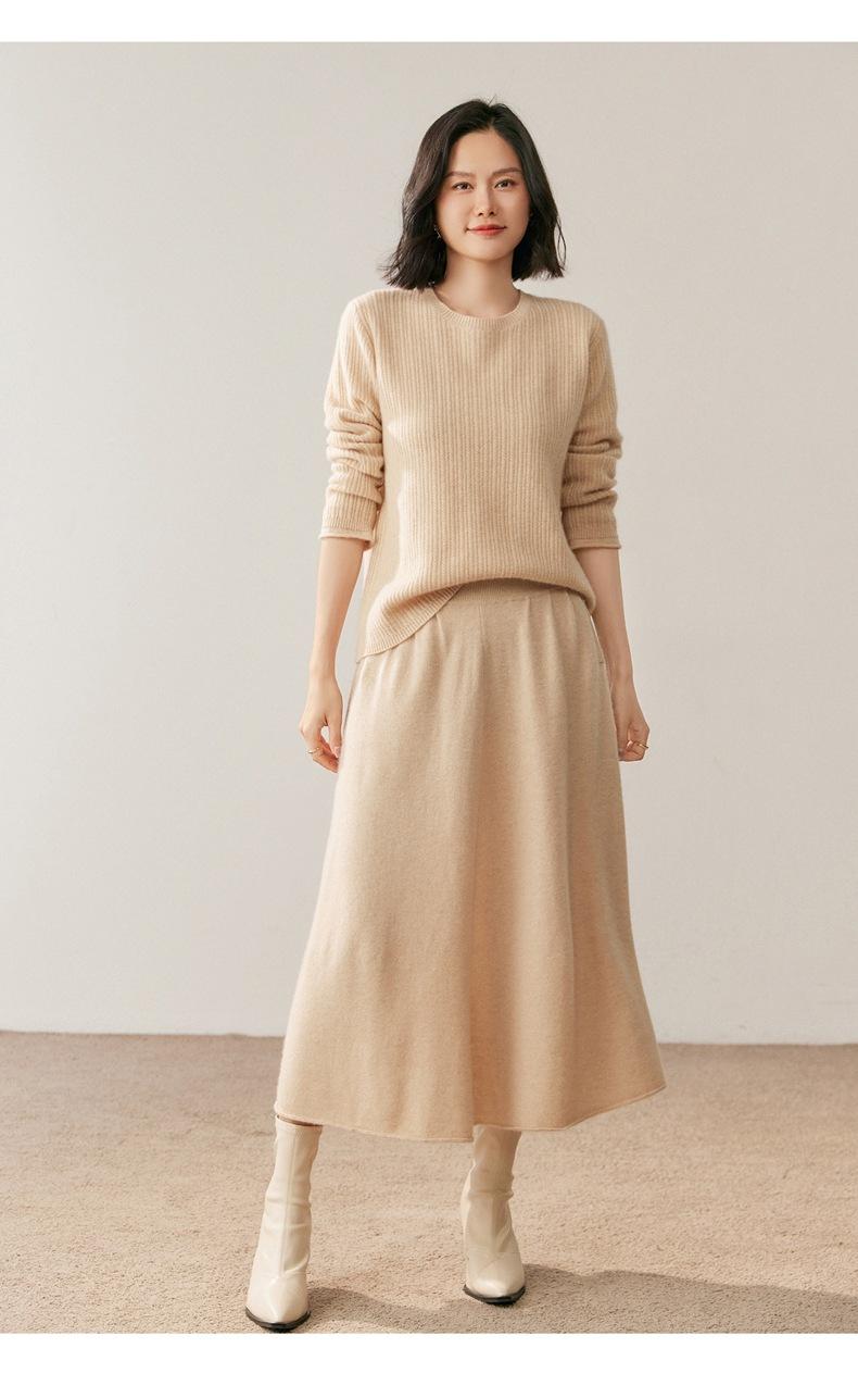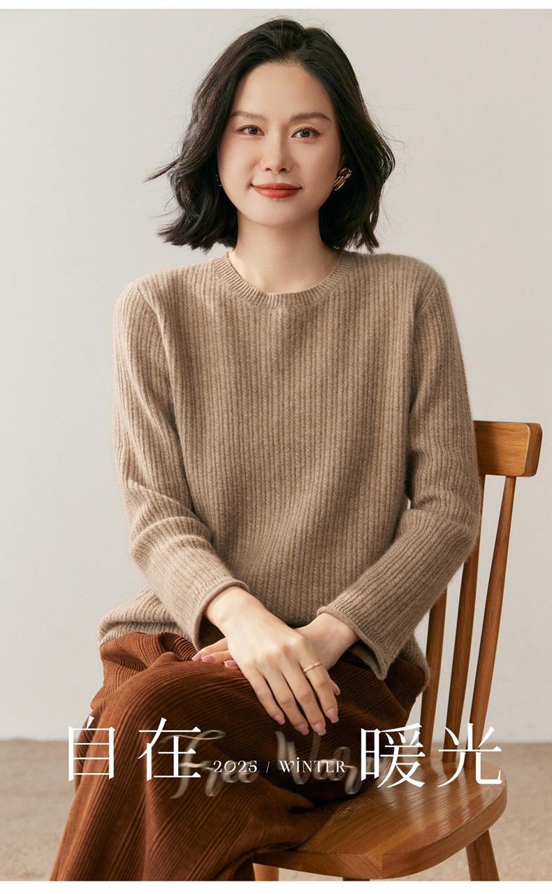 Suéter de Lana de Cachemira Fina para Mujer Cuello Redondo Corte Slim Tejido Capa Base Otoño Invierno Jersey Ropa Interior Top de Mujer Tendencia